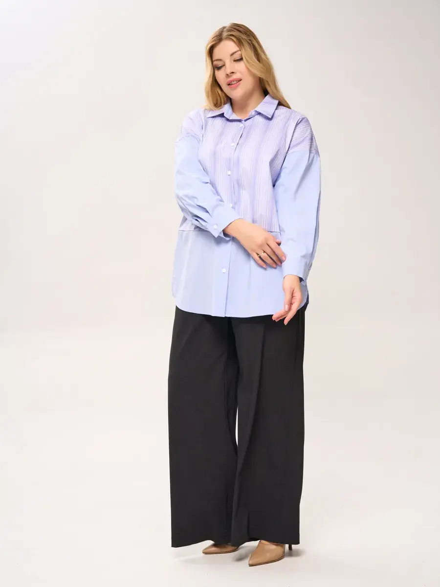 Блузка женская OLSI - это стильное и комфортное решение для вашего гардероба. Эта рубашка выполнена из высококачественного материала, состоящего из 95% хлопка и 5% эластана, что обеспечивает мягкость, приятную текстуру и удобство носки. Классический дизайн с отложным воротником и длинными рукавами делает ее универсальной для различных образов, а свободный покрой обеспечивает комфорт и свободу движений. Блузка застегивается на пуговицы, что добавляет ей элегантности и удобства. Благодаря своей универсальности, эта блузка подходит как для повседневной носки, так и для более формальных мероприятий.