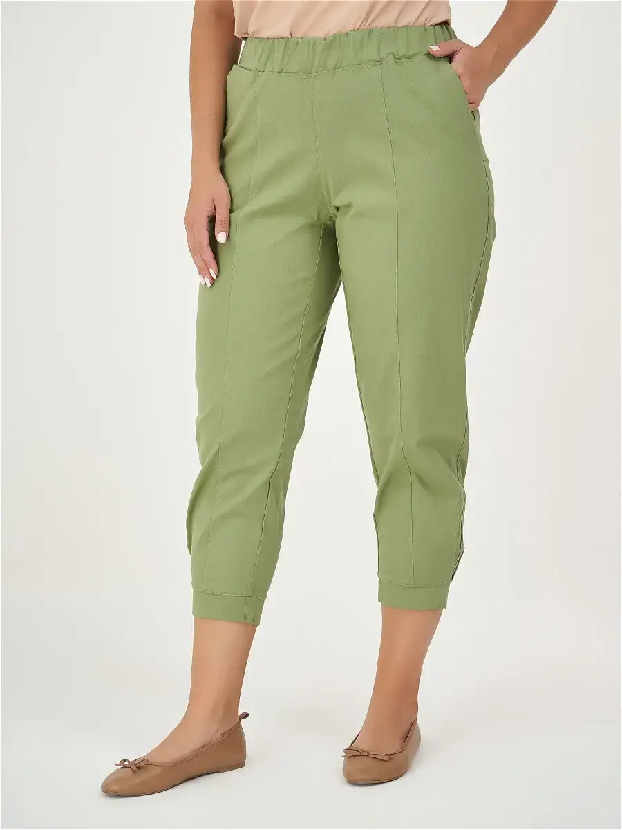 Брюки с высокой посадкой выполнены из плотного хлопка с эластаном, похожим на джинсу, с боковыми карманами, внизу штанины с защипами. Брюки без застежки, пояс на резинке.Длина бокового шва/длина шагового шва/ширина брючины низ соответственно:р.48-92,8см/65,8см/16,1смр.50-93,1см/65,7см/16,7смр.52-93,3см/65,5см/17,2смр.54-93,7см/65,3см/17,8смр.56-94,0см/65,1см/18,3смр.58-94,3см/64,9см/18,8смр.60-94,6см/64,8см/19,4смр.62-94,9см/64,6см/19,9смр.64-95,2см/64,4см/20,5смр.66-95,7см/64,2см/21,1смр.68-112,9см/64,0см/21,6смр.70-96,2см/63,8см/22,2см