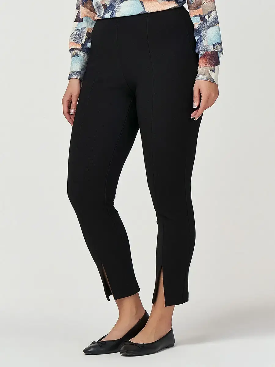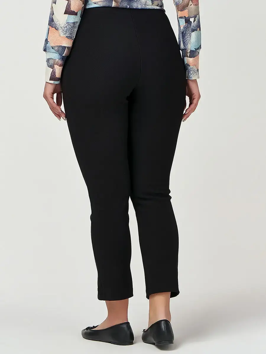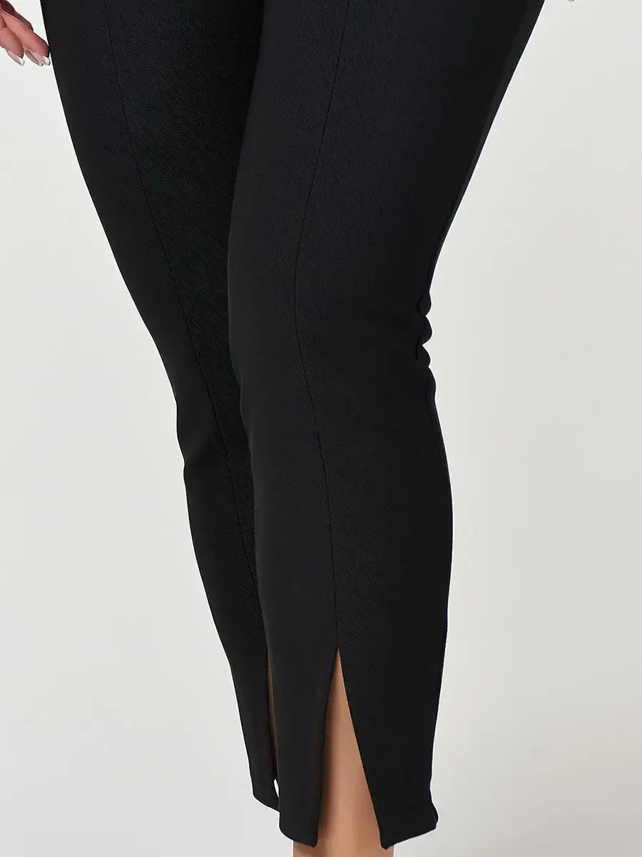 Повседневные женские брюки большого размера от бренда OLSI выполнены из плотного трикотажа с эффектом “утяжки” Обтягивающие брюки прилегающего силуэта укороченной длины. На передних половинках имеются рельефные линии с разрезами на нижней части. Пояс притачной на резинке. Брюки женские больших размеров, брюки в рубчик, штаны в рубчик, брюки облегающие женские, брюки укороченные, брюки утяжка