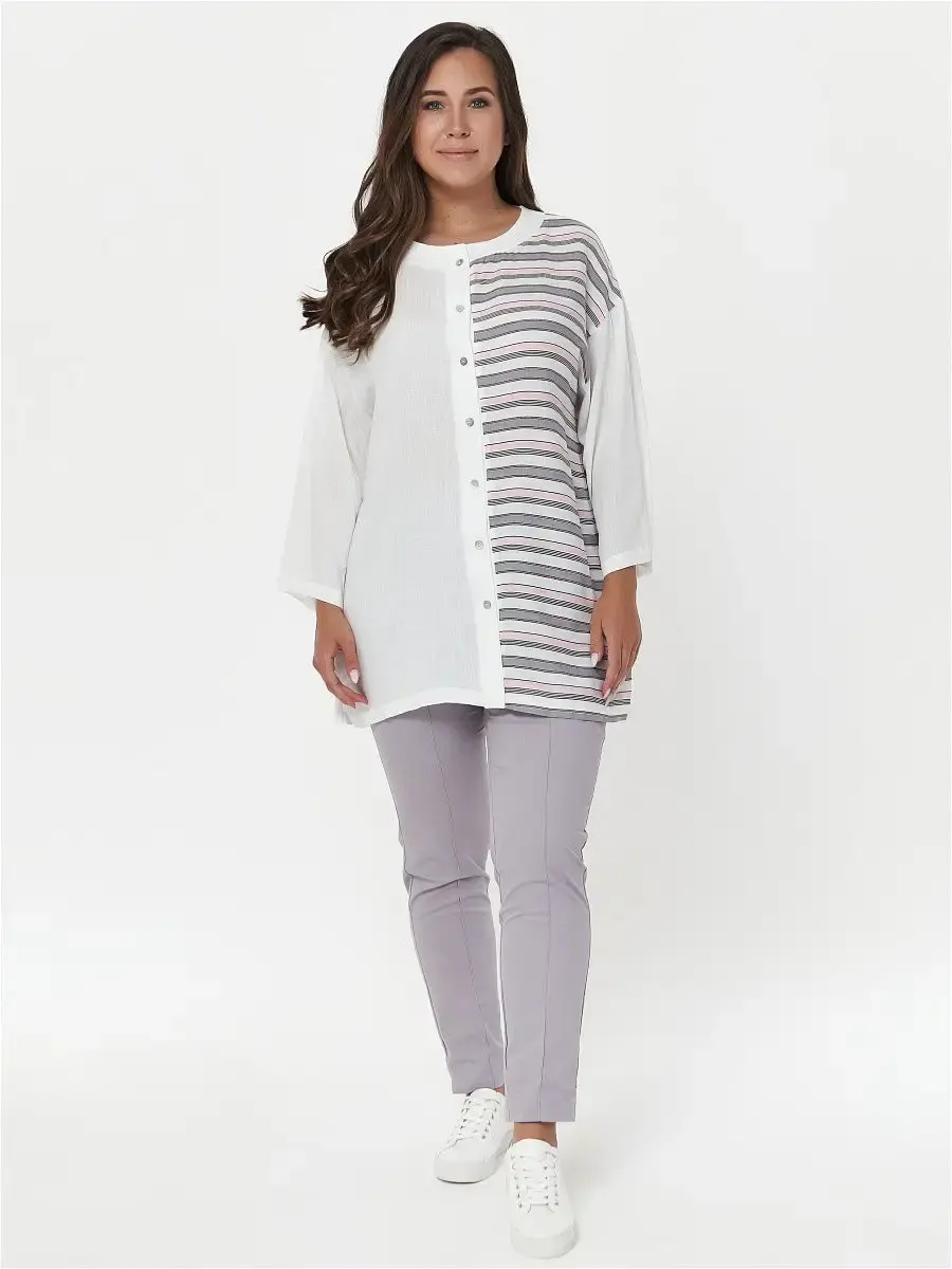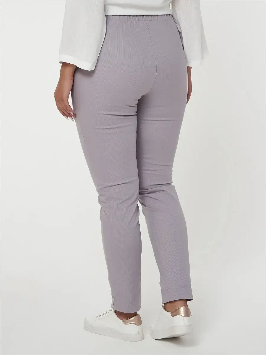 Женские брюки однотонные из хлопчатобумажной ткани, прямого силуэта, с декоративной застёжкой-гульфик и стрелками по передним половинкам, длина до щиколотки. С карманами-обманками. Пояс притачной, задняя часть пояса на жесткой резинке. Низ брюк с разрезами в боковых швах.Длина бокового шва/длина шагового шва/ширина брючины низ соответственно:р.52-106,0см/77,1см/18,2смр.50-105,8см/77,3см/17,7смр.52-106,0см/77,1см/18,2смр.54-106,4см/76,8см/18,7смр.56-106,7см/76,8см/19,2смр.58-107,0см/76,6см/19,7смр.60-107,3см/76,3см/20,2смр.62-107,6см/76,1см/20,7смр.64-107,9см/75,9см/21,2смр.66-108,4см/75,7см/21,7смр.68-108,6см/75,5см/22,2смр.70-108,9см/75,3см/22,7см