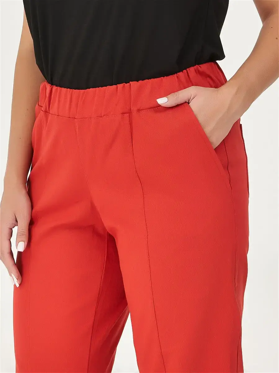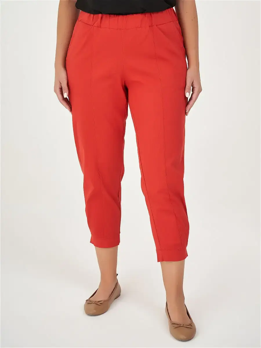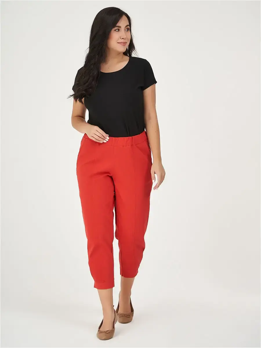 Брюки с высокой посадкой выполнены из плотного хлопка с эластаном, похожим на джинсу, с боковыми карманами, внизу штанины с защипами. Брюки без застежки, пояс на резинке.Длина бокового шва/длина шагового шва/ширина брючины низ соответственно:р.48-92,8см/65,8см/16,1смр.50-93,1см/65,7см/16,7смр.52-93,3см/65,5см/17,2смр.54-93,7см/65,3см/17,8смр.56-94,0см/65,1см/18,3смр.58-94,3см/64,9см/18,8смр.60-94,6см/64,8см/19,4смр.62-94,9см/64,6см/19,9смр.64-95,2см/64,4см/20,5смр.66-95,7см/64,2см/21,1смр.68-112,9см/64,0см/21,6смр.70-96,2см/63,8см/22,2см
