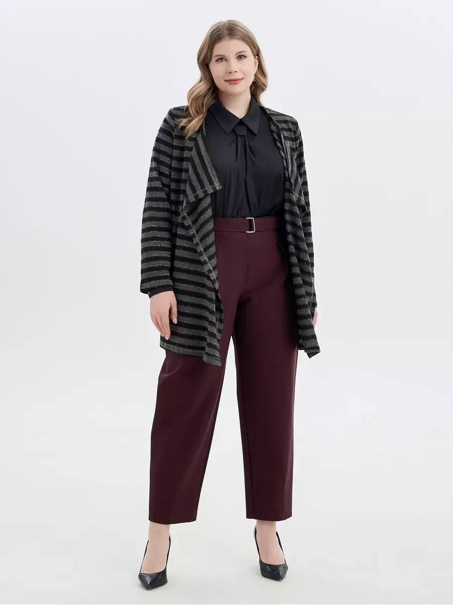 Повседневные женские брюки больших размеров бренда OLSI из хлопчатобумажной ткани однотонные, прямого силуэта. С функциональными карманами на передней части, застежка-обманка складками. Притачной пояс и притачной пояс на резинке. Для заужения снизу вытачки. Брюки длиной до щиколотки. Длина бокового шва/длина шагового шва/ширина брючины низ соответственно:р.48-101,4см/72,3см/21,5смр.50-101,7см/72,1см/22,0смр.52-101,9см/71,9см/22,5смр.54-102,3см/71,6см/23,0смр.56-102,5см/71,5см/23,5смр.58-102,9см/71,3см/24,0смр.60-103,2см/71,1см/24,5смр.62-103,5см/70,9см/25,0смр.64-103,8см/70,6см/25,5смр.66-104,3см/70,4см/26,0смр.68-104,5см/70,2см/26,5смр.70-104,8см/69,9см/27,0см