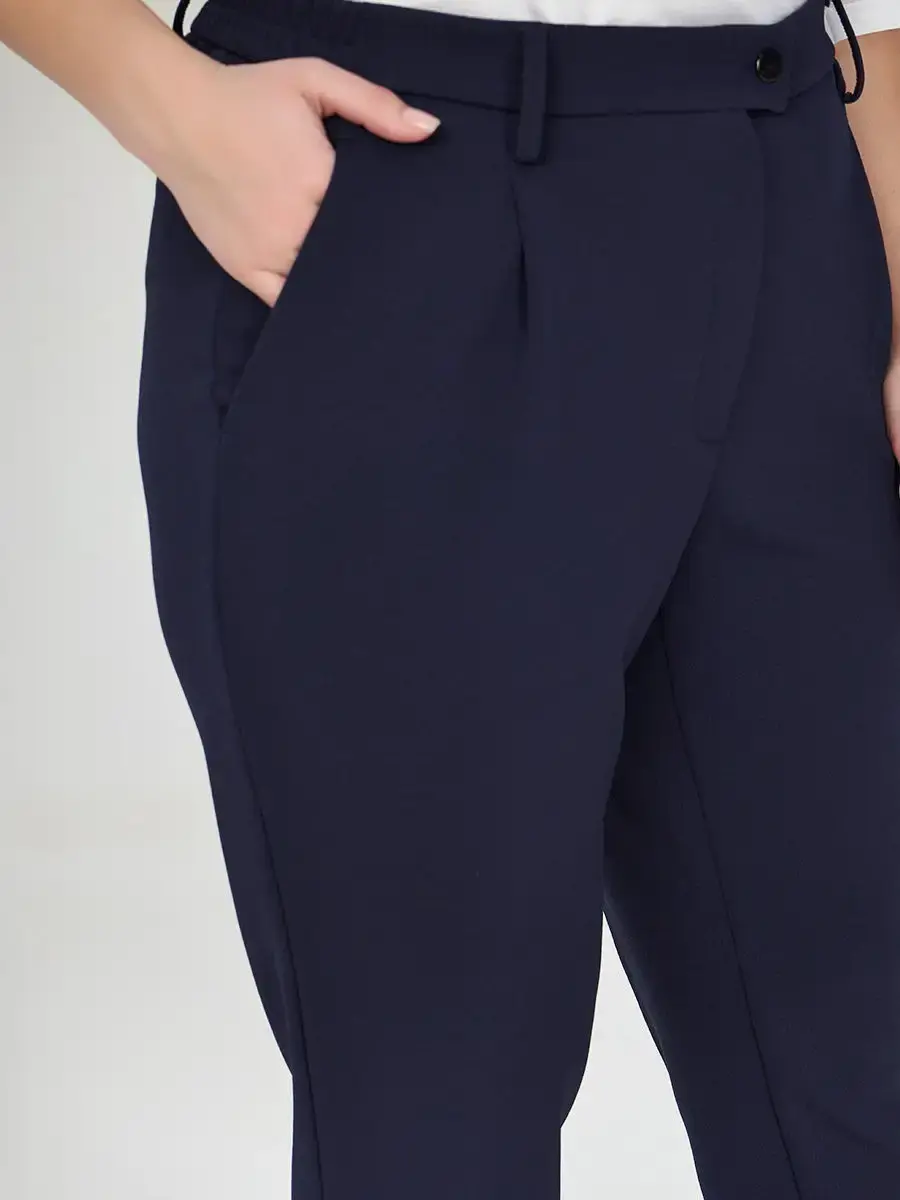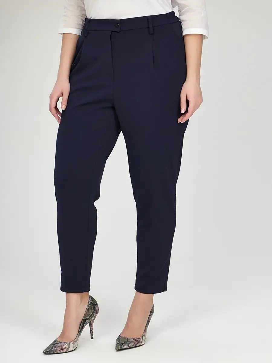 Элегантные, зауженные книзу брюки-чиносы. Незаменимая вещь в женском гардеробе, которая будет отлично сочетаться практически с любой одеждой. Брюки на втачном поясе. Есть шлевки для ремня, необходимые для правильной посадки классических брюк. Высокая посадка зрительно делает ноги длиннее. Особенный крой, защипы спереди и врезные карманы, позволяют скрыть несовершенства фигуры. Женские брюки с высокой посадкой - тренд года и незаменимая классика в одном флаконе. Универсальная модель для всех случаев. Высокая посадка помогает скорректировать силуэт в области живота. Вы можете использовать их в качестве базовой вещи и выстраивать на их основе повседневные, деловые и праздничные вечерние образы. Брюки базовые подходят на любой случай в вашей жизни: поход в ресторан, офис, мероприятие, прогулка. Благодаря большому размерному ряду есть возможность подобрать классические брюки на любую фигуру и вкус женщины. Высокая посадка на талии. Штаны классика с высокой талией отшиваются с учетом особенностей фигуры для женщин с большим размером одежды. Брюки классические больших размеров, Брюки по щиколотку женские, штаны женские черные. Темные прямые брюки. Классические женские брюки