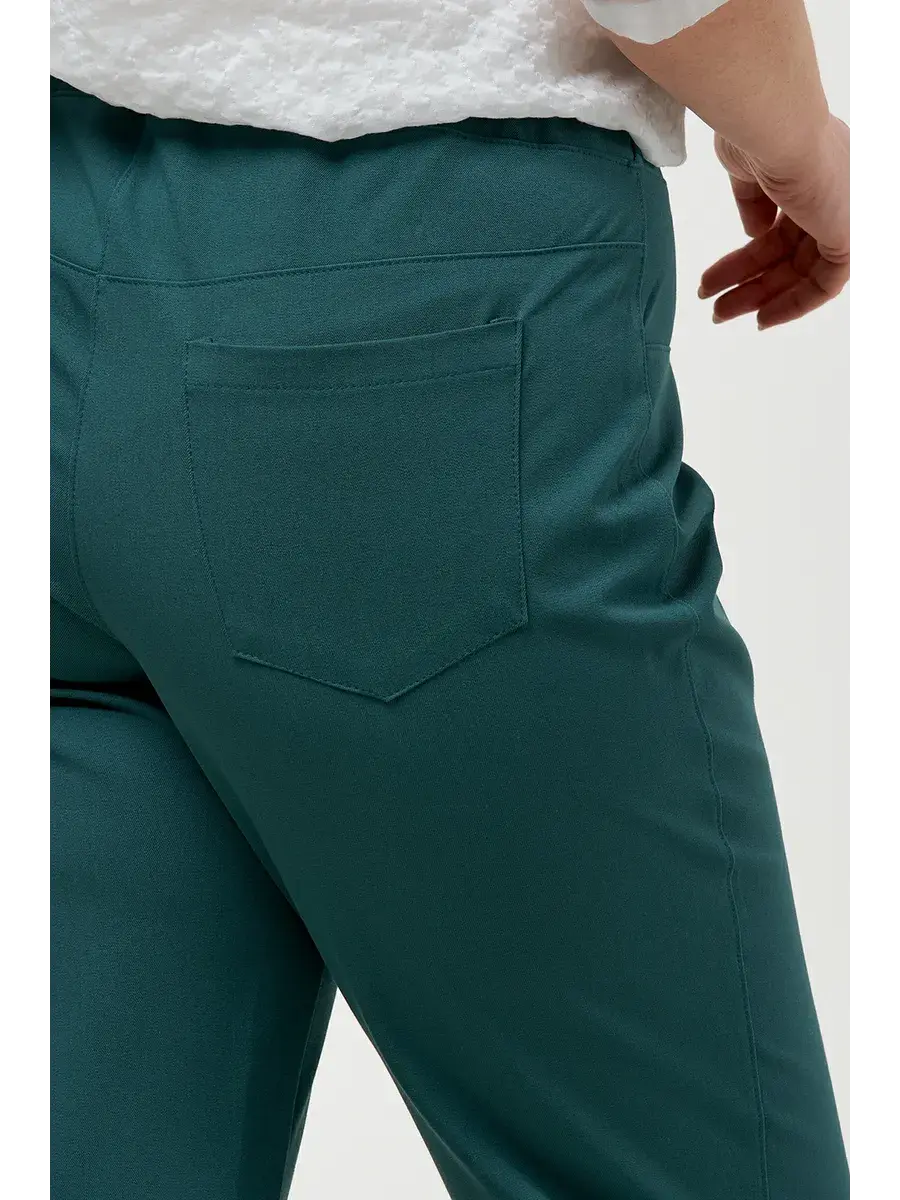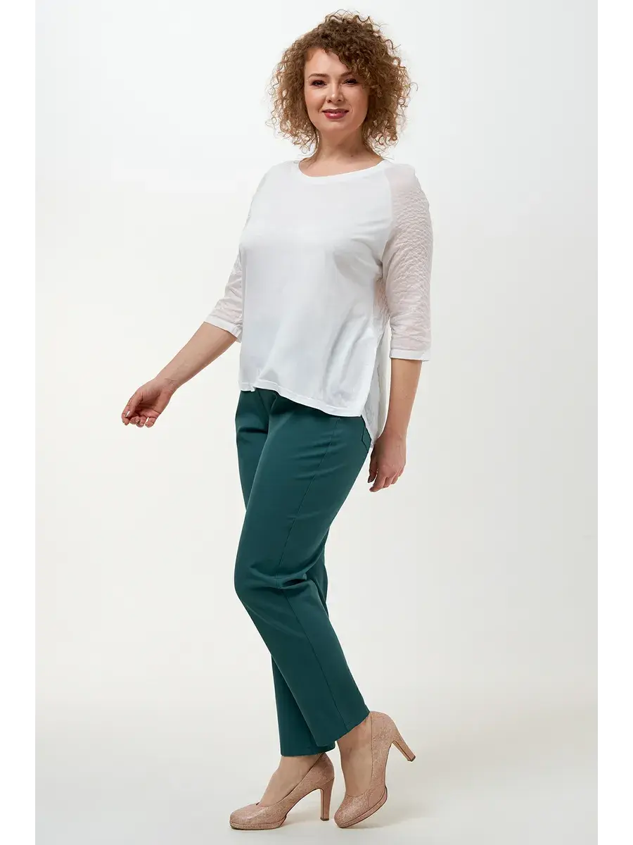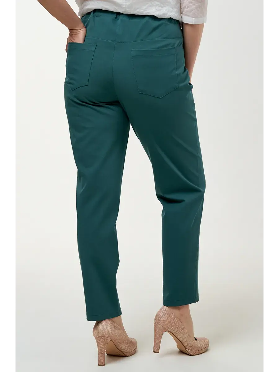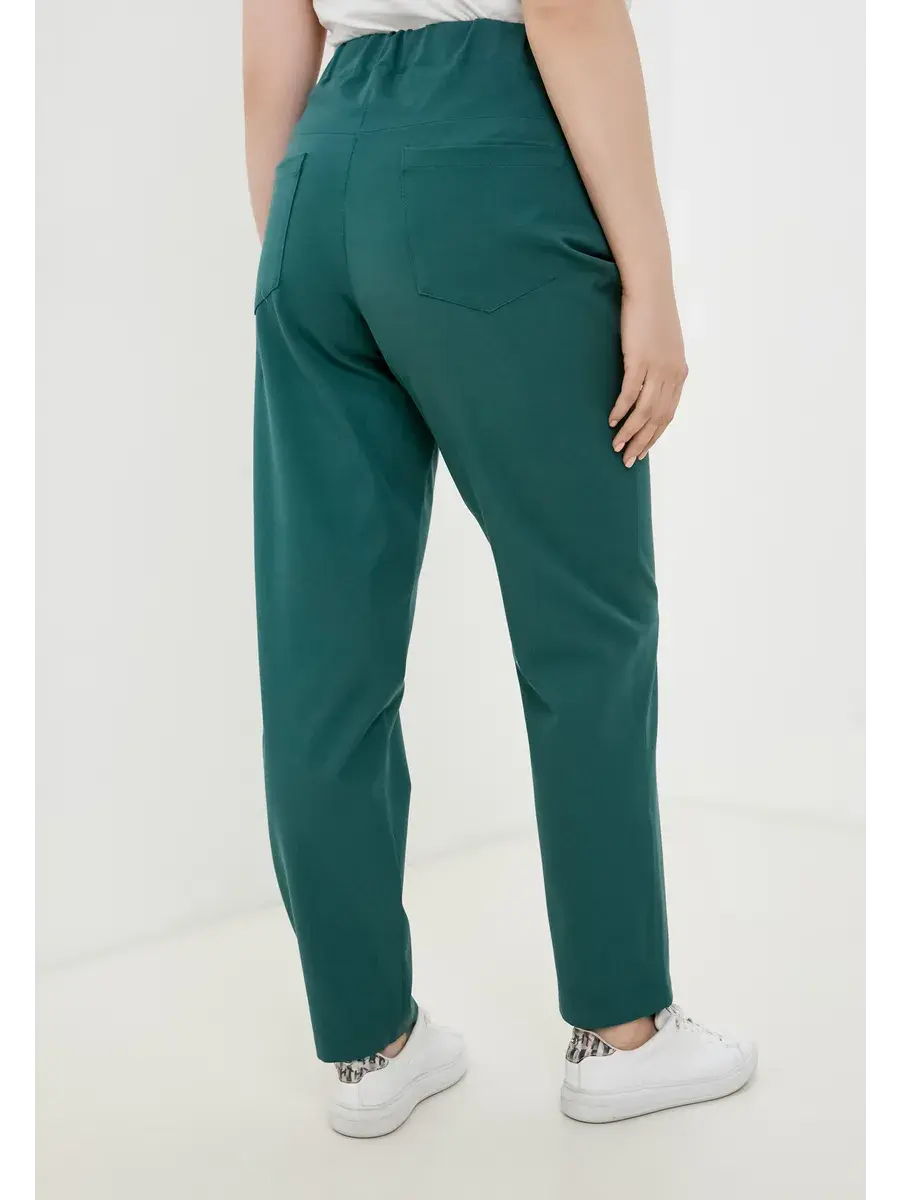 Стильные брюки- чиносы из хлопковой ткани. Модель укороченная, зауженного книзу кроя, с удобной посадкой, на комфортном поясе с широкой резинкой с имитацией боковых карманов. Изделие практичное и спортивное, подчеркивает энергичность образа и задор, визуально уравновешивает силуэт, придает ему стройность. Благодаря небольшому содержанию эластана брюки не сковывают движений, подходят для активного отдыха, прогулок на природе и в городе. Длина бокового шва в 52 р-104 см длина шагового шва в 52 р -78 см, ширина брючины низ в 52р -18,6 см. Брюки женские для полных женщин, штаны на резинке, брюки прямые повседневные