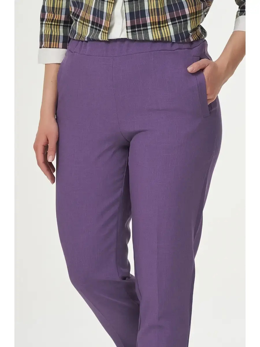 Брюки зауженные, однотонные из легкой ткани, имитирующей фактуру льна. Пояс цельнокройный на резинке. Функциональные боковые карманы. Длина бокового шва/длина шагового шва/ширина брючины низ соответственно:р.48-100,5см/71,4см/17,2смр.50-101,0см/71,3см/17,7смр.52-101,2см/71,2см/18,2смр.54-101,6см/70,9см/18,7смр.56-102,0см/70,8см/19,2смр.58-102,3см/70,6см/19,7смр.60-102,6см/70,4см/20,2смр.62-102,9см/70,1см/20,7смр.64-103,3см/70,0см/21,2смр.66-103,7см/69,8см/21,7смр.68-104,0см/69,6см/22,2смр.70-104,3см/69,4см/22,7см.