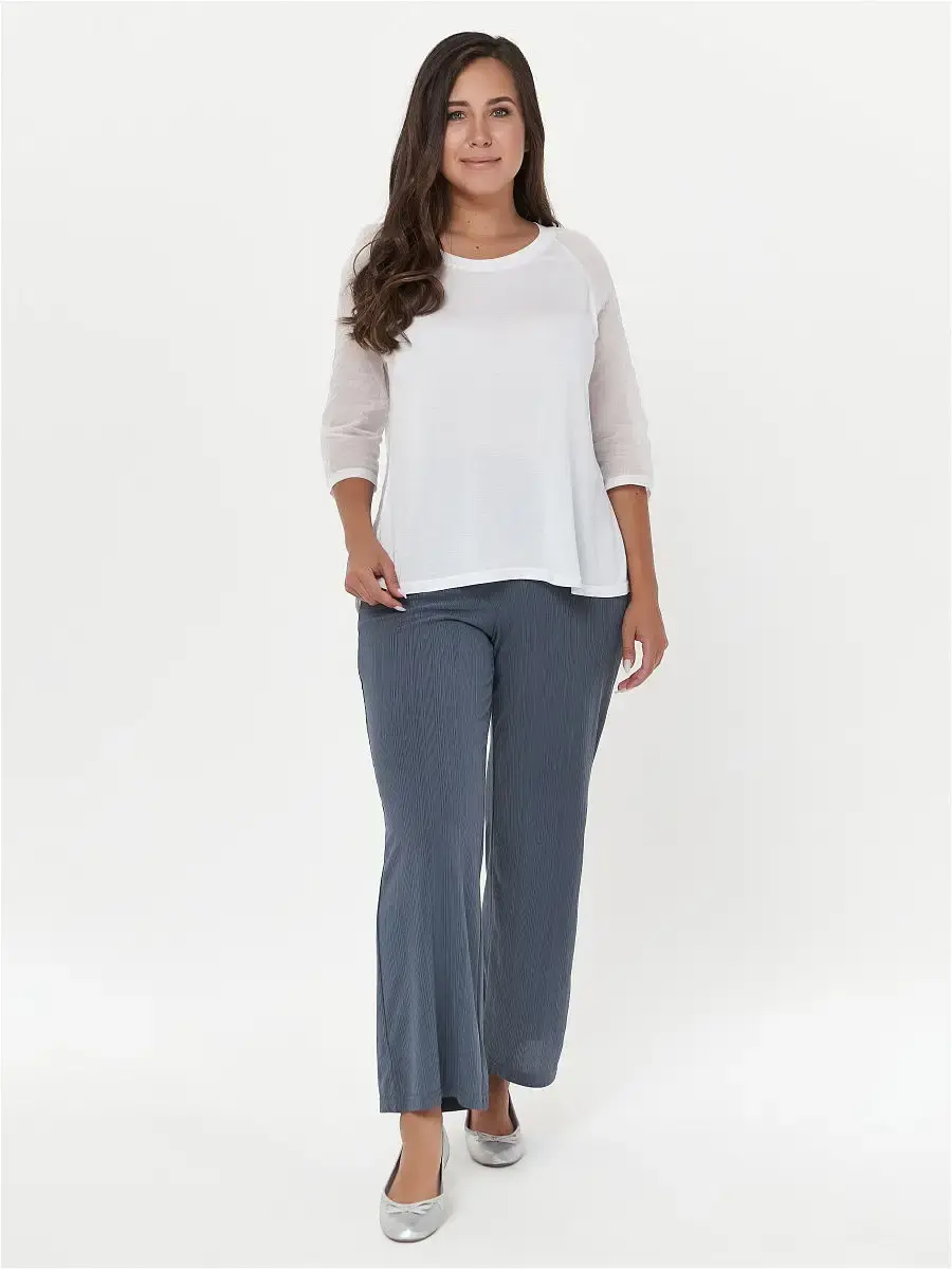 Стильные широкие брюки-палаццо миди из жатой ткани в рельефную полоску-лапша. Модель свободного кроя, создающего ощущение полета, расклешенная от пояса на резинке. Изделие нивелирует нюансы фигуры, придает образу женственность и лоск, а движениям - плавность и легкость. Подойдет свободолюбивым натурам, любящим комфорт и желающим выглядеть стильно в любой ситуации. Брюки - универсальный вариант для повседневной носки, прогулки, свидания, незаменимы как на отдыхе, так и на работе.