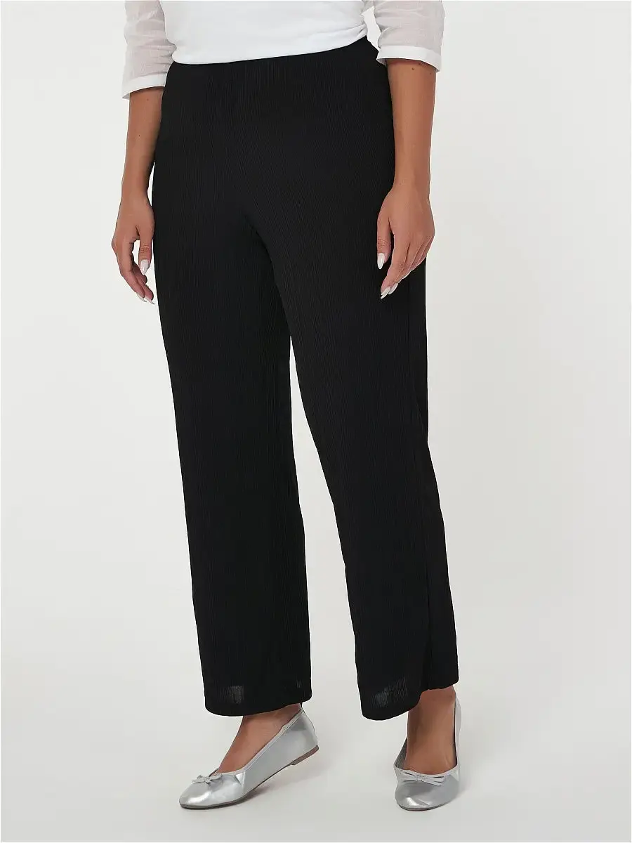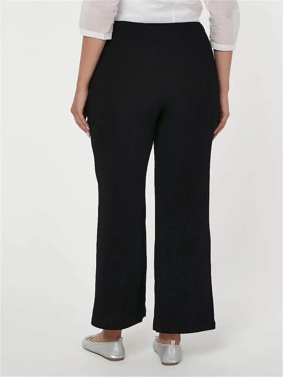 Стильные широкие брюки-палаццо миди из жатой ткани в рельефную полоску-лапша. Модель свободного кроя, создающего ощущение полета, расклешенная от пояса на резинке. Изделие нивелирует нюансы фигуры, придает образу женственность и лоск, а движениям - плавность и легкость. Подойдет свободолюбивым натурам, любящим комфорт и желающим выглядеть стильно в любой ситуации. Брюки - универсальный вариант для повседневной носки, прогулки, свидания, незаменимы как на отдыхе, так и на работе.