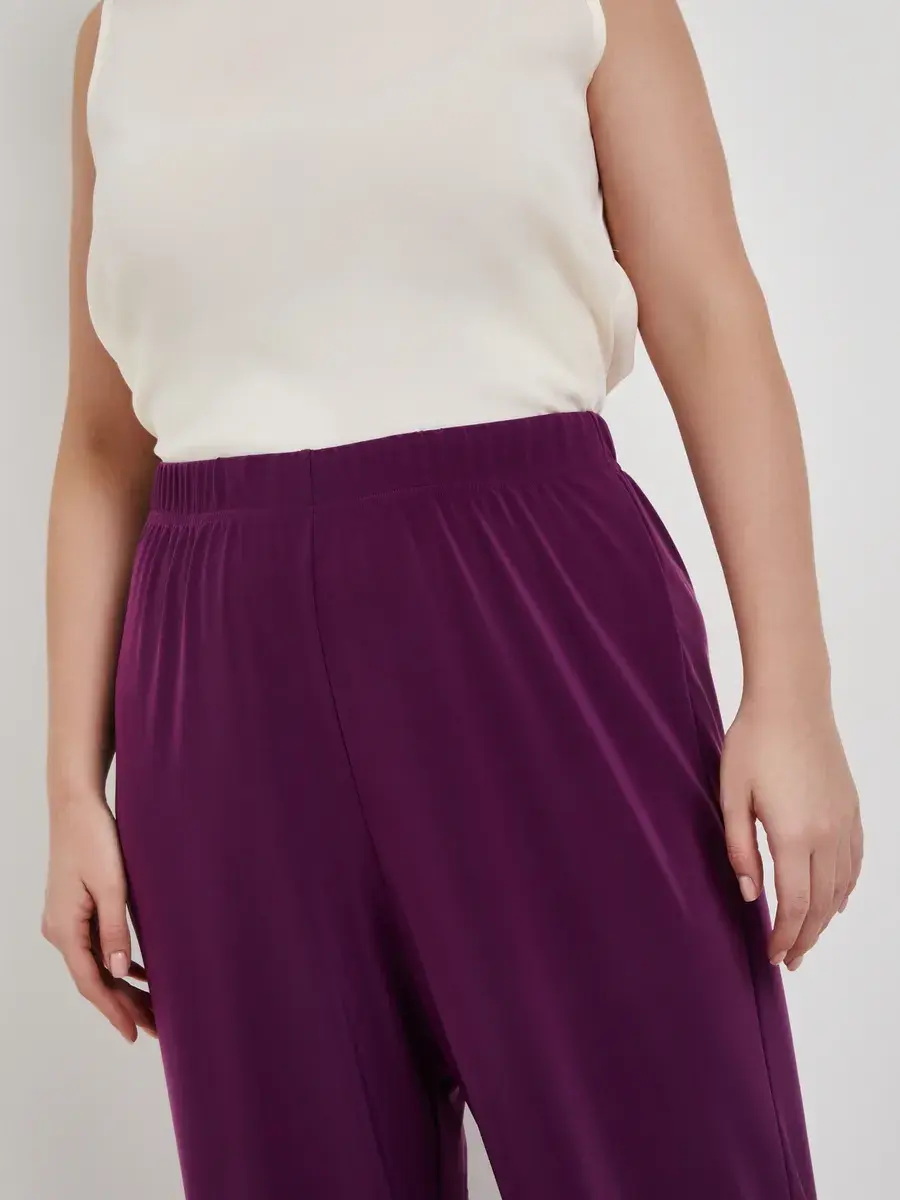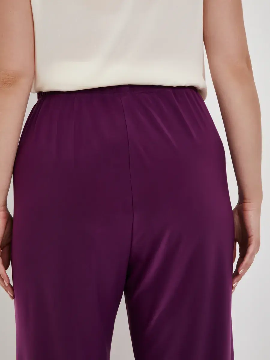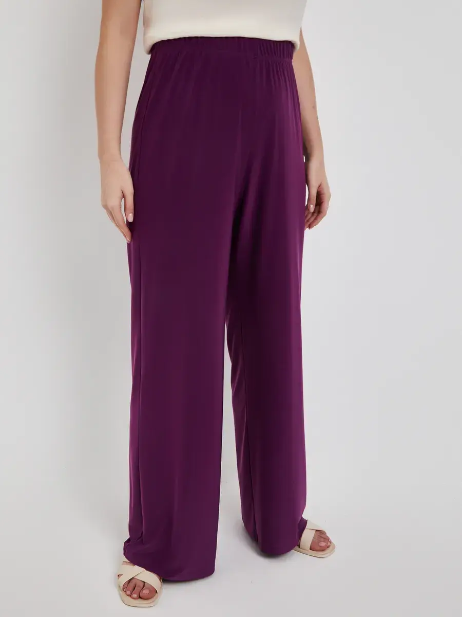 Легкие трикотажные брюки от бренда OLSI из шелковистого материала. Брюки свободного кроя из ткани трикотаж масло не мнутся и быстро сохнут. Это универсальный вариант брюк, который можно носить круглый год. На праздник их можно сочетать с нарядной блузой и туфлями, а для более спортивного образа - с футболкой и кедами. Они подойдут и для прогулок, и для поездок, так как не помнутся в чемодане. Брюки также подойдут для работы, офиса, ресторана, театра или торжественного мероприятия в сочетании с нарядным верхом. Модель брюк палаццо с круговой резинкой по талии, без застежки. Широкие струящиеся брюки в комфортном свободном стиле незаменимы в жаркую погоду. Идеальный вариант в офис, на праздник, на прогулку.