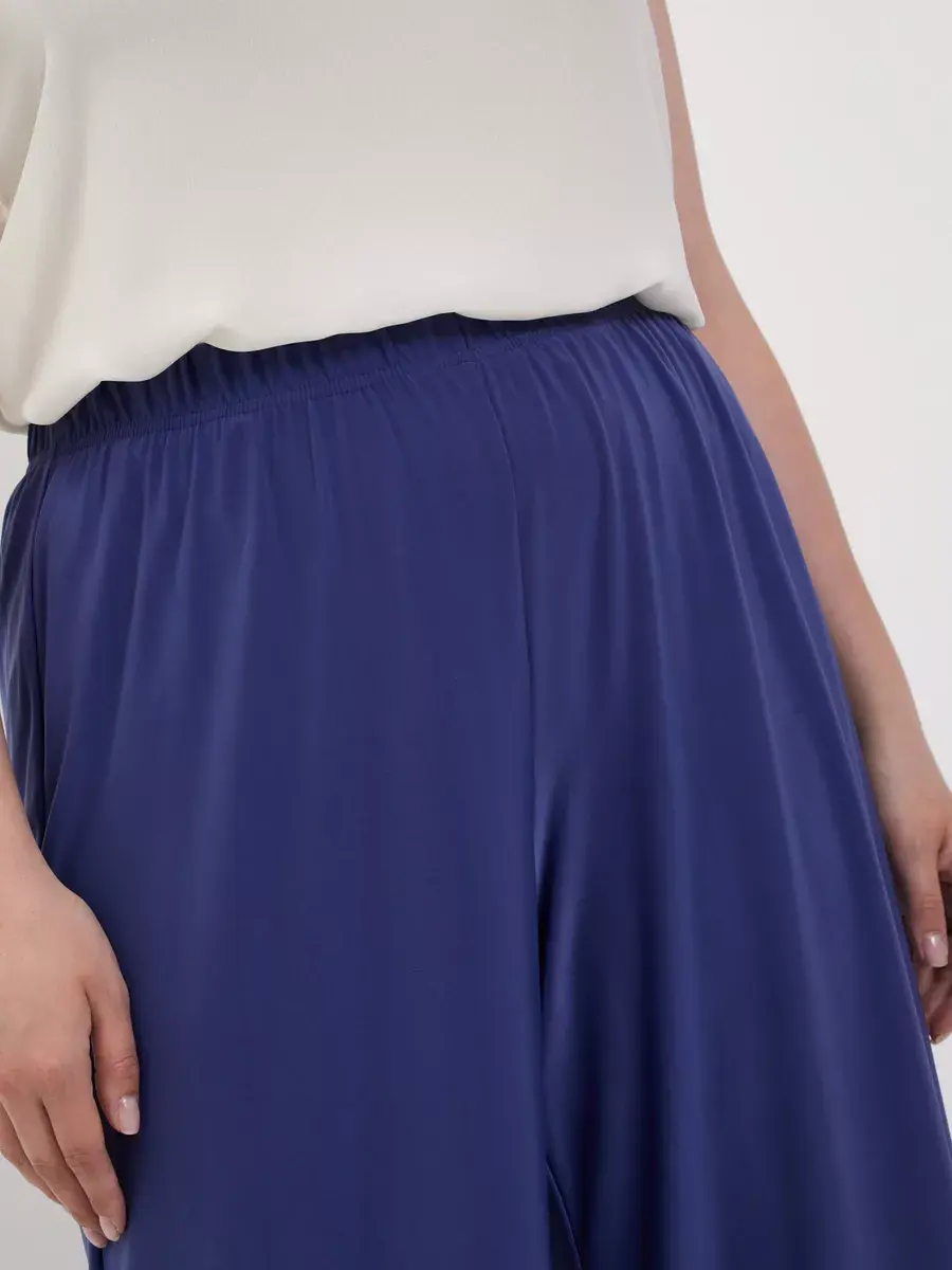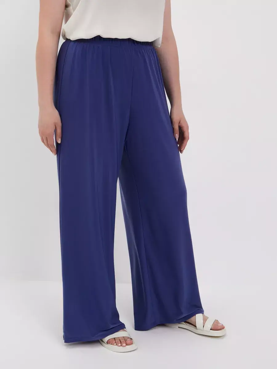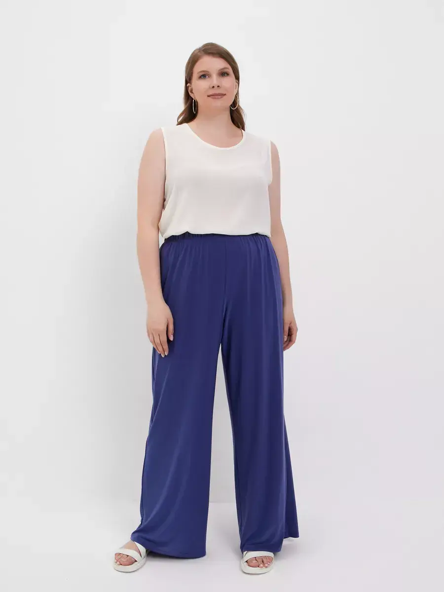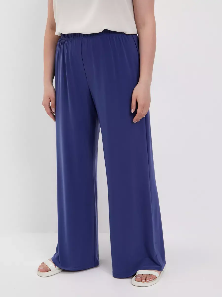 Легкие трикотажные брюки от бренда OLSI из шелковистого материала. Брюки свободного кроя из ткани трикотаж масло не мнутся и быстро сохнут. Это универсальный вариант брюк, который можно носить круглый год. На праздник их можно сочетать с нарядной блузой и туфлями, а для более спортивного образа - с футболкой и кедами. Они подойдут и для прогулок, и для поездок, так как не помнутся в чемодане. Брюки также подойдут для работы, офиса, ресторана, театра или торжественного мероприятия в сочетании с нарядным верхом. Модель брюк палаццо с круговой резинкой по талии, без застежки. Широкие струящиеся брюки в комфортном свободном стиле незаменимы в жаркую погоду. Идеальный вариант в офис, на праздник, на прогулку.