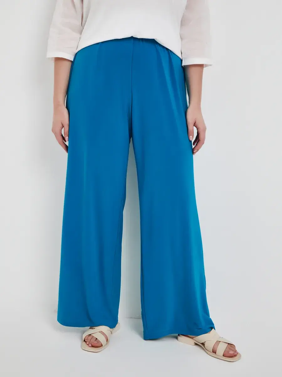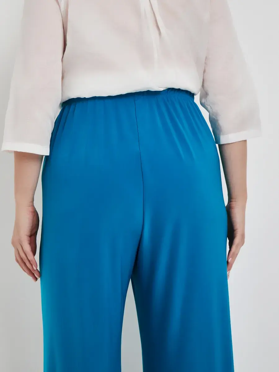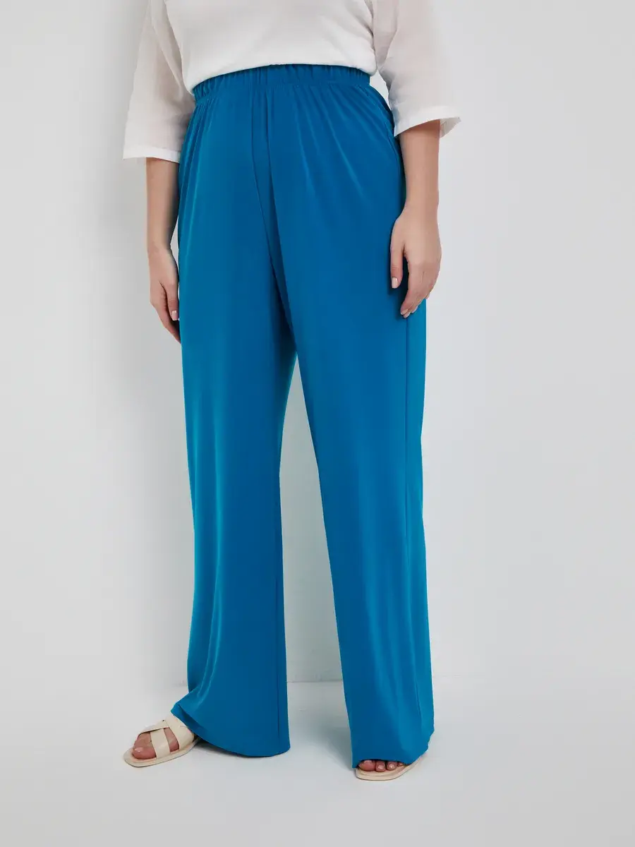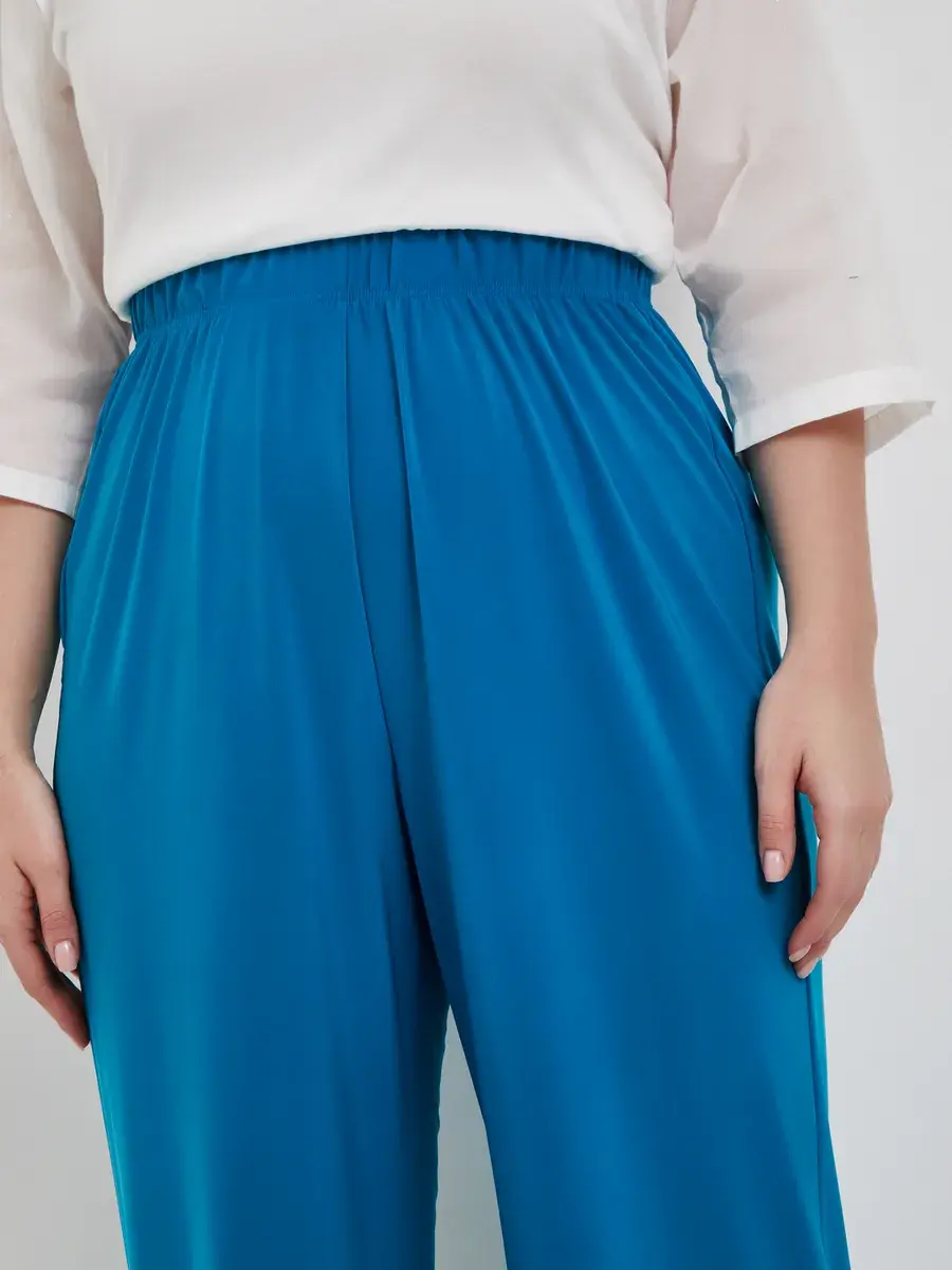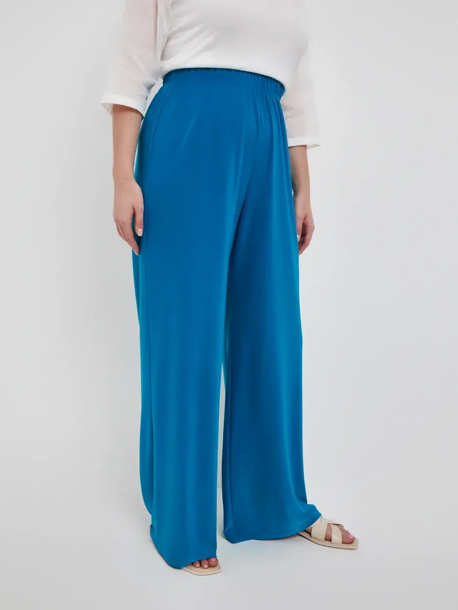 Легкие трикотажные брюки от бренда OLSI из шелковистого материала. Брюки свободного кроя из ткани трикотаж масло не мнутся и быстро сохнут. Это универсальный вариант брюк, который можно носить круглый год. На праздник их можно сочетать с нарядной блузой и туфлями, а для более спортивного образа - с футболкой и кедами. Они подойдут и для прогулок, и для поездок, так как не помнутся в чемодане. Брюки также подойдут для работы, офиса, ресторана, театра или торжественного мероприятия в сочетании с нарядным верхом. Модель брюк палаццо с круговой резинкой по талии, без застежки. Широкие струящиеся брюки в комфортном свободном стиле незаменимы в жаркую погоду. Идеальный вариант в офис, на праздник, на прогулку.