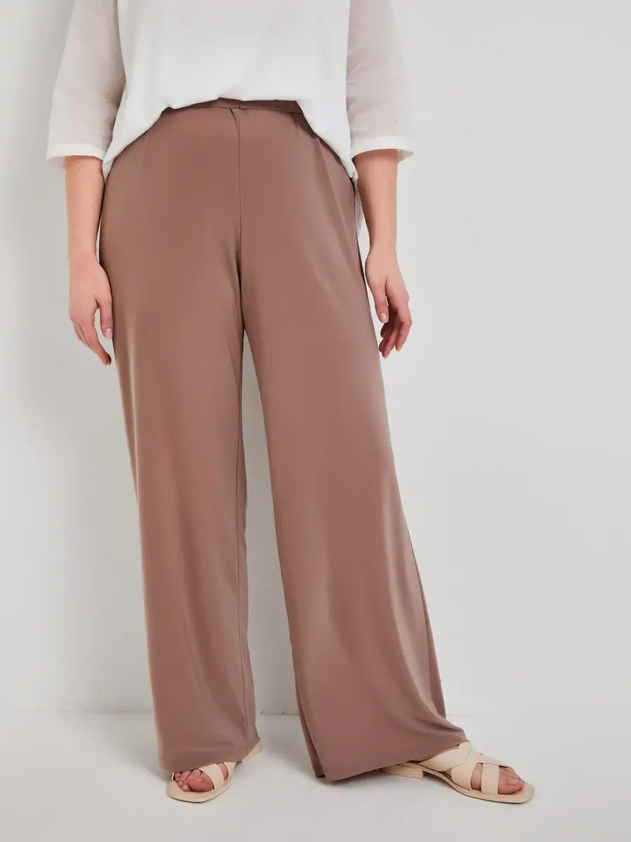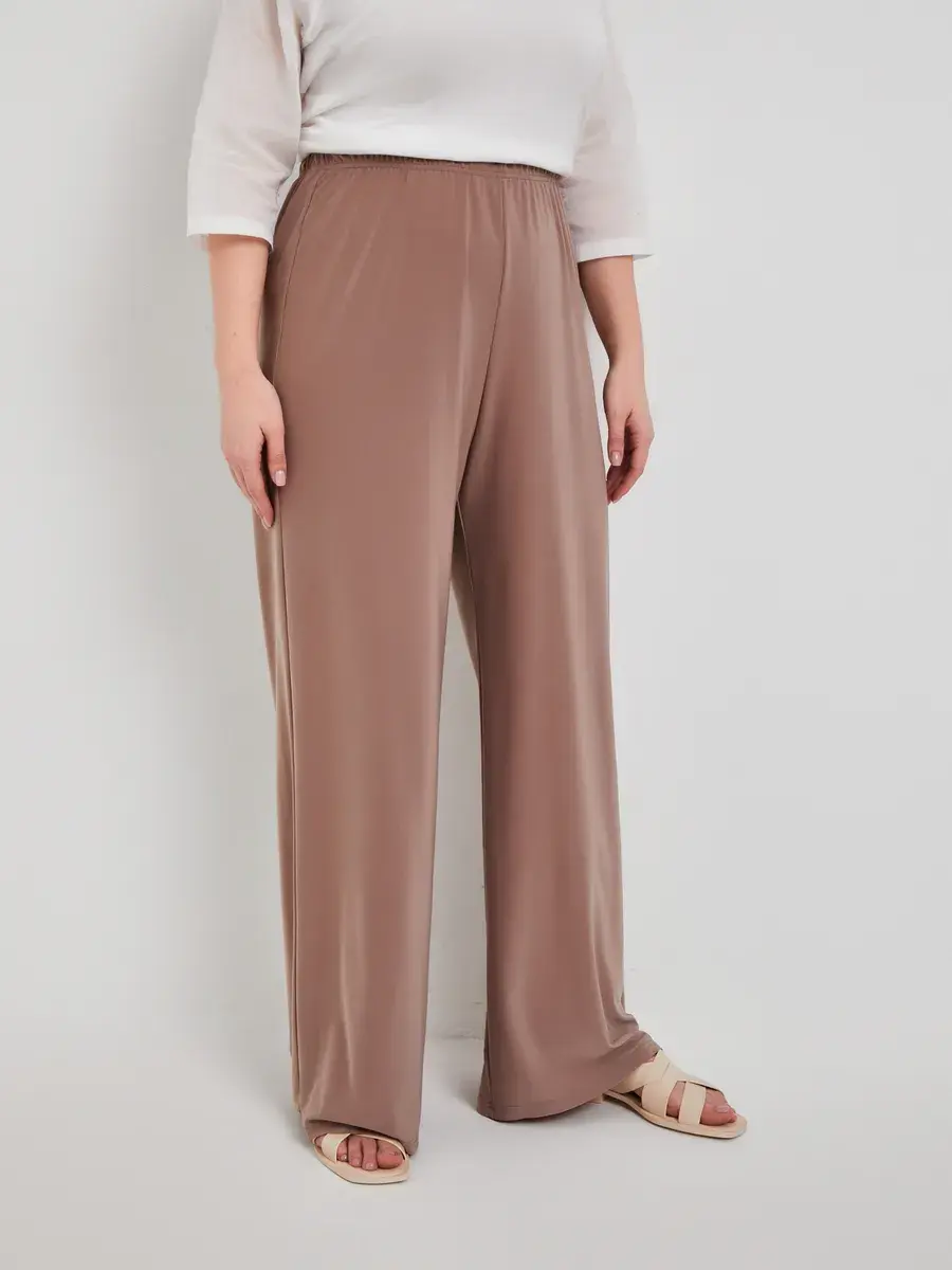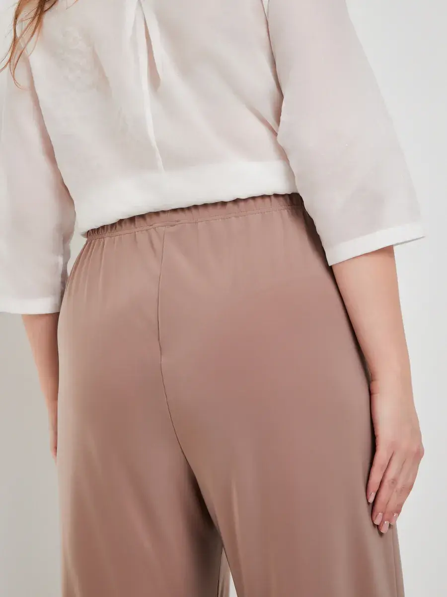 Легкие трикотажные брюки от бренда OLSI из шелковистого материала. Брюки свободного кроя из ткани трикотаж масло не мнутся и быстро сохнут. Это универсальный вариант брюк, который можно носить круглый год. На праздник их можно сочетать с нарядной блузой и туфлями, а для более спортивного образа - с футболкой и кедами. Они подойдут и для прогулок, и для поездок, так как не помнутся в чемодане. Брюки также подойдут для работы, офиса, ресторана, театра или торжественного мероприятия в сочетании с нарядным верхом. Модель брюк палаццо с круговой резинкой по талии, без застежки. Широкие струящиеся брюки в комфортном свободном стиле незаменимы в жаркую погоду. Идеальный вариант в офис, на праздник, на прогулку.
