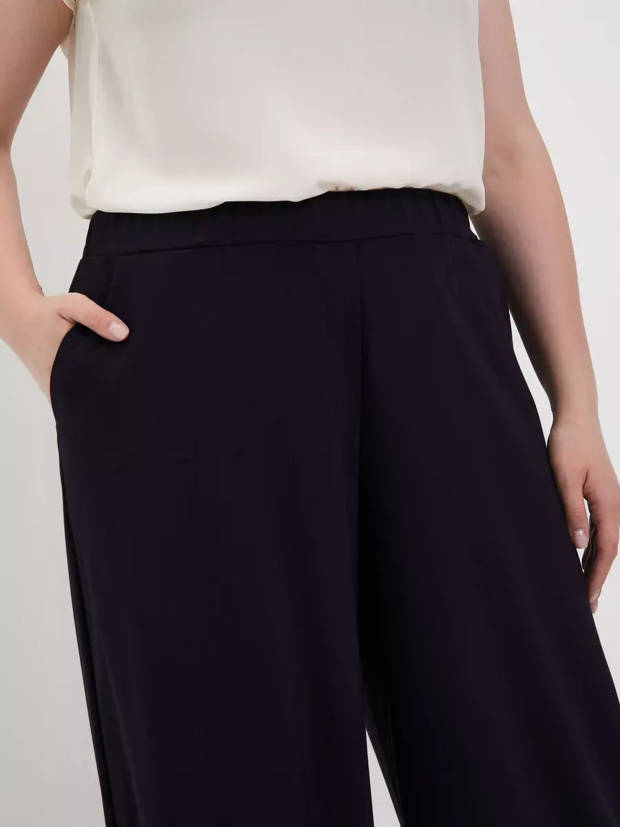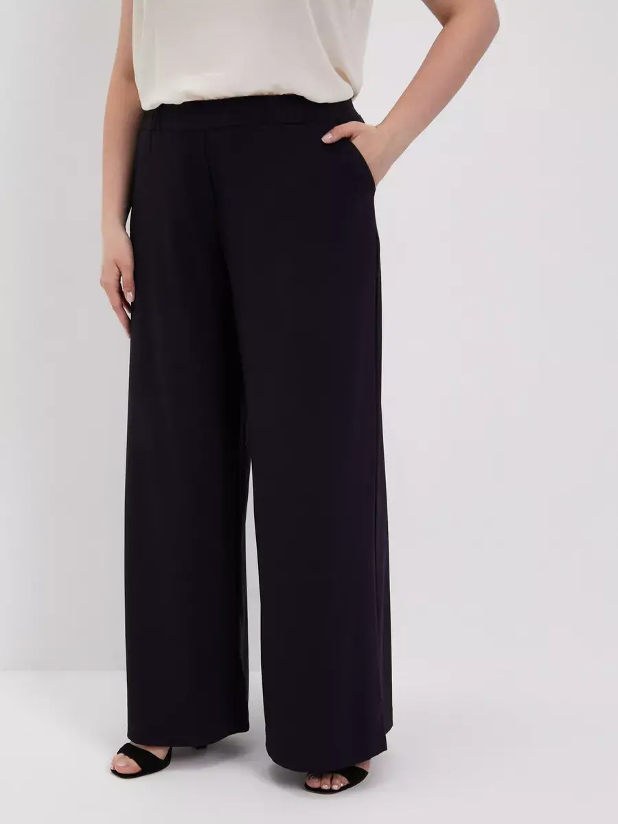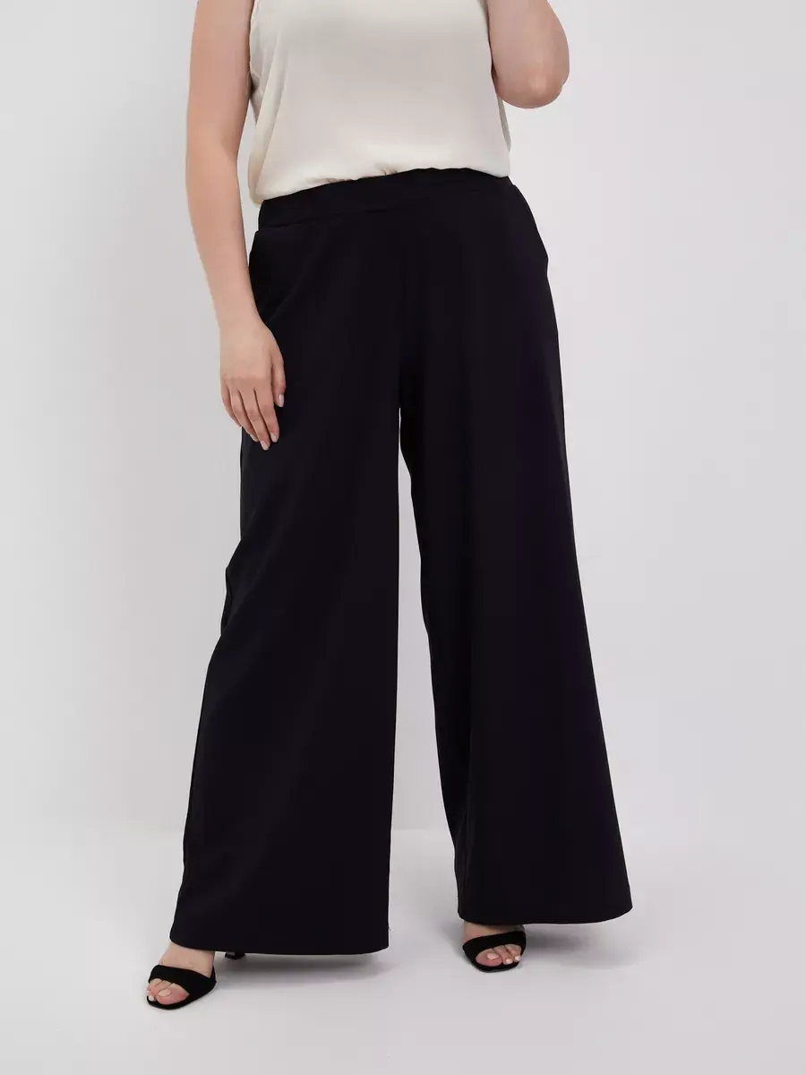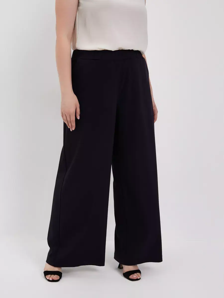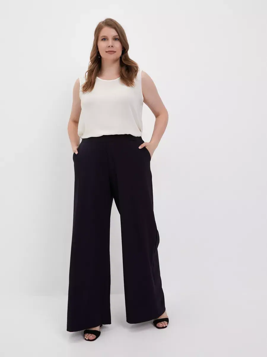 Женские брюки палаццо больших размеров от бренда OLSI, однотонные из текстильного тонкого полотна, прямого силуэта. Стильные длинные юбка-брюки высокой посадки с поясом на резинке. Оригинальная модель идеально сидит на фигуре любого типа благодаря завышенной линии талии визуально стройнят ноги, делают их длинными. Широкие штанины брюк создают ощущение, что на вас длинная широкая юбка. Женские брюки Олси представлены в 10 размерах от 52 до 70. Удобные лекала. Большой популярностью пользуются эти брюки в бежевом цвете. Отлично подходят для офиса, как деловая одежда для женщин а также для вечеринок. И модель в целом стройнит свою обладательницу. Брюки хорошо подойдут не только стройным девушкам, но в том числе обладательницам полных ног.