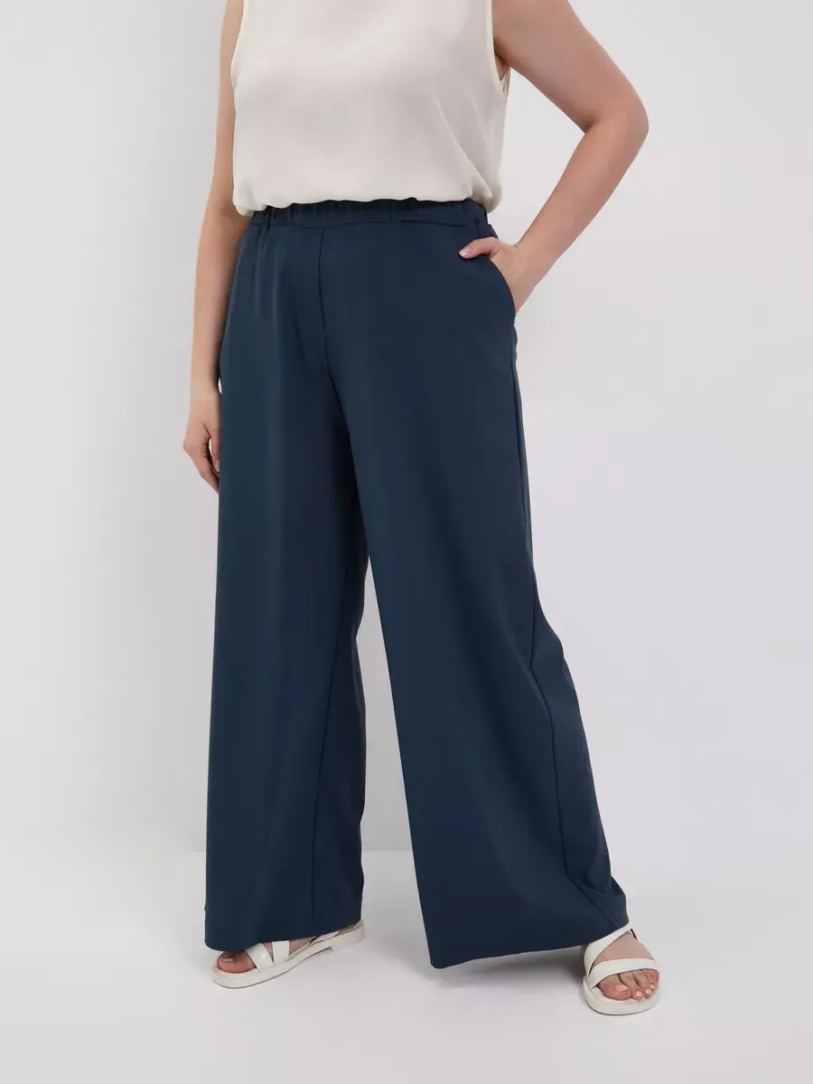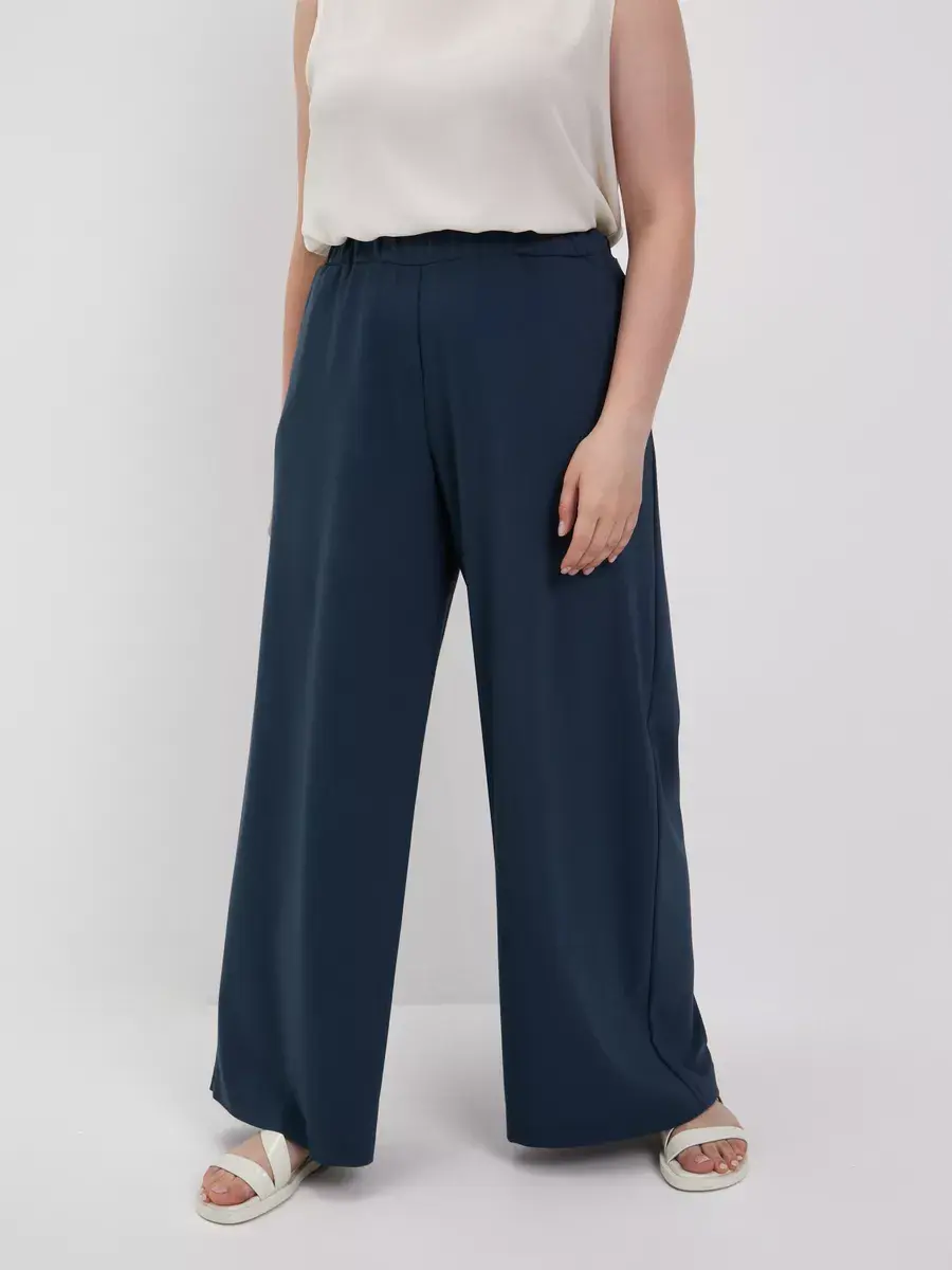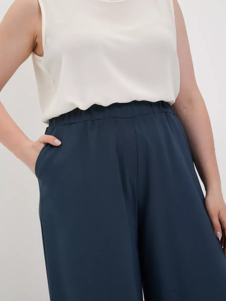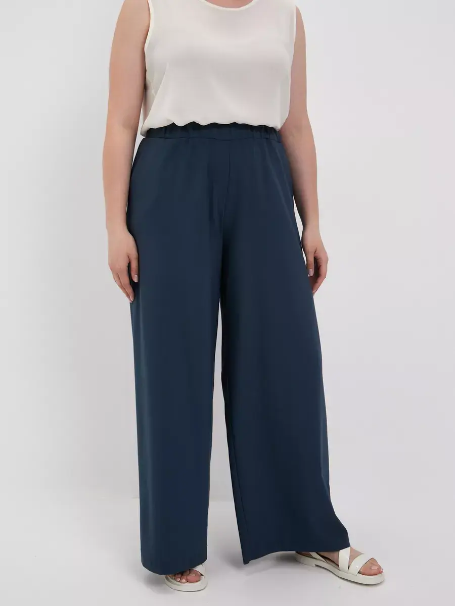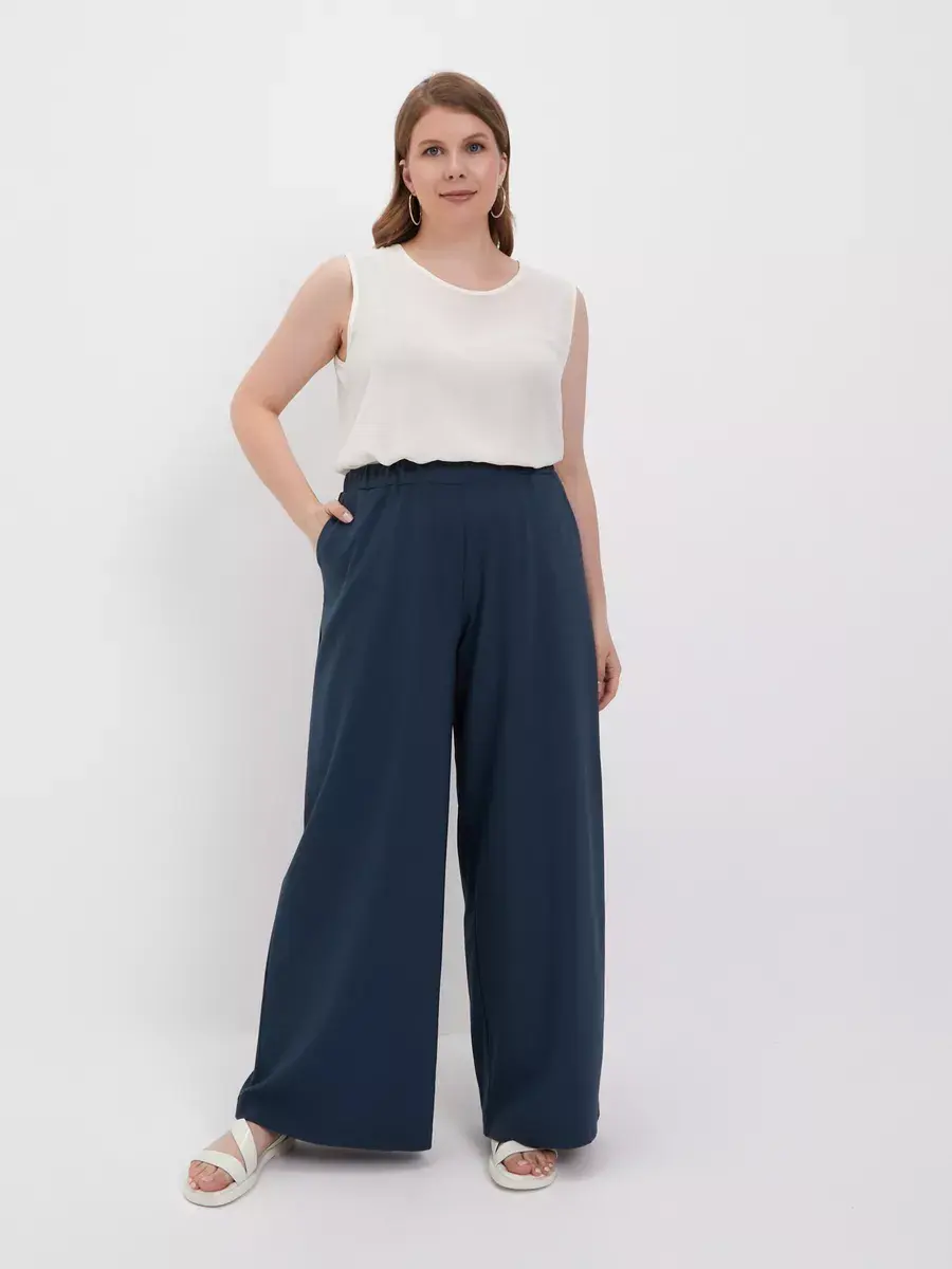 Женские брюки палаццо больших размеров от бренда OLSI, однотонные из текстильного тонкого полотна, прямого силуэта. Стильные длинные юбка-брюки высокой посадки с поясом на резинке. Оригинальная модель идеально сидит на фигуре любого типа благодаря завышенной линии талии визуально стройнят ноги, делают их длинными. Широкие штанины брюк создают ощущение, что на вас длинная широкая юбка. Женские брюки Олси представлены в 10 размерах от 52 до 70. Удобные лекала. Большой популярностью пользуются эти брюки в бежевом цвете. Отлично подходят для офиса, как деловая одежда для женщин а также для вечеринок. И модель в целом стройнит свою обладательницу. Брюки хорошо подойдут не только стройным девушкам, но в том числе обладательницам полных ног.