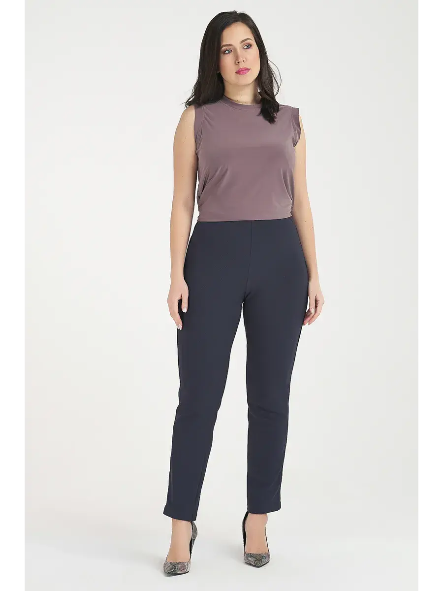 Женские брюки однотонные из плотного трикотажа, прилегающего силуэта, длина до щиколотки. Пояс притачной на жесткой резинке. Женские классические в рубчик, прямые, для полных женщин, брюки большие размеры