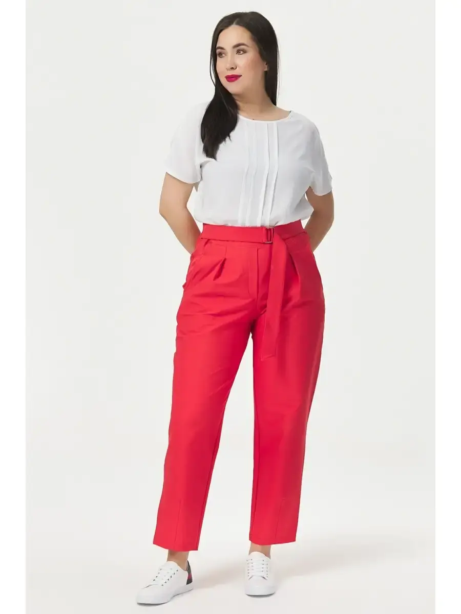 Повседневные женские брюки из хлопчатобумажной ткани однотонные, прямого силуэта. С функциональными карманами на передней части, застежка-обманка складками. Притачной пояс и притачной пояс на резинке. Для заужения снизу вытачки. Брюки длиной до щиколотки.Длина бокового шва/длина шагового шва/ширина брючины низ соответственно:р.48-101,4см/72,3см/21,5смр.50-101,7см/72,1см/22,0смр.52-101,9см/71,9см/22,5смр.54-102,3см/71,6см/23,0смр.56-102,5см/71,5см/23,5смр.58-102,9см/71,3см/24,0смр.60-103,2см/71,1см/24,5смр.62-103,5см/70,9см/25,0смр.64-103,8см/70,6см/25,5смр.66-104,3см/70,4см/26,0смр.68-104,5см/70,2см/26,5смр.70-104,8см/69,9см/27,0см