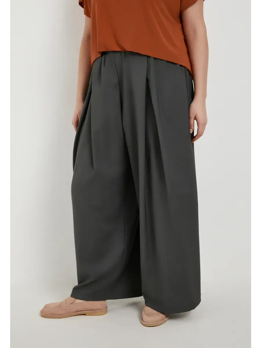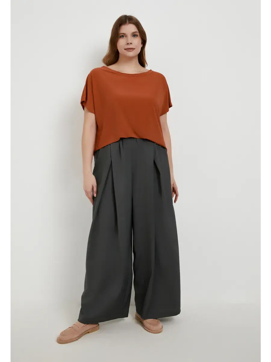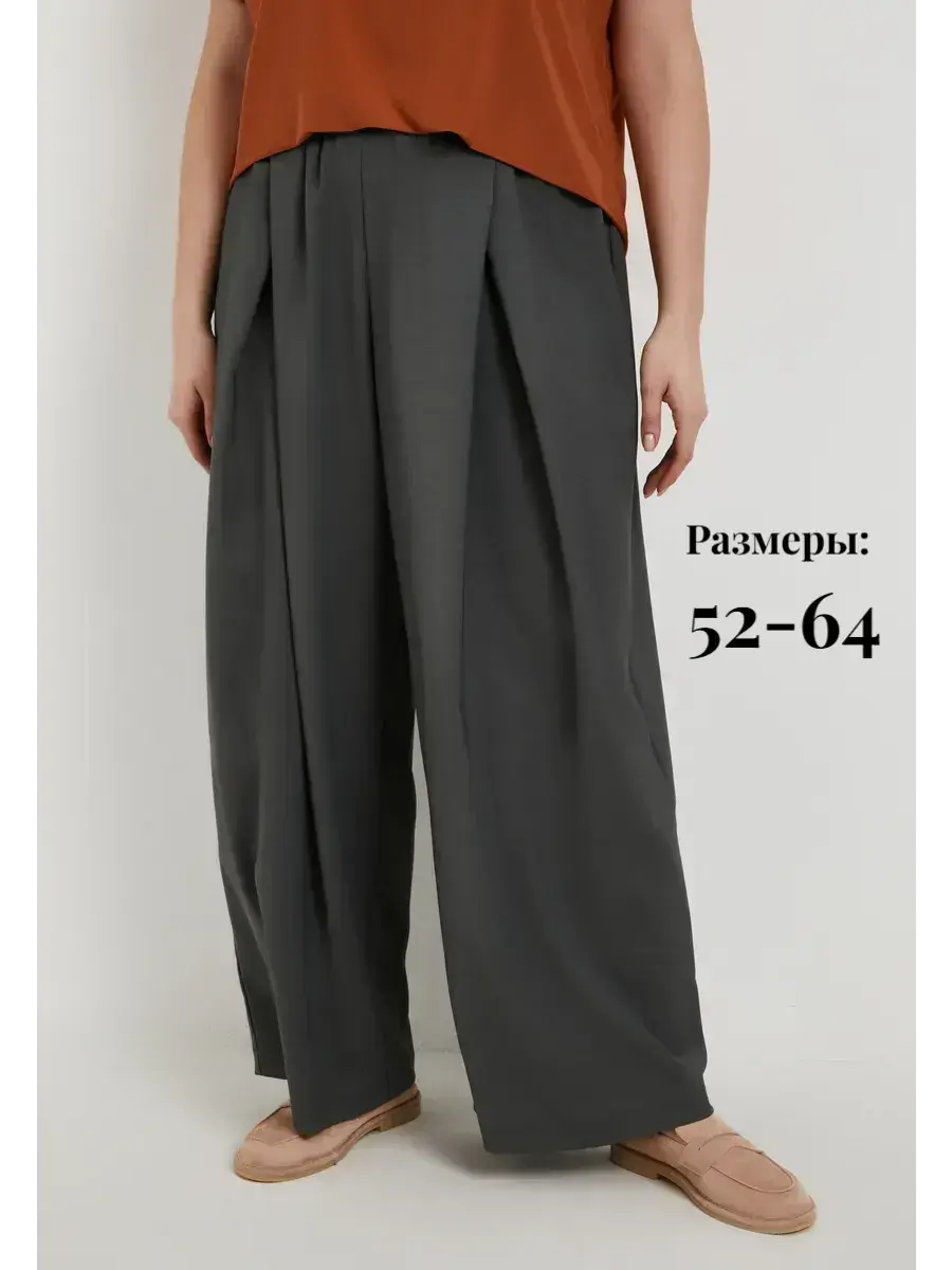 Женские брюки палаццо больших размеров от бренда OLSI, однотонные, прямого силуэта. Широкие брюки с защипами сверху,высокая посадка. Выполненные из фактурного струящегося материала. Оверсайз-крой, удобный пояс на резинке для максимального комфорта. Это универсальный вариант брюк, который можно носить круглый год. На праздник их можно сочетать с нарядной блузой и туфлями, а для более спортивного образа - с футболкой и кедами, позволяя создавать стильные образы на любой случай. Они легко адаптируются к различным стилям, идеально подходя как для повседневной носки, так и для создания оригинальных нарядов для особых мероприятий. Эти штаны больших размеров также подойдут для работы, офиса, ресторана, театра или торжественного мероприятия в сочетании с нарядным верхом. Модель брюк палаццо с круговой резинкой по талии, без застежки. Широкие струящиеся брюки в комфортном свободном стиле незаменимы в жаркую погоду и путешествии. Идеальный вариант в офис, на праздник, на прогулку. Широкий размерный ряд и свободная посадка.