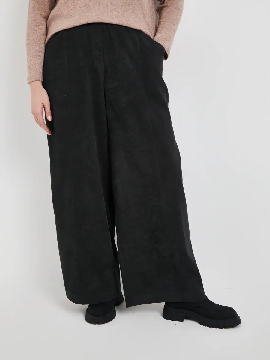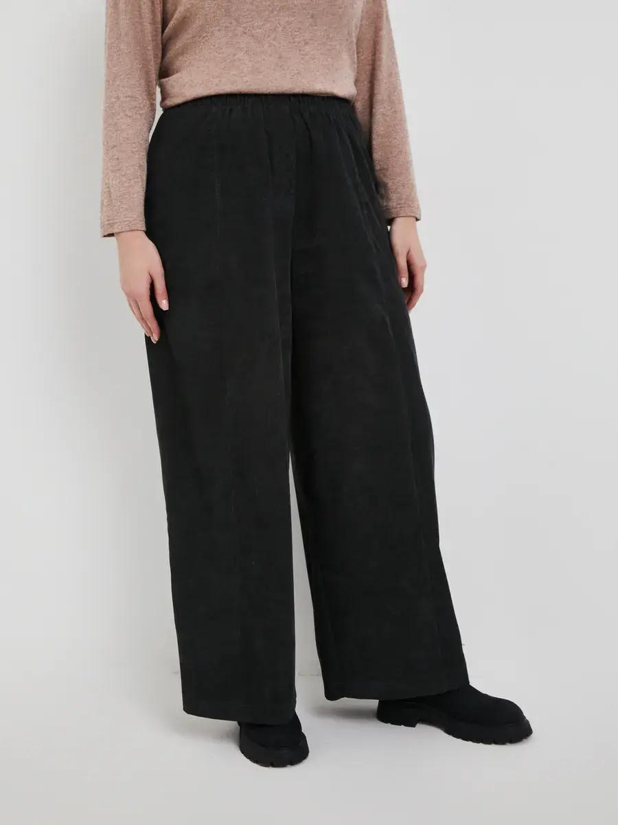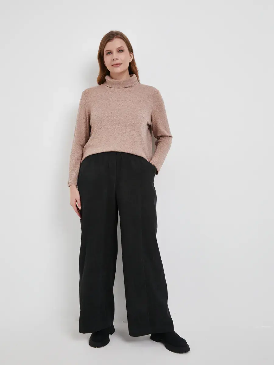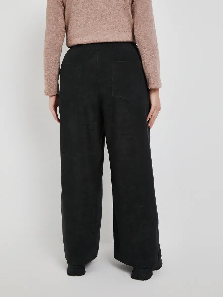 Широкие вельветовые брюки с высокой посадкой и стрелками. Выполненные из фактурного материала. Оверсайз-крой, с боковыми карманами и накладными сзади. Верхняя часть на резинке для максимального комфорта