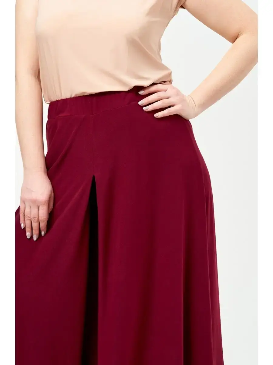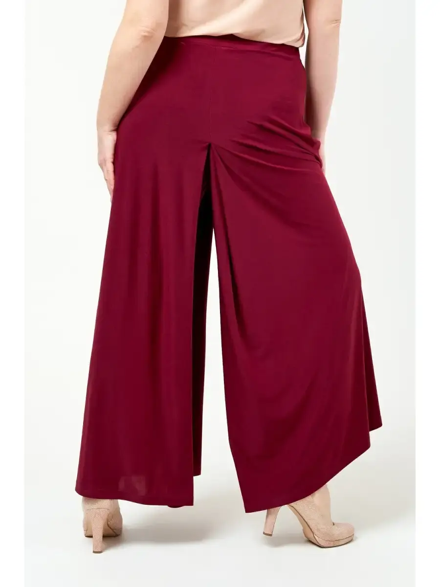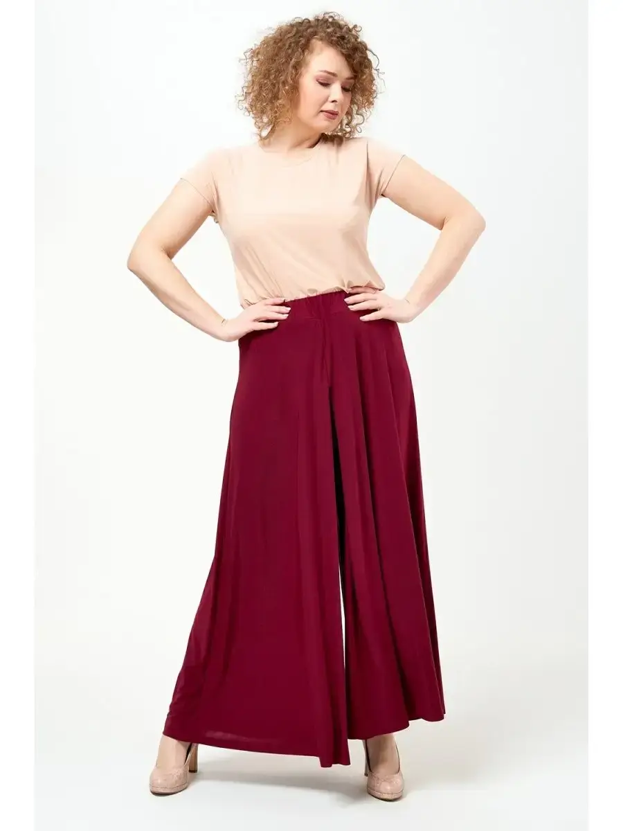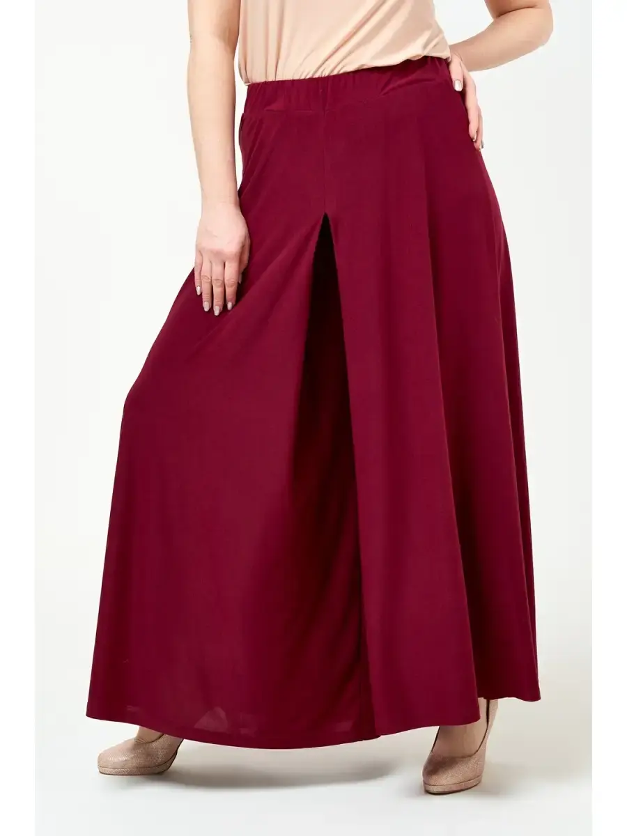 Шикарные женские юбка-брюки больших размеров. Женские брюки больших размеров выполнены из мягкого струящегося трикотажного материала. Юбка-брюки подойдут для любого случая жизни, как повседневный гардероб, так и для торжественных выходов. Все промеры размеров одинаковые в данной модели, отличаются резинкой в поясе. Длина бокового шва 107 см.