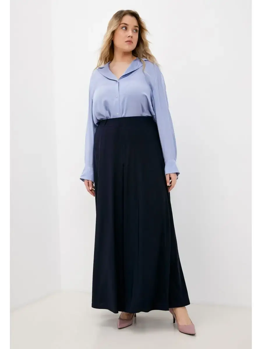 Шикарные женские юбка-брюки больших размеров. Женские брюки больших размеров выполнены из мягкого струящегося трикотажного материала. Юбка-брюки подойдут для любого случая жизни, как повседневный гардероб, так и для торжественных выходов. Все промеры размеров одинаковые в данной модели, отличаются резинкой в поясе. Длина бокового шва 107 см.