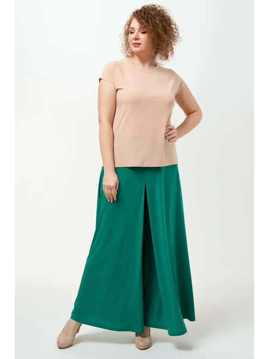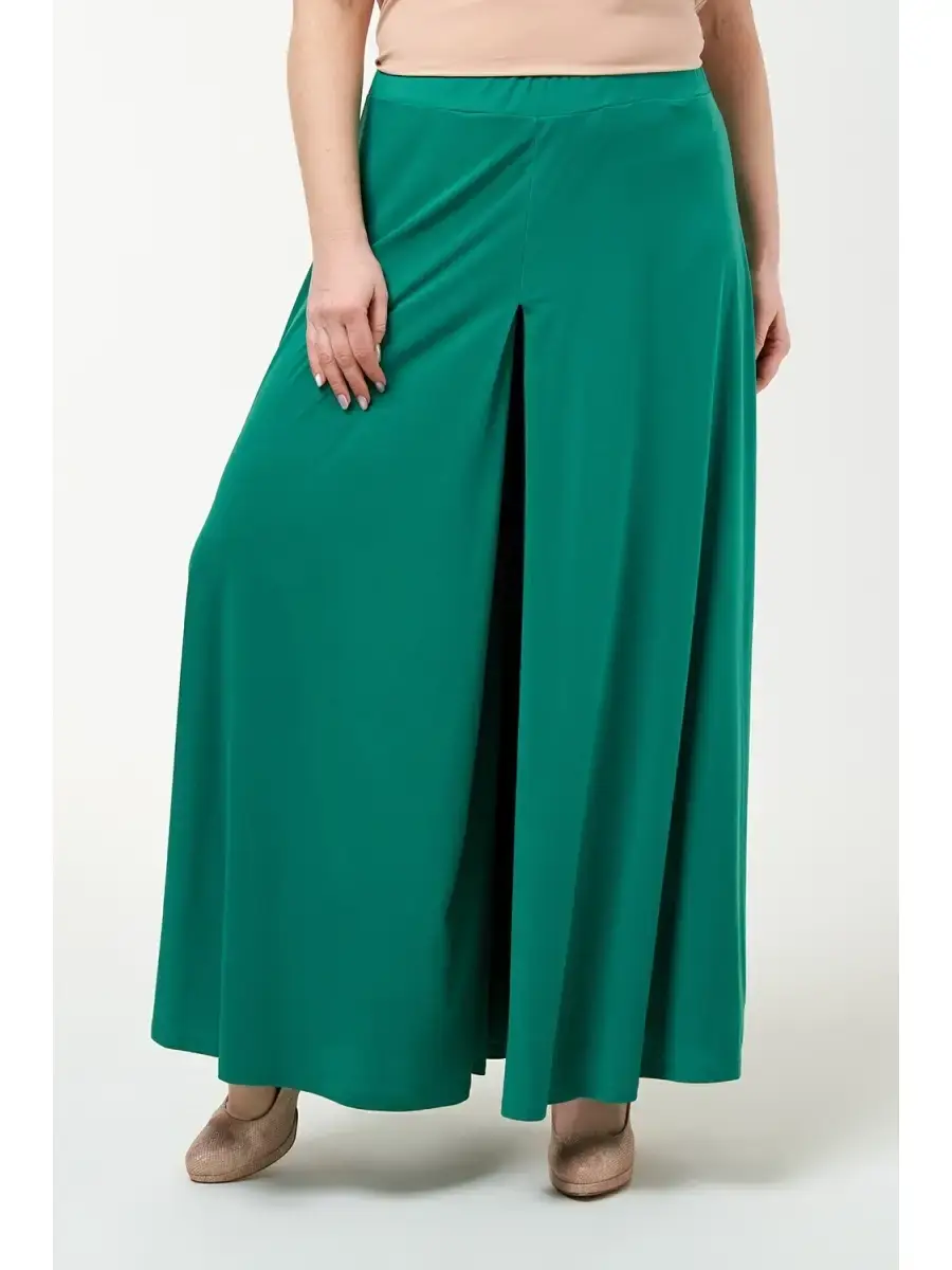 Шикарные женские юбка-брюки больших размеров. Женские брюки больших размеров выполнены из мягкого струящегося трикотажного материала. Юбка-брюки подойдут для любого случая жизни, как повседневный гардероб, так и для торжественных выходов. Все промеры размеров одинаковые в данной модели, отличаются резинкой в поясе. Длина бокового шва 107 см.