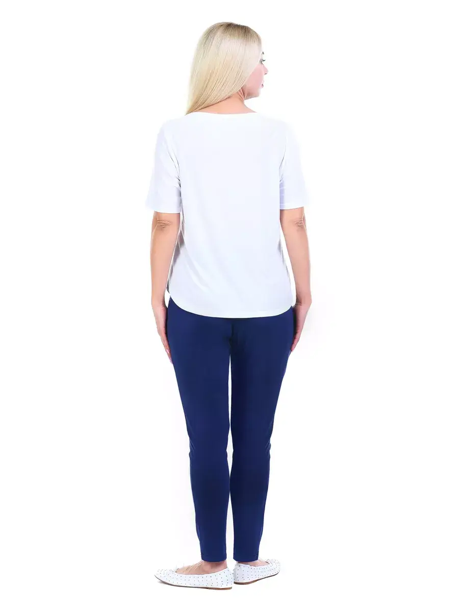Стильные летние брюки чиносы длиной до косточки, из легкой струящейся ткани по типу "масло". Модель с удобными боковыми карманами; спереди на фигурной кокетке с вертикальными защипами; зауженная книзу. Такой крой дает идеальную посадку на бедрах, вуалирует несовершенства фигуры и делает силуэт грациознее. Низ брюк укорочен настолько, что бы прикрыть щиколотки, но подчеркнуть красоту стопы.