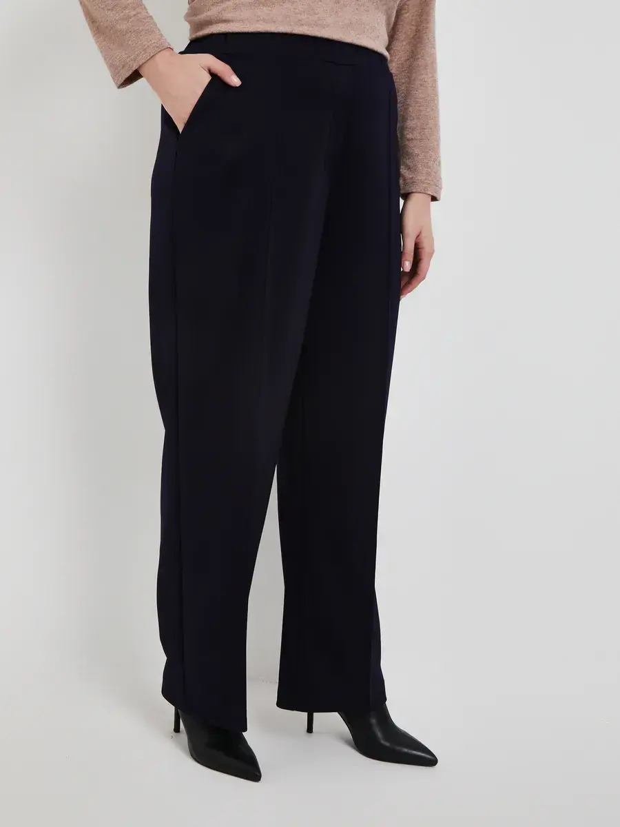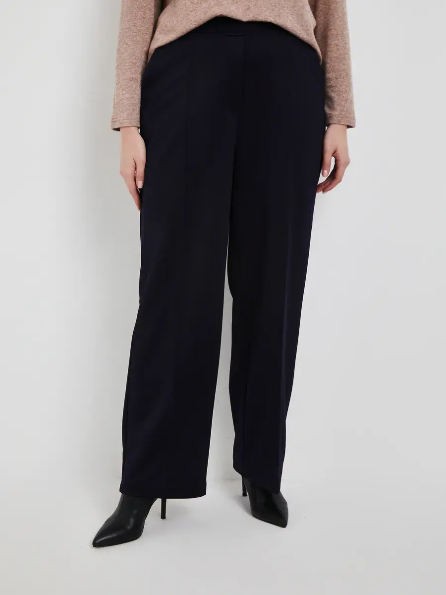 Представляем вашему вниманию великолепные прямые брюки больших размеров, созданные брендом OLSI для осеннего сезона 2025 года. Эти темно-синие штаны с карманами на резинке станут основой как для строгого делового, так и для свободного кэжуал-образа. Их можно сочетать с различными туфлями, сапогами и даже спортивной обувью, будь то кроссовки или кеды.