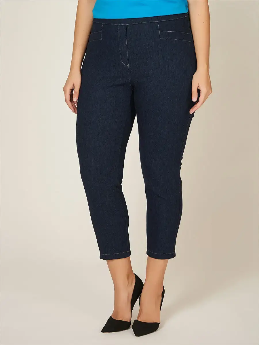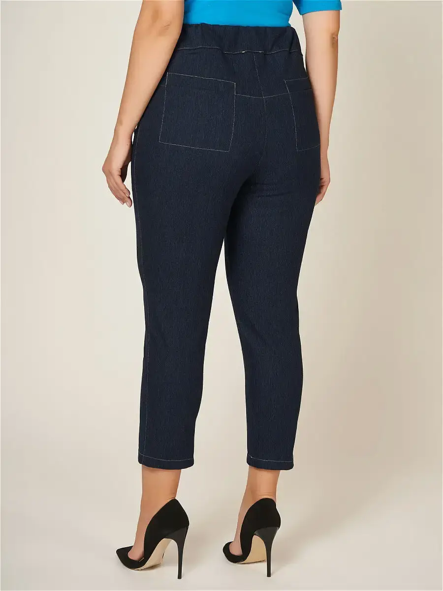 Модные укороченные джинсы длиной 7/8 из хлопковой ткани, узкие по всей длине, со средней комфортной посадкой. Изделие на широкой резинке, с имитацией гульфика, боковых врезных и задних накладных карманов. Модель подтягивает фигуру, визуально делает ее стройнее. Придает образу независимость и динамичность. Это универсальный элемент гардероба, который уместен на прогулке, в клубе, в офисе и даже деловой встрече.