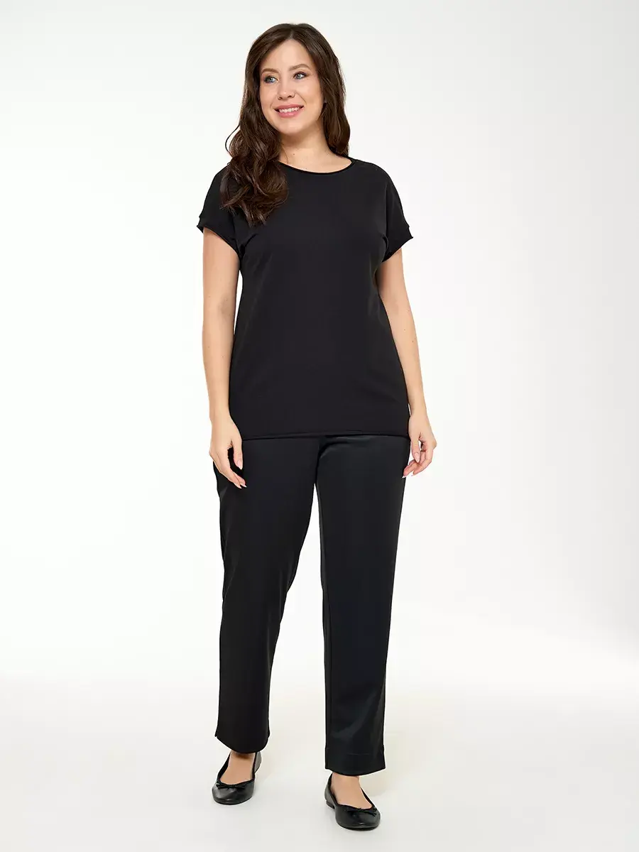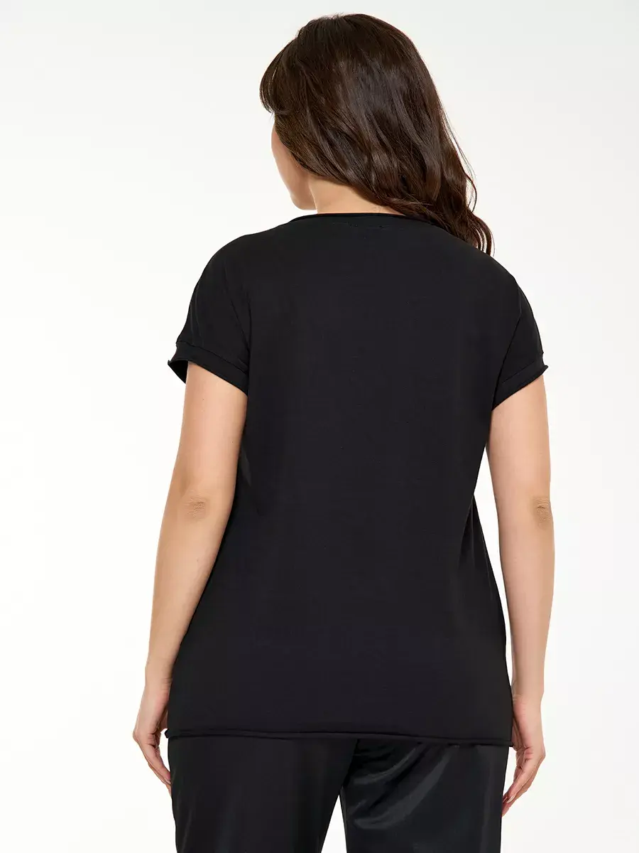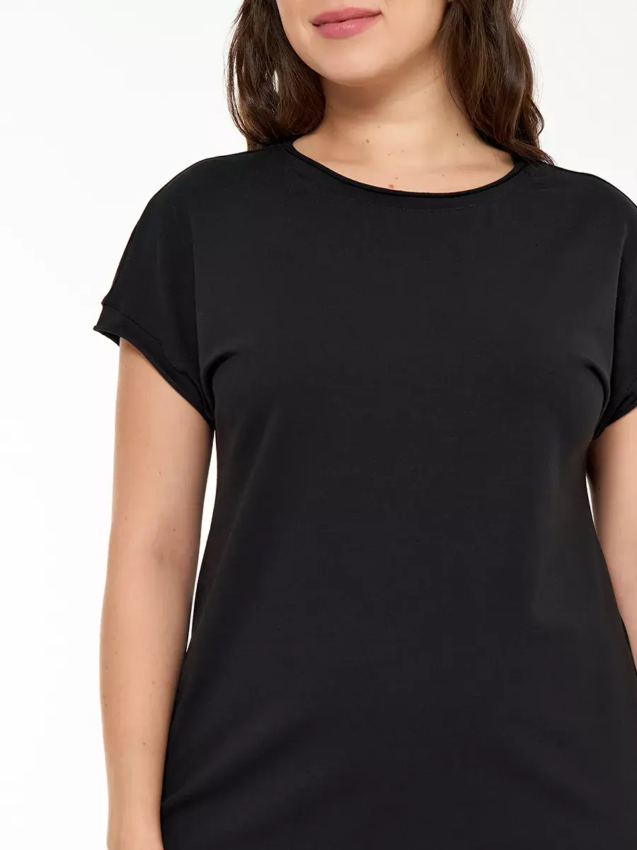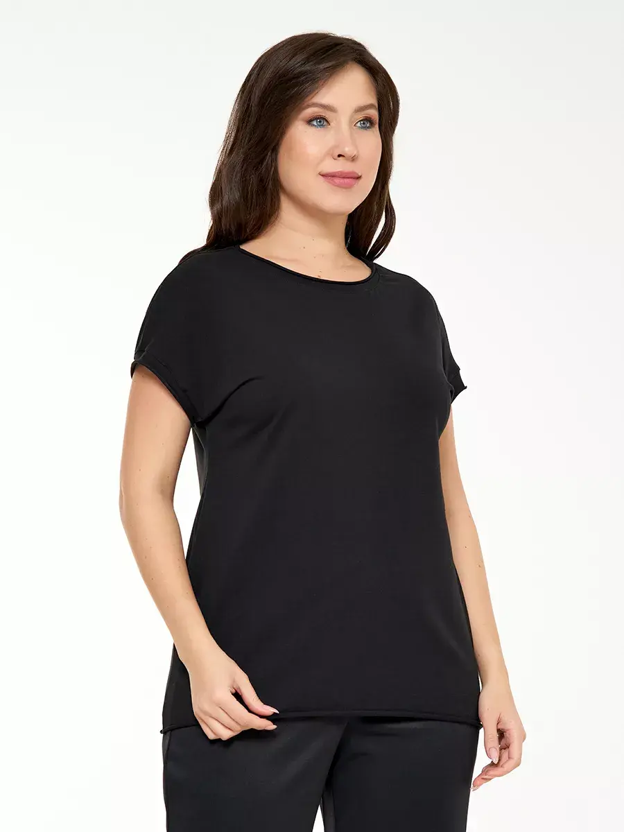 Повседневная женская футболка больших размеров от бренда OLSI выполнена из качественной кулирки с лайкрой.