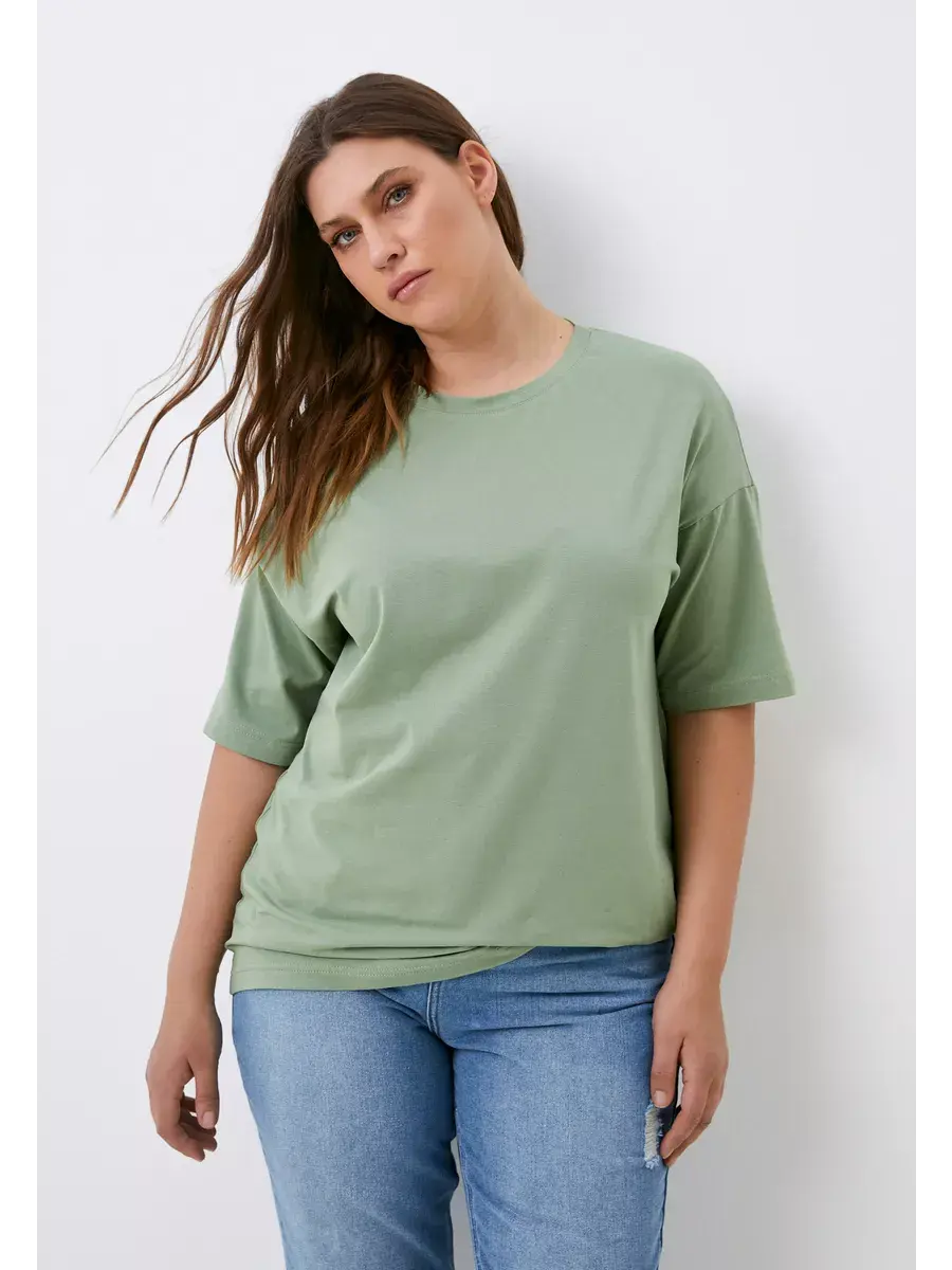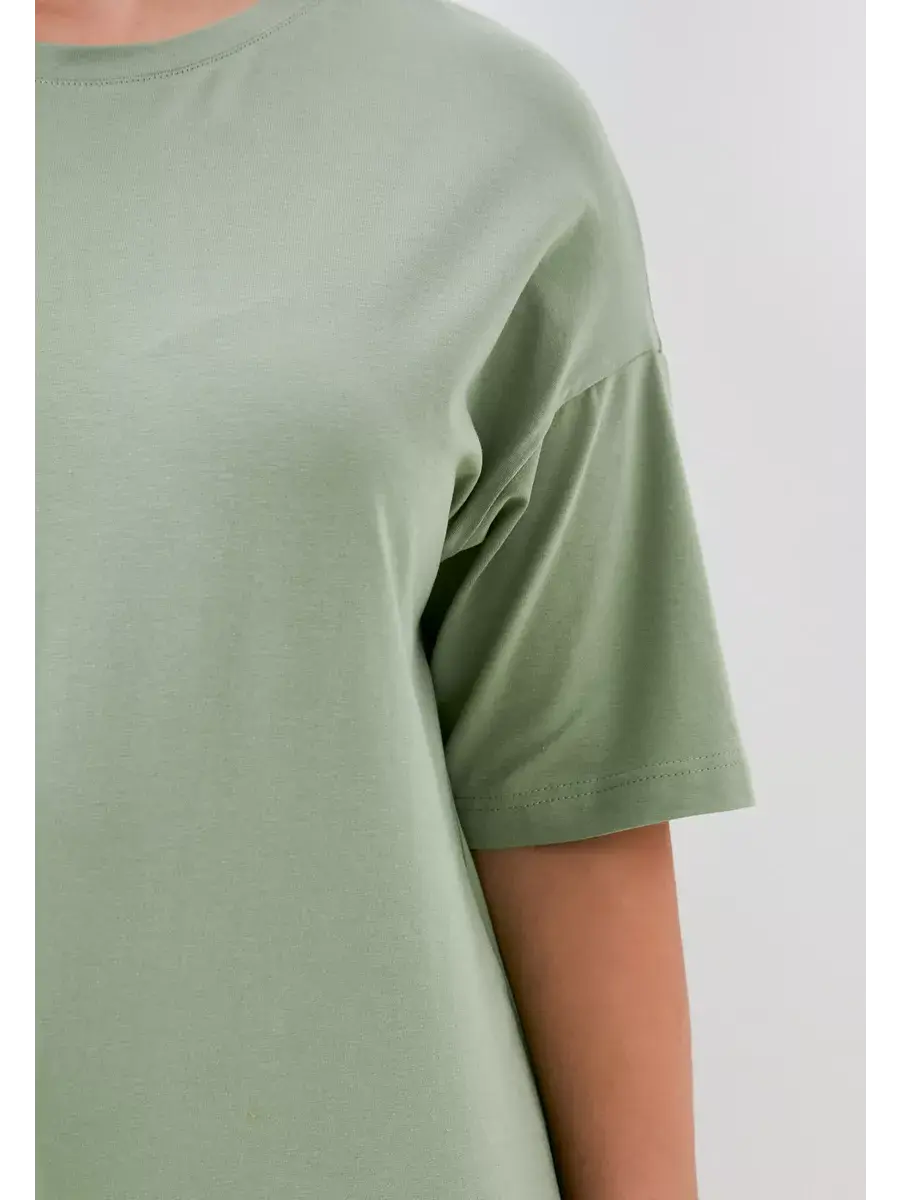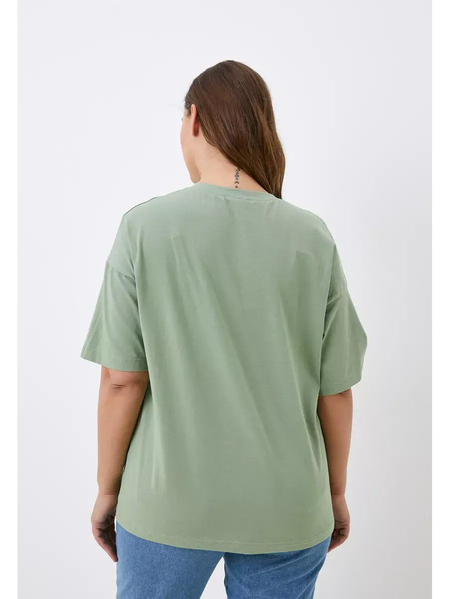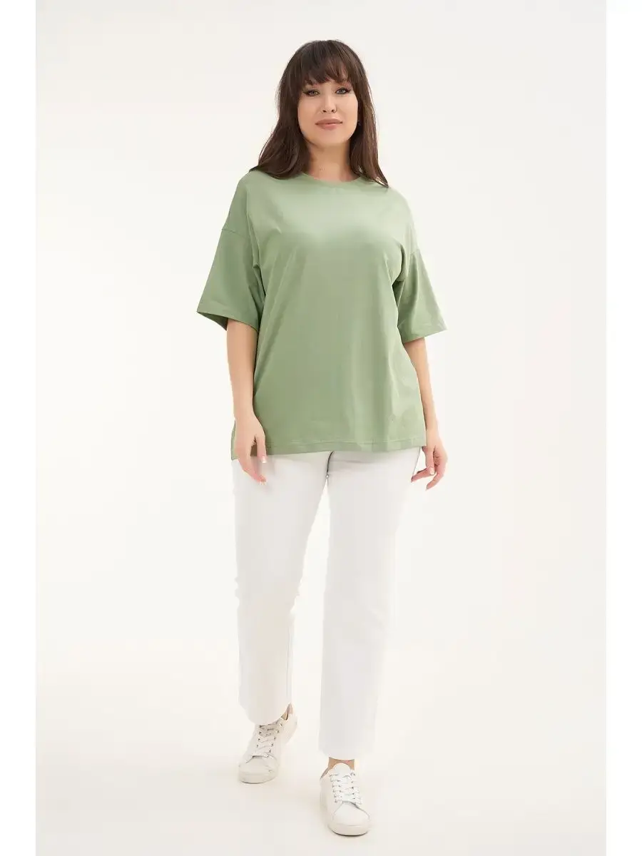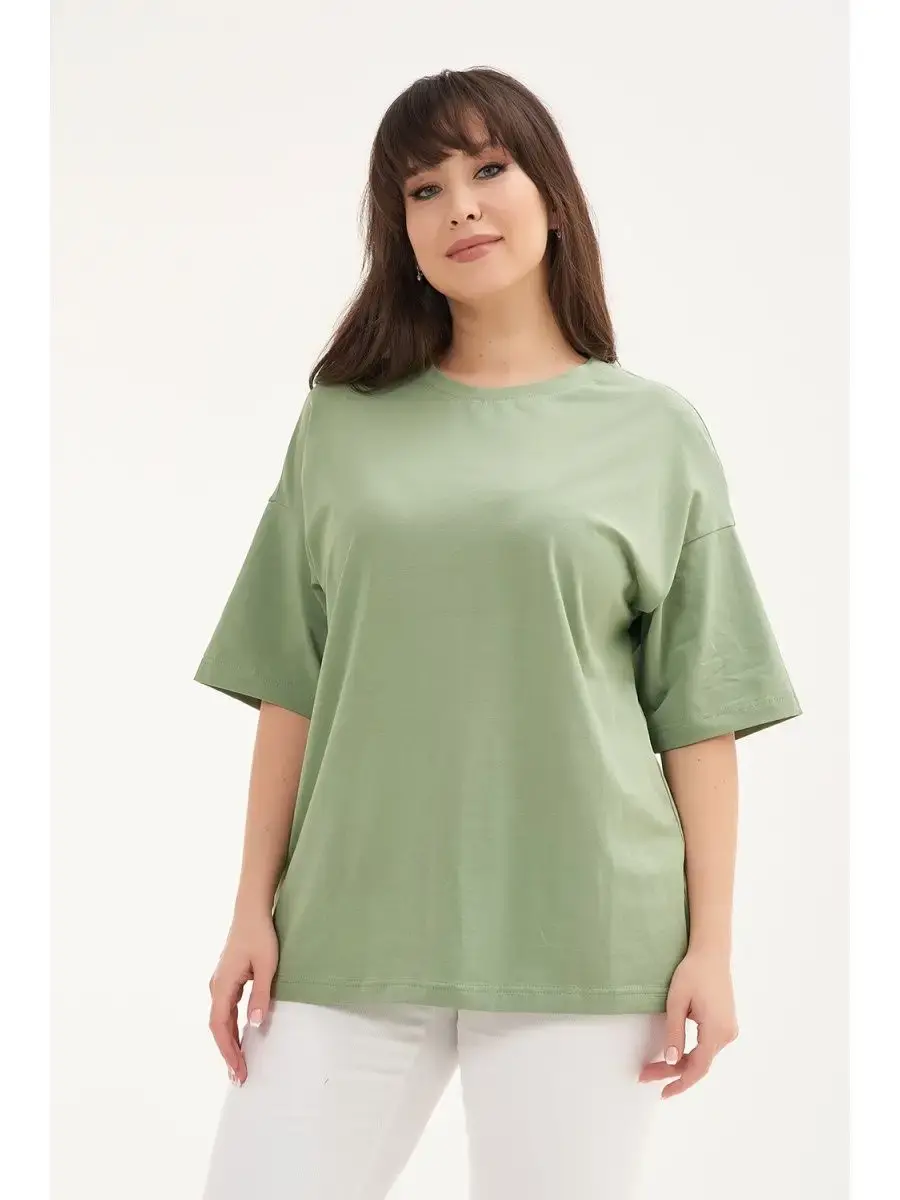 Базовая женская туника больших размеров, однотонная футболка в стиле оверсайз со спущенным плечом и рукавами до локтя. Универсальная модель со свободной посадкой для повседневных образов. Выполнена из мягкого, приятного к телу хлопка с добавлением эластана - премиум качество, - чтобы ткань не теряла форму, меньше мялась и за ней было легко ухаживать. Длина по спинке во всех размерах 72см, длина рукава 22см.