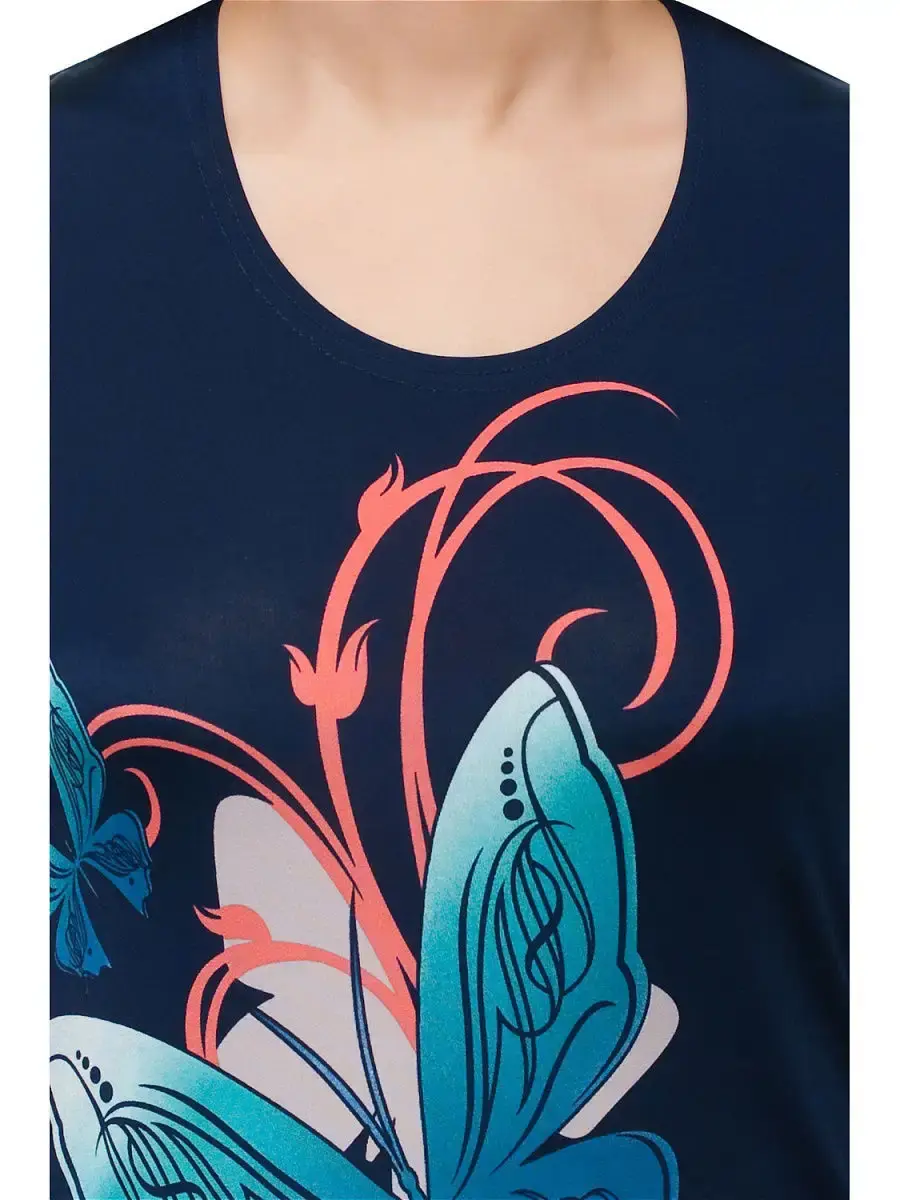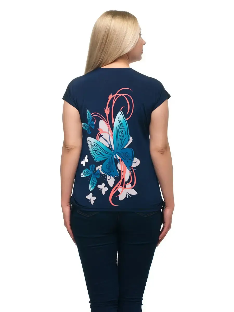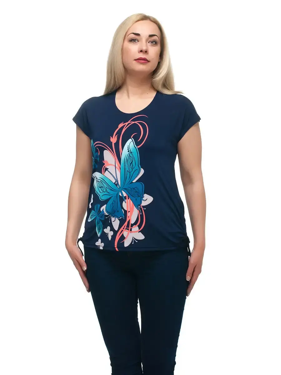 Стильный повседневный топ с коротким рукавом. Простая легкая женская блузка больших размеров из немнущегося материала - трикотажа масло. Спереди и сзади цветочный принт. Футболка для женщин и девушек очень комфортна в летнюю жару, несмотря на синтетический состав. Ягкая струящаяся ткань приятно холодит кожу. В нижней части боковых швов расположены кулиски с завязками, что выгодно скрывает недостатки в области живота. Длина по спинке от 65 см в 48 размере до 70,5 см в 70 размере.
