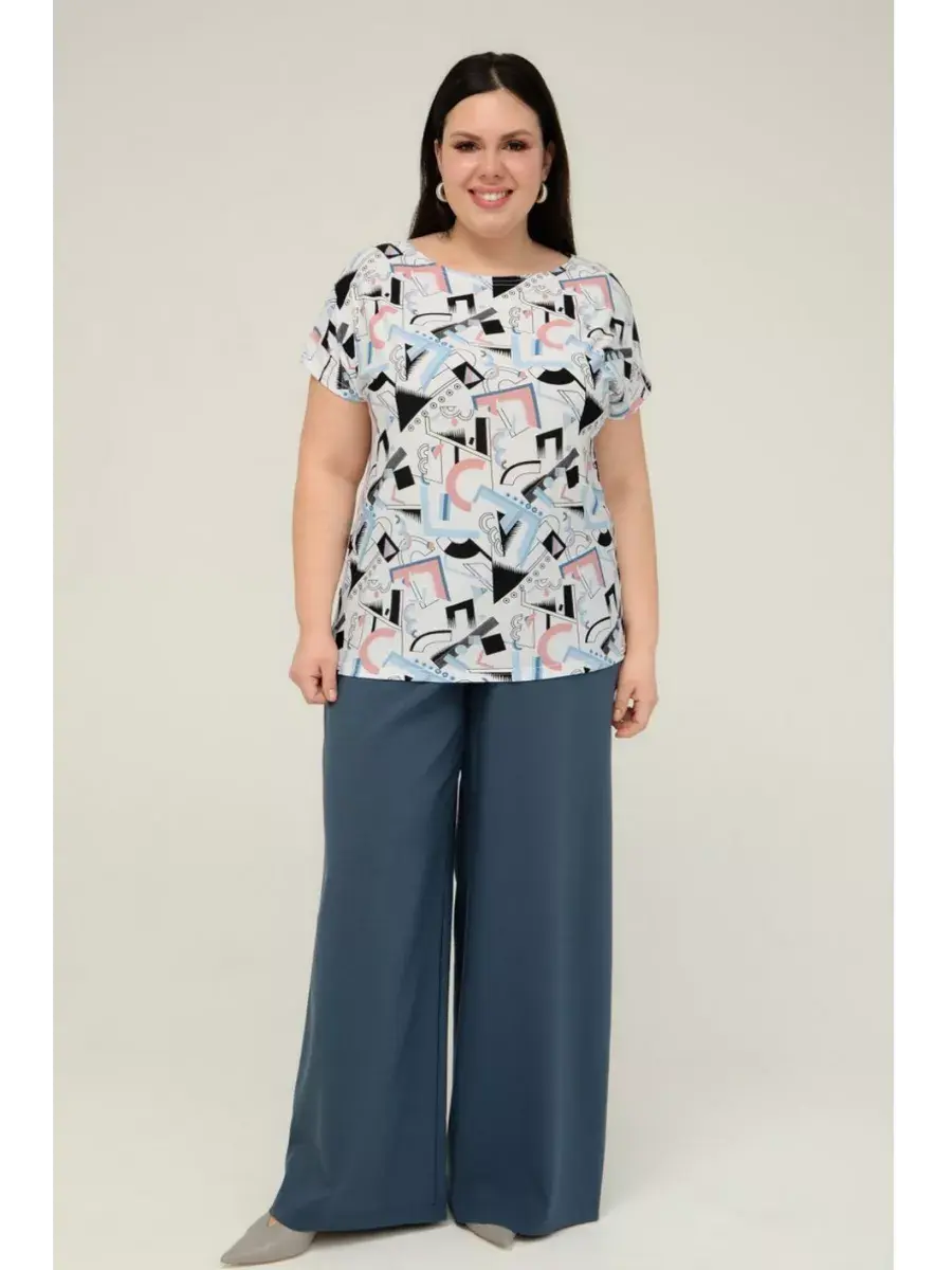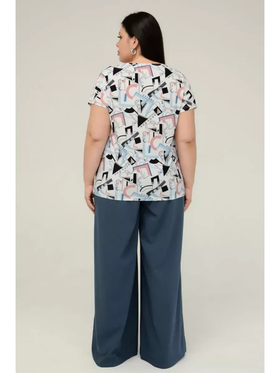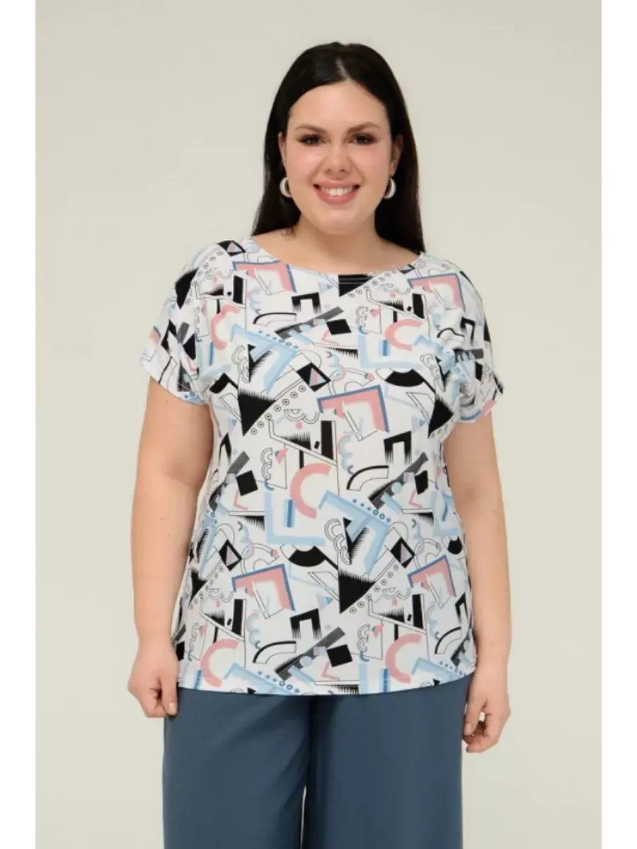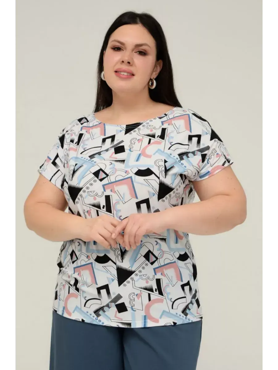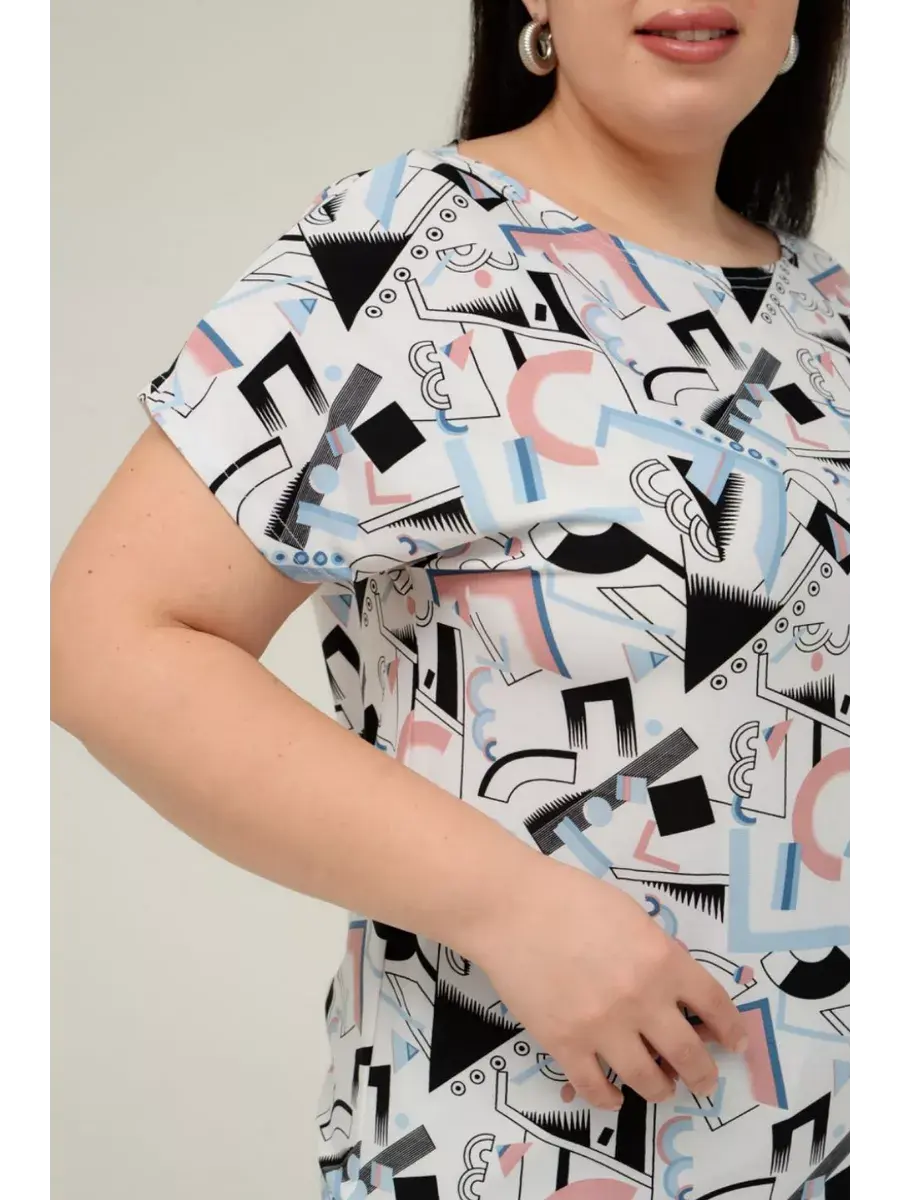 Женская повседневная летняя блузка больших размеров от бренда OLSI выполнена из полотна по типу масло. Блузка женская с коротким рукавом с приспущенной линией проймы, прямого кроя. Футболка женская удлиненная как женская туника на лето выполнена из трикотажа масло. Не мнется, быстро сохнет. Блузка сочетается с брюками артикул 230216075.
