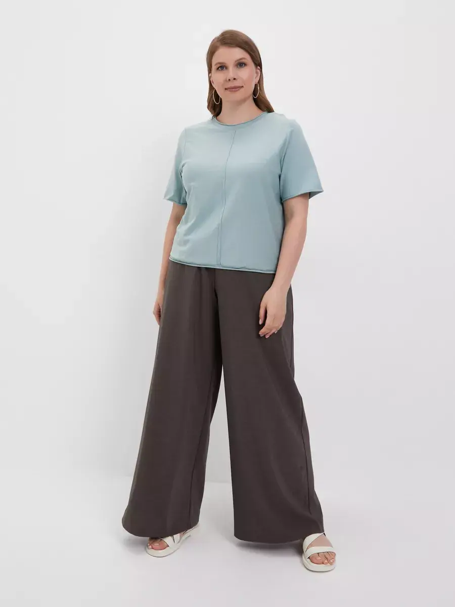 Базовая футболка больших размеров от бренда OLSI - сегодня must have для каждой модной девушки. Фасон оверсайз в тренде уже много сезонов и не собирается сдавать свои позиции. С ней вы можете создавать повседневные летние образы. Наша майка с коротким рукавом рассчитана на полных пышек и худых девушек, поэтому мы предлагаем большой размерный ряд. Свободная модель сшита из качественного хлопка с лайкрой, приятна к телу и не требует специального ухода в ней тело дышит даже в жаркую погоду летом. Благодаря легкому хб материалу в ней комфортно заниматься спортом и активным отдыхом в отпуске. Женская однотонная футболка свободного кроя и укороченная. Рукава широкие, длиной чуть выше локтя. Особенность данной футболки - открытые срезы ткани по горловине, низу и низу рукавов, а также в декоративном шве посередине переда. Футболка одинаково стильно смотрится на разных типах фигуры. Красивые приглушенные цвета и минималистичный дизайн сделают эту базовую вещь незаменимой в вашем гардеробе. Одежда свободного кроя - идеальное решение на каждый день. Такой крой даёт ощущение комфорта, свободы и раскованности. Футболка будет эффектно смотреться как с юбками различных фасонов, так и в классическом сочетании с джинсами: навыпуск, заправленной полностью или частично; как нижний слой, сочетая с другой одеждой, например, под пиджак или джинсовку весной и осенью. Длина для размера 52 составляет 55,5 см. В ней легко чувствовать себя уверенно и свободно, экспериментировать с образами и совершенствовать свой стиль. Размеры 46-70. В нашей коллекции мы собрали самые актуальные однотонные цвета и яркие принты. Наш бренд — это российская фабрика, специализирующаяся на пошиве женской одежды больших размеров. Добавляйте наш магазин в избранное и следите за новинками, акциями и распродажами.