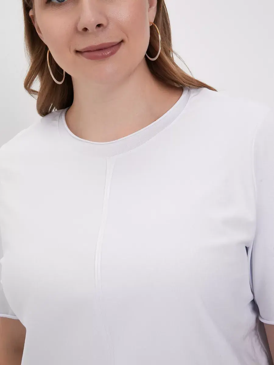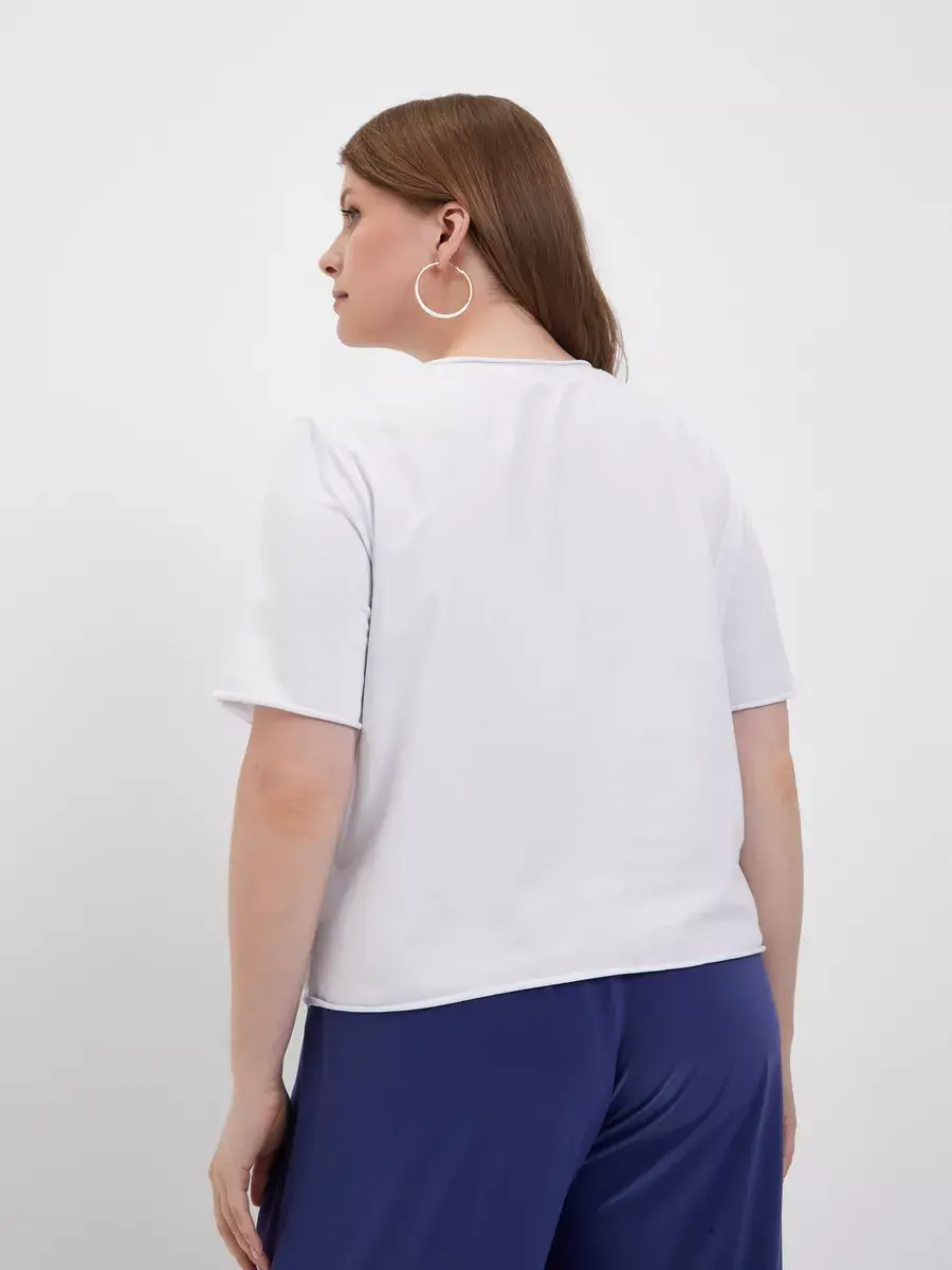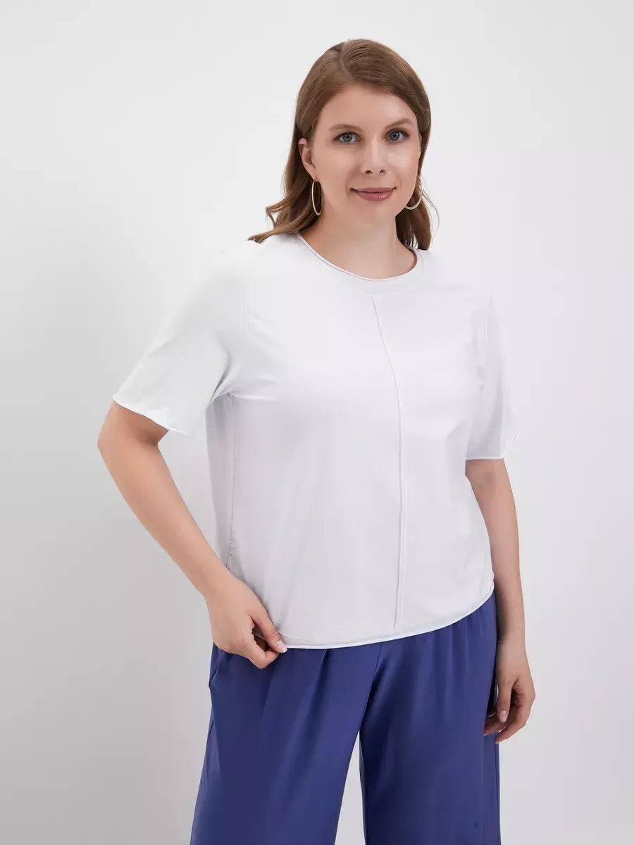 Базовая футболка больших размеров от бренда OLSI - сегодня must have для каждой модной девушки. Фасон оверсайз в тренде уже много сезонов и не собирается сдавать свои позиции. С ней вы можете создавать повседневные летние образы. Наша майка с коротким рукавом рассчитана на полных пышек и худых девушек, поэтому мы предлагаем большой размерный ряд. Свободная модель сшита из качественного хлопка с лайкрой, приятна к телу и не требует специального ухода в ней тело дышит даже в жаркую погоду летом. Благодаря легкому хб материалу в ней комфортно заниматься спортом и активным отдыхом в отпуске. Женская однотонная футболка свободного кроя и укороченная. Рукава широкие, длиной чуть выше локтя. Особенность данной футболки - открытые срезы ткани по горловине, низу и низу рукавов, а также в декоративном шве посередине переда. Футболка одинаково стильно смотрится на разных типах фигуры. Красивые приглушенные цвета и минималистичный дизайн сделают эту базовую вещь незаменимой в вашем гардеробе. Одежда свободного кроя - идеальное решение на каждый день. Такой крой даёт ощущение комфорта, свободы и раскованности. Футболка будет эффектно смотреться как с юбками различных фасонов, так и в классическом сочетании с джинсами: навыпуск, заправленной полностью или частично; как нижний слой, сочетая с другой одеждой, например, под пиджак или джинсовку весной и осенью. Длина для размера 52 составляет 55,5 см. В ней легко чувствовать себя уверенно и свободно, экспериментировать с образами и совершенствовать свой стиль. Размеры 46-70. В нашей коллекции мы собрали самые актуальные однотонные цвета и яркие принты. Наш бренд — это российская фабрика, специализирующаяся на пошиве женской одежды больших размеров. Добавляйте наш магазин в избранное и следите за новинками, акциями и распродажами.