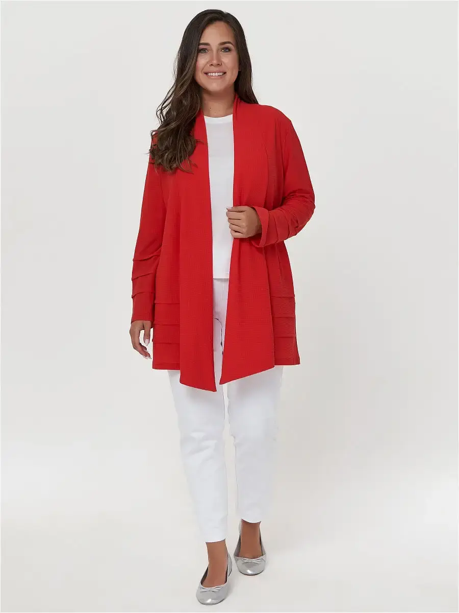 Женский повседневный кардиган больших размеров прямого силуэта из трикотажного полотна, без застежки.