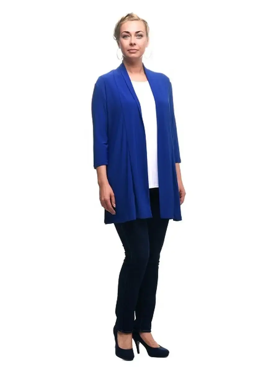 Стильный кардиган из струящегося однотонного полотна по типу масло. Модель A-силуэта. Без застежки, длинный рукав.