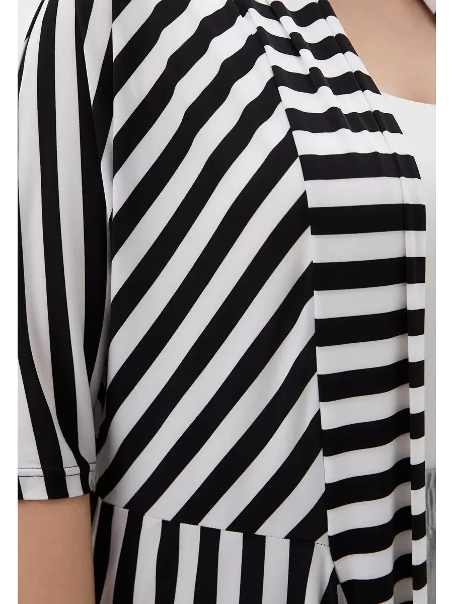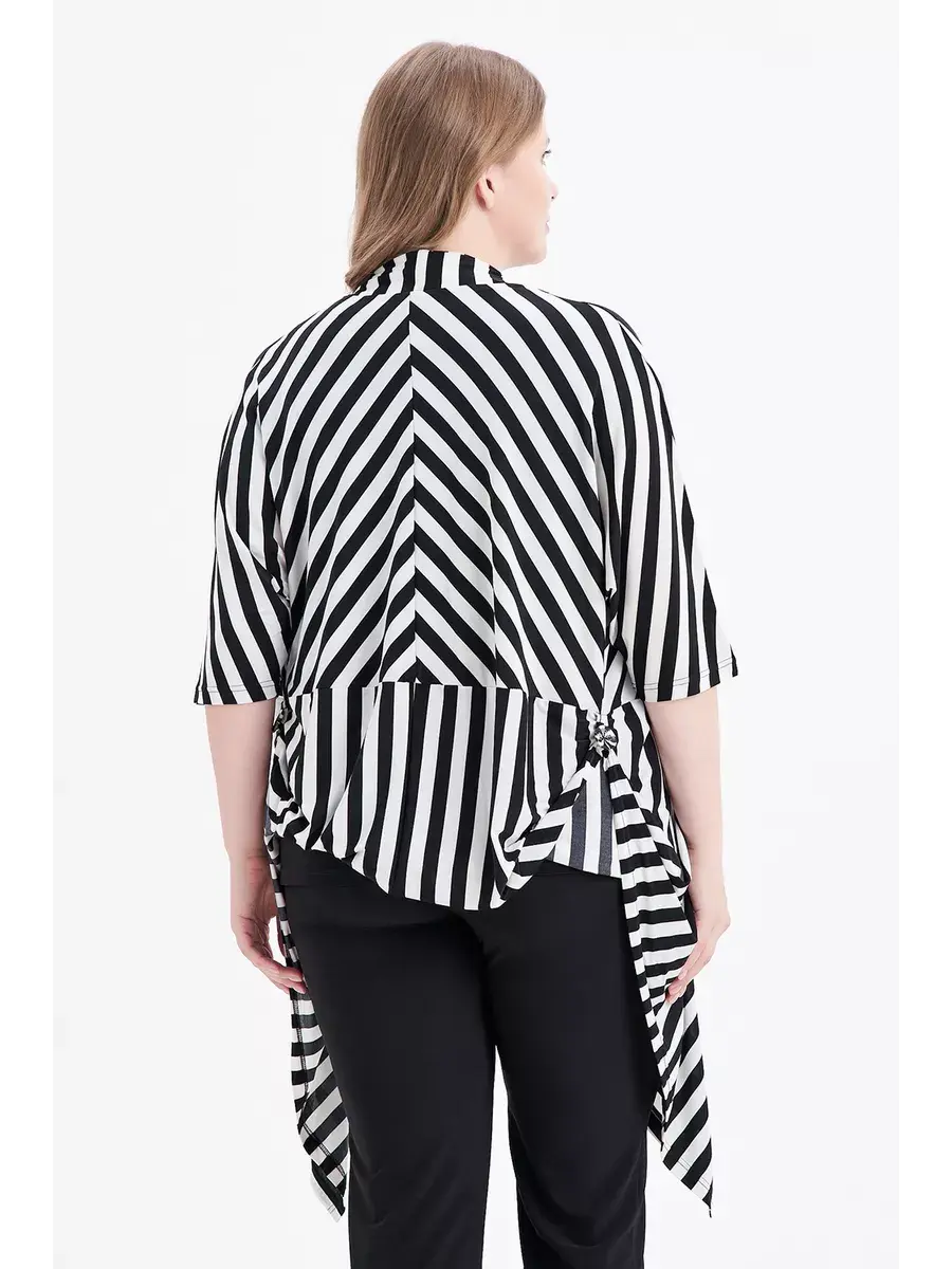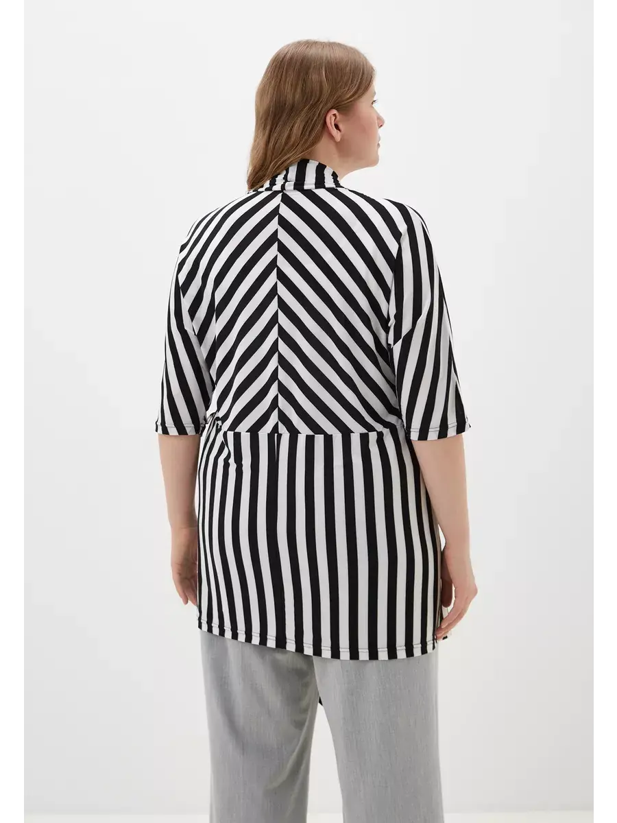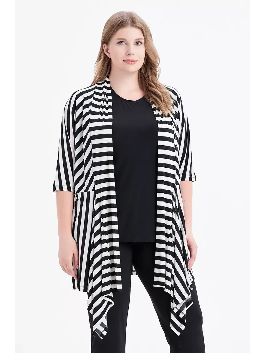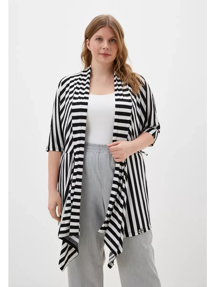 Женский повседневный кардиган больших размеров от бренда OLSI. Кардиган в полоску выполнен из ткани трикотаж масло. Ткань не мнется, быстро сохнет. Накидка женская можно носить с джинсами и классическими брюками. Накинуть как пляжный вариант на купальник.