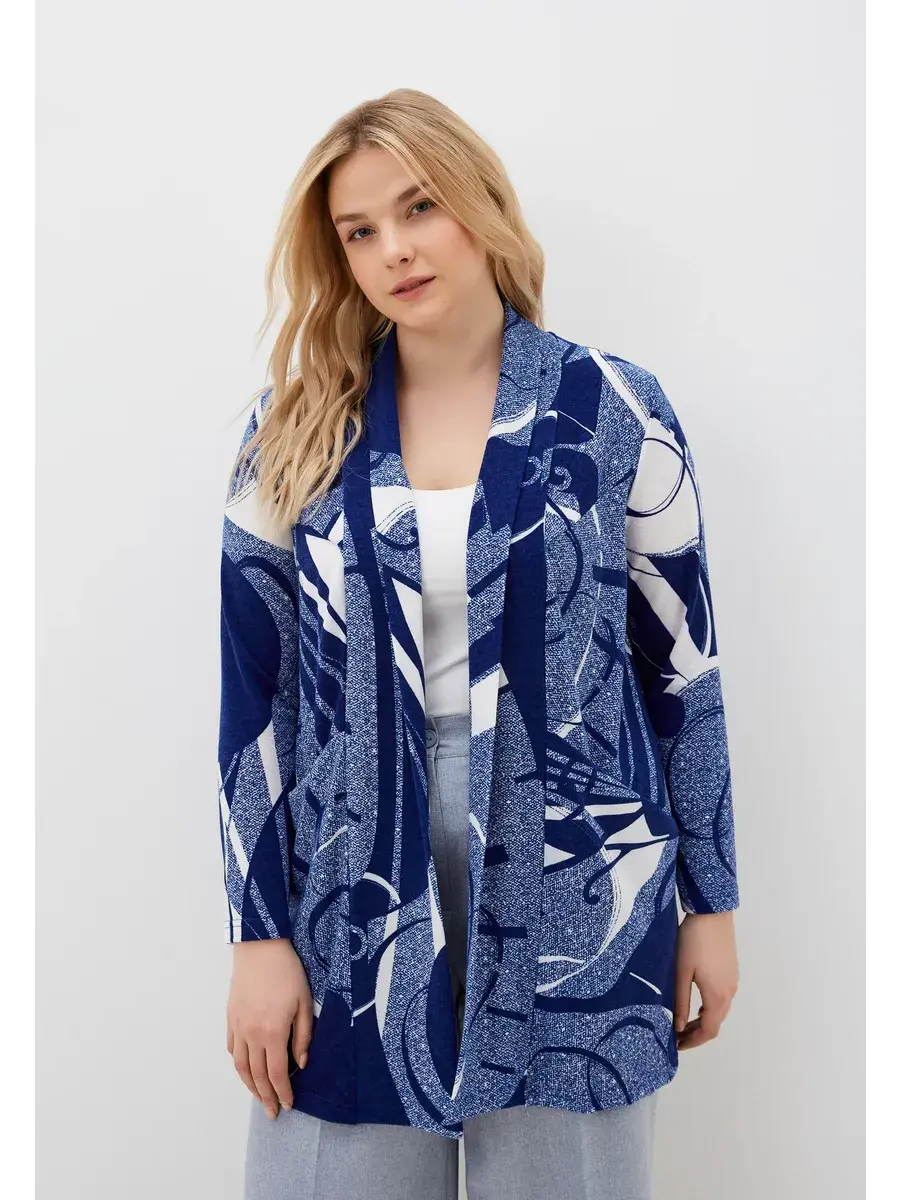 Яркий мягкий кардиган бренда OLSI подойдет под однотонное платье или брюки. Повседневный кардиган женский больших размеров Олси ( olsi ) можно носить и летом в прохладную погоду и зимой под верхнюю одежду. Кардиган черно-белый, с длинными рукавами, имеет функциональные карманы. Длина по спинке от 80см до 84,5 см, длина рукава 62 см.