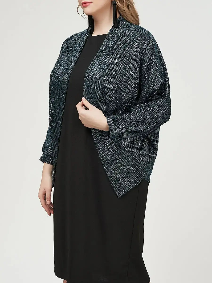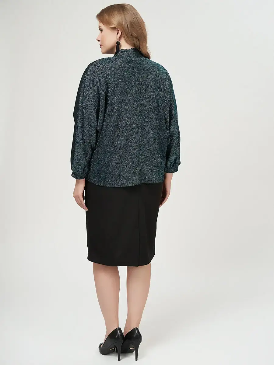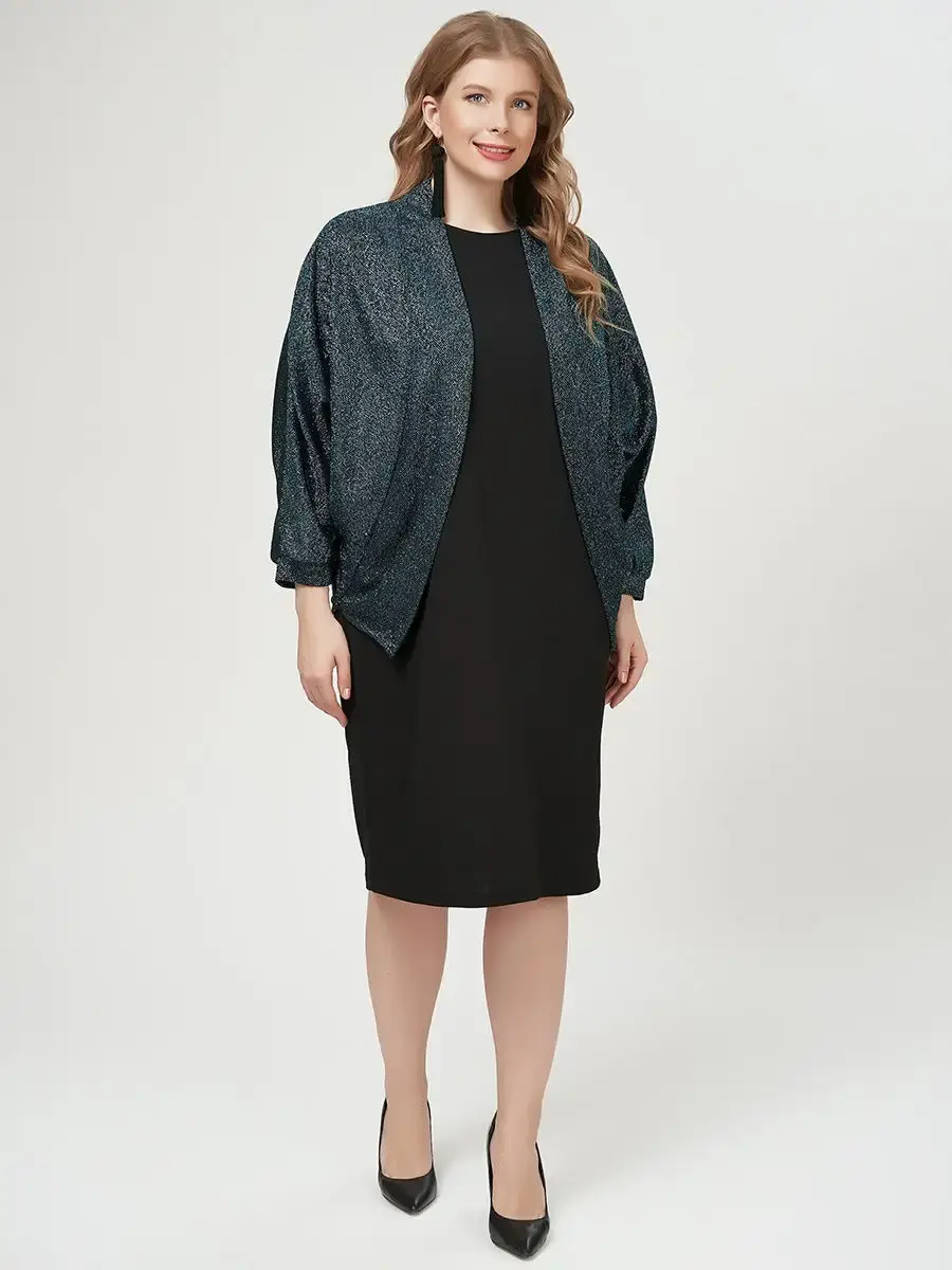 Элегантный кардиган из тонкого блестящего трикотажа, с широкими длинными рукавами-доломан на манжетах; Х-образной линией застежки.