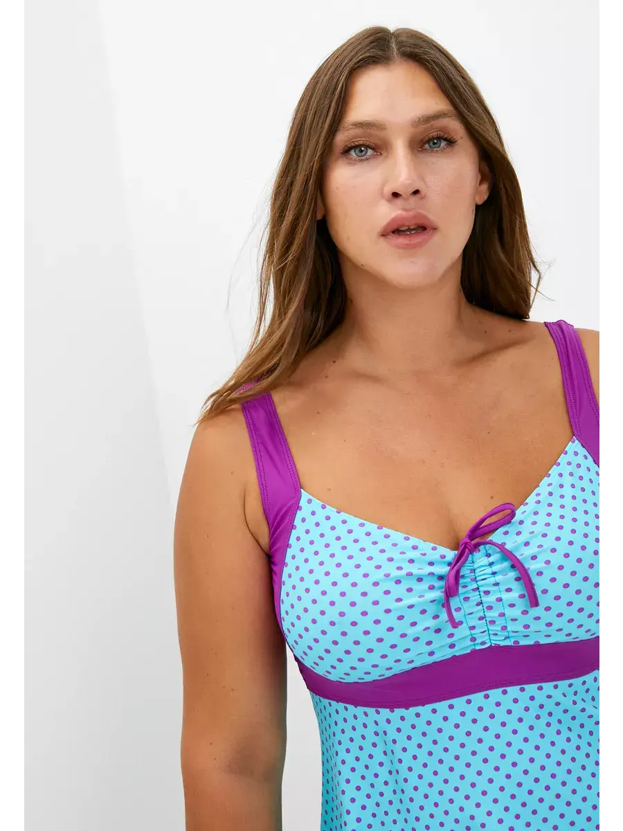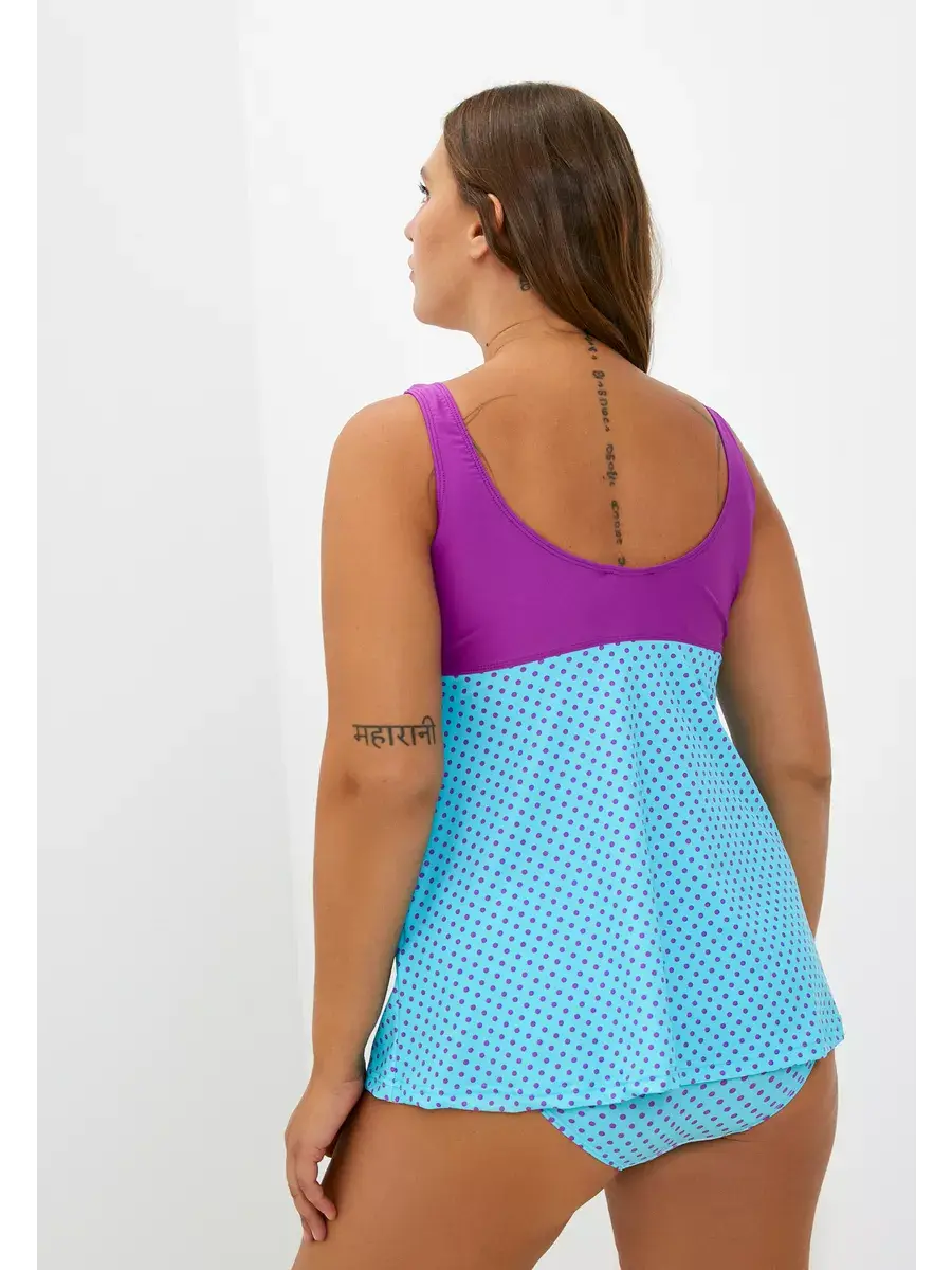 Раздельный купальник танкини большого размера подойдет для полных и взрослых женщин. Танкини регулируется кулиской для поддержки и регулировки объема, на широких бретельках. Плавки закрытые, на поясе.Длина танкини по спинке:р.52-44см