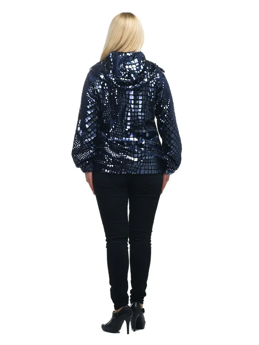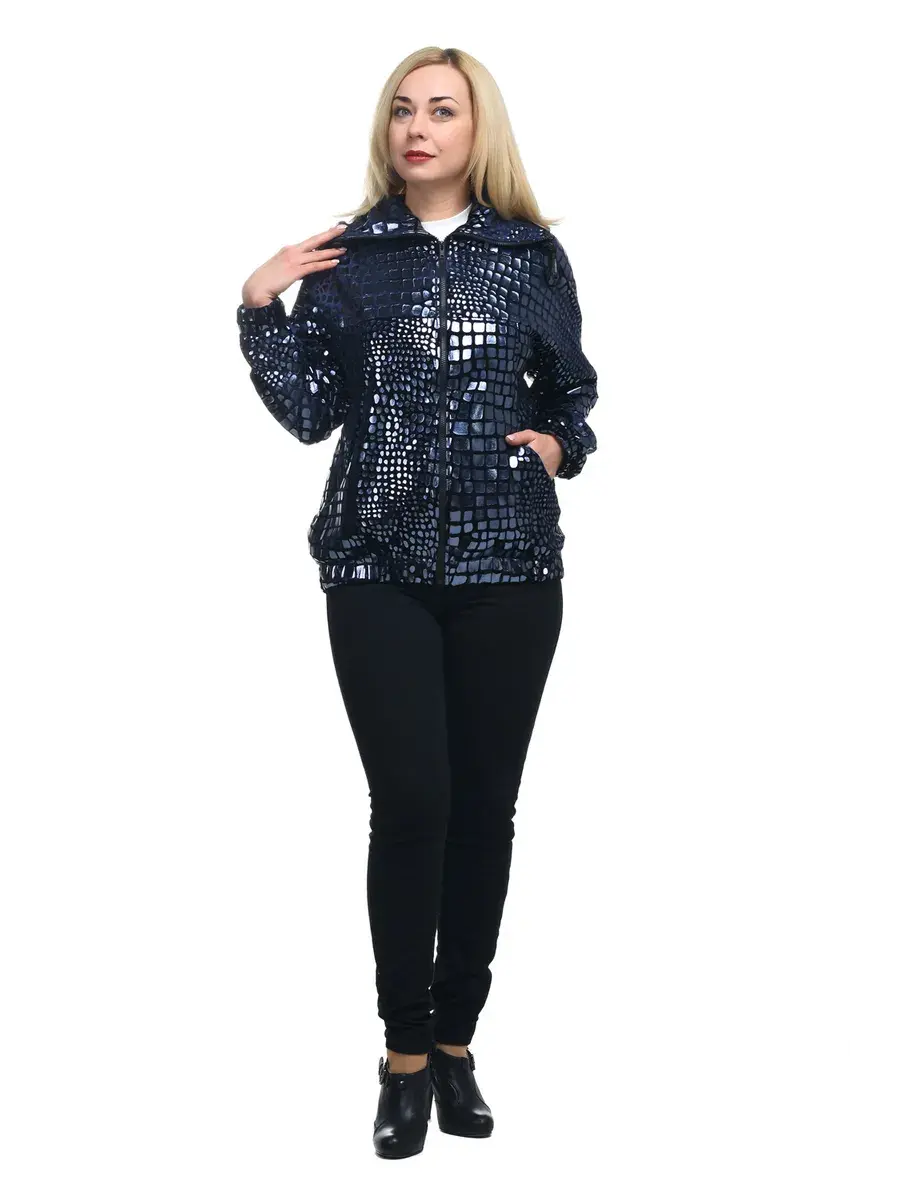 Эффектная куртка-ветровка больших размеров от бренда OLSI. Весенняя женская куртка с капюшоном. Модель на подкладке, с застежкой-молнией, застегивающейся по всей длине до основания воротника - апаш; с врезными боковыми карманами, длинными цельнокроеными рукавами со спущенной проймой. Манжеты на рукавах и низ изделия на широкой резинке, позволяющей регулировать длину куртки.