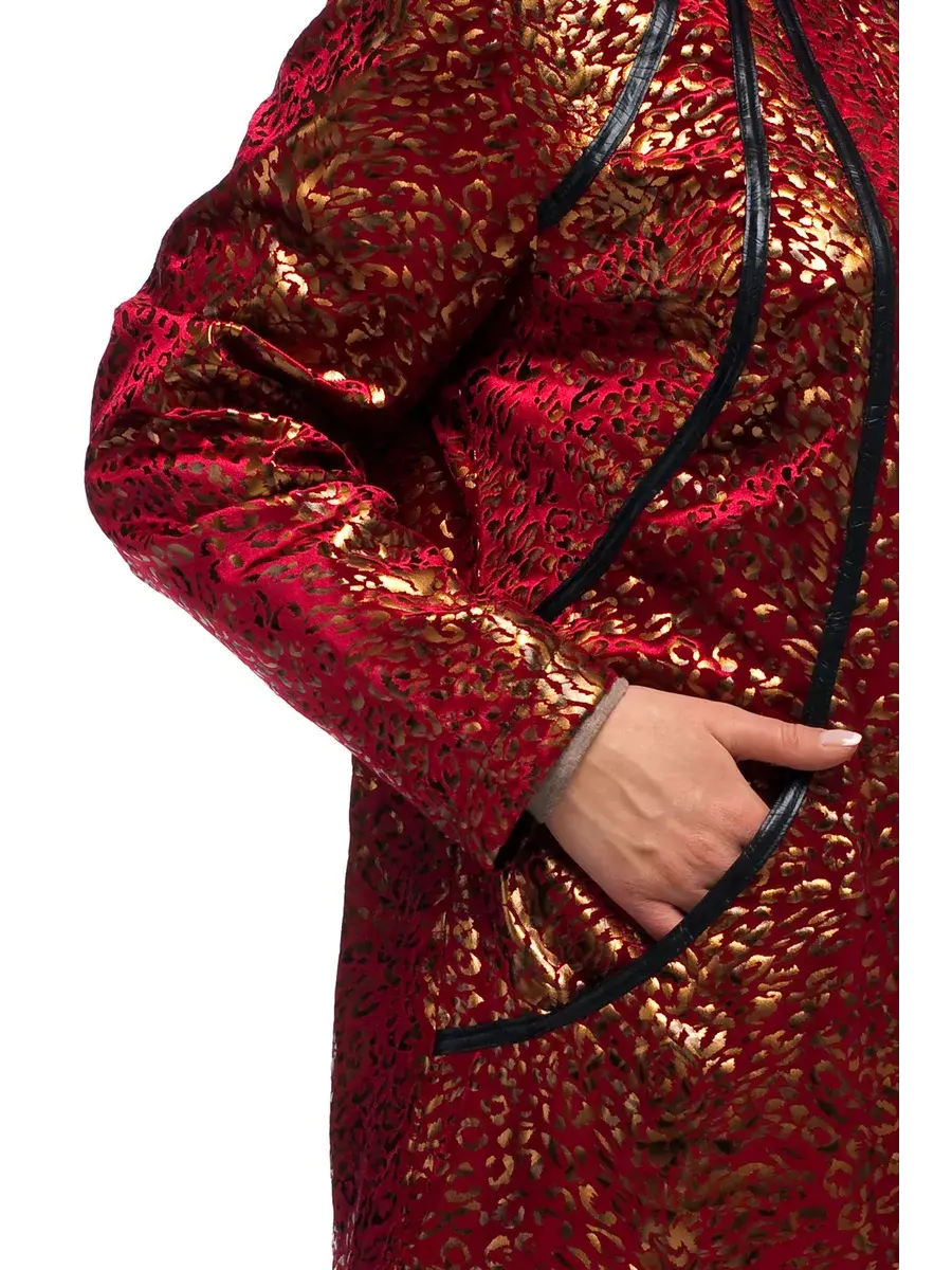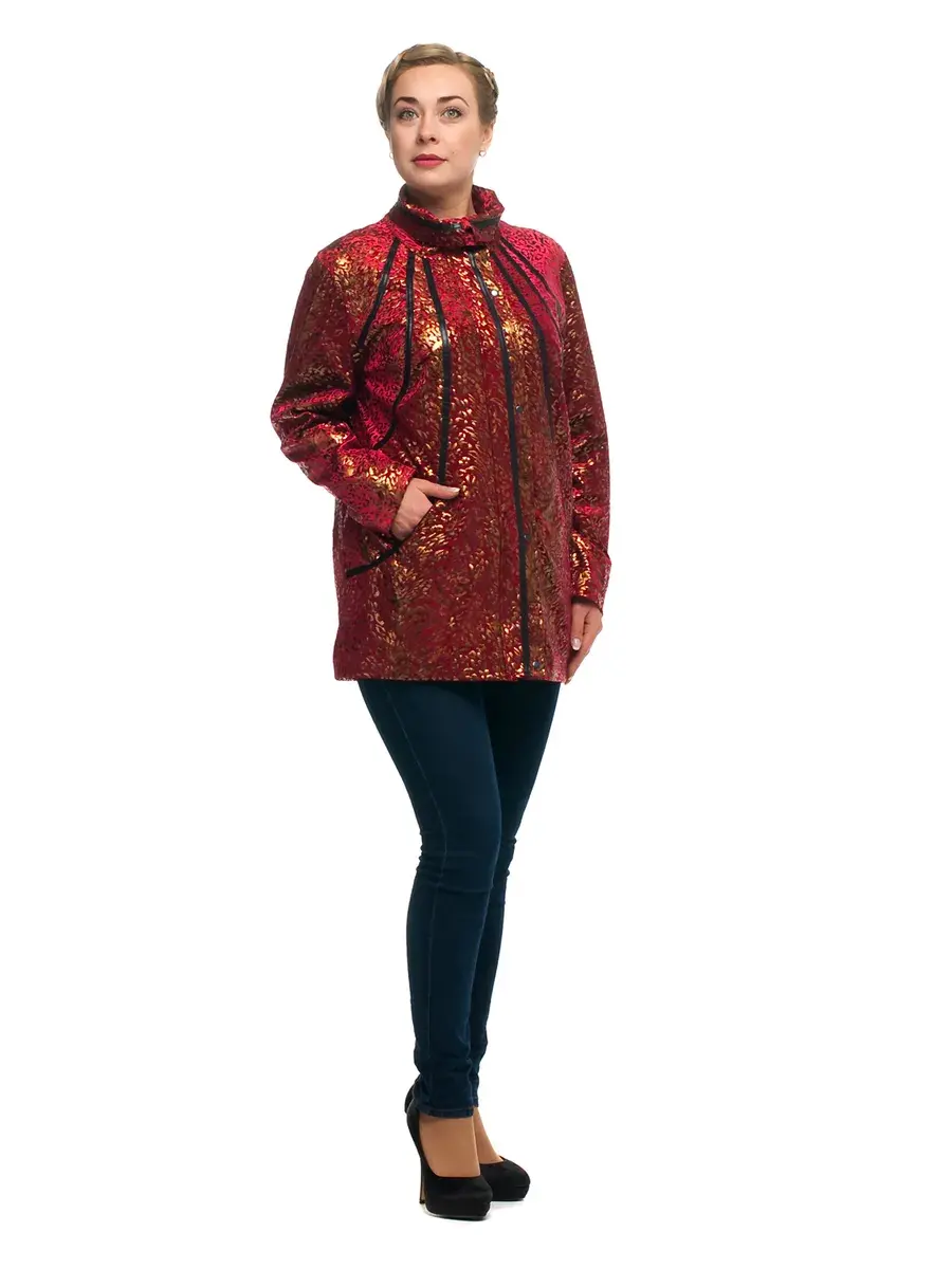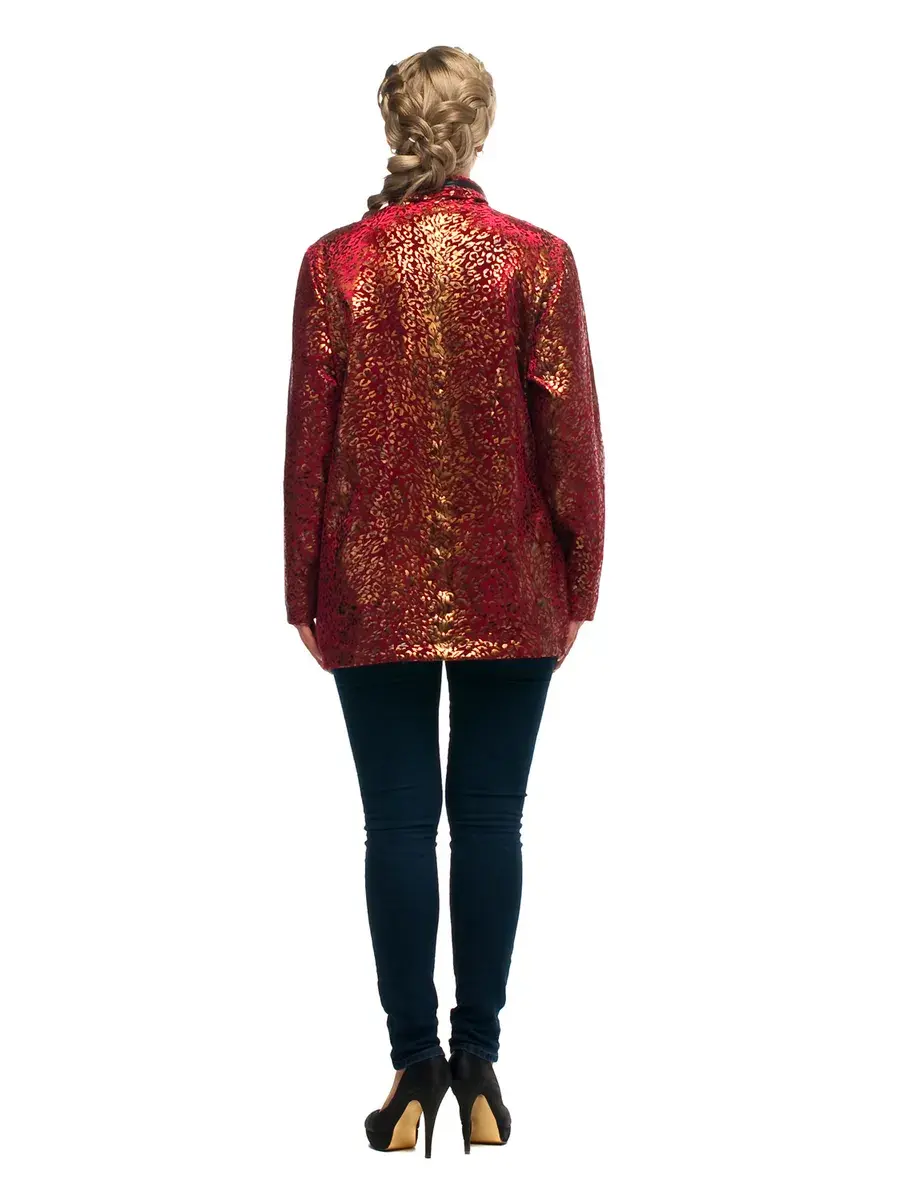 Эффектная стильная куртка из чудесной ткани со сверкающим фантазийным принтом фойлом, создана для того, чтобы создавать праздничное настроение. Модель прямого кроя, с широкими втачными рукавами с чуть спущенным плечом; застежкой на кнопках; врезными карманами, по линии отделки кантом, рисующим силуэтные линии и визуально стройнящим и уравновешивающим фигуру. Нарядная оригинальная куртка станет ярким элементом гардероба в прохладную погоду.