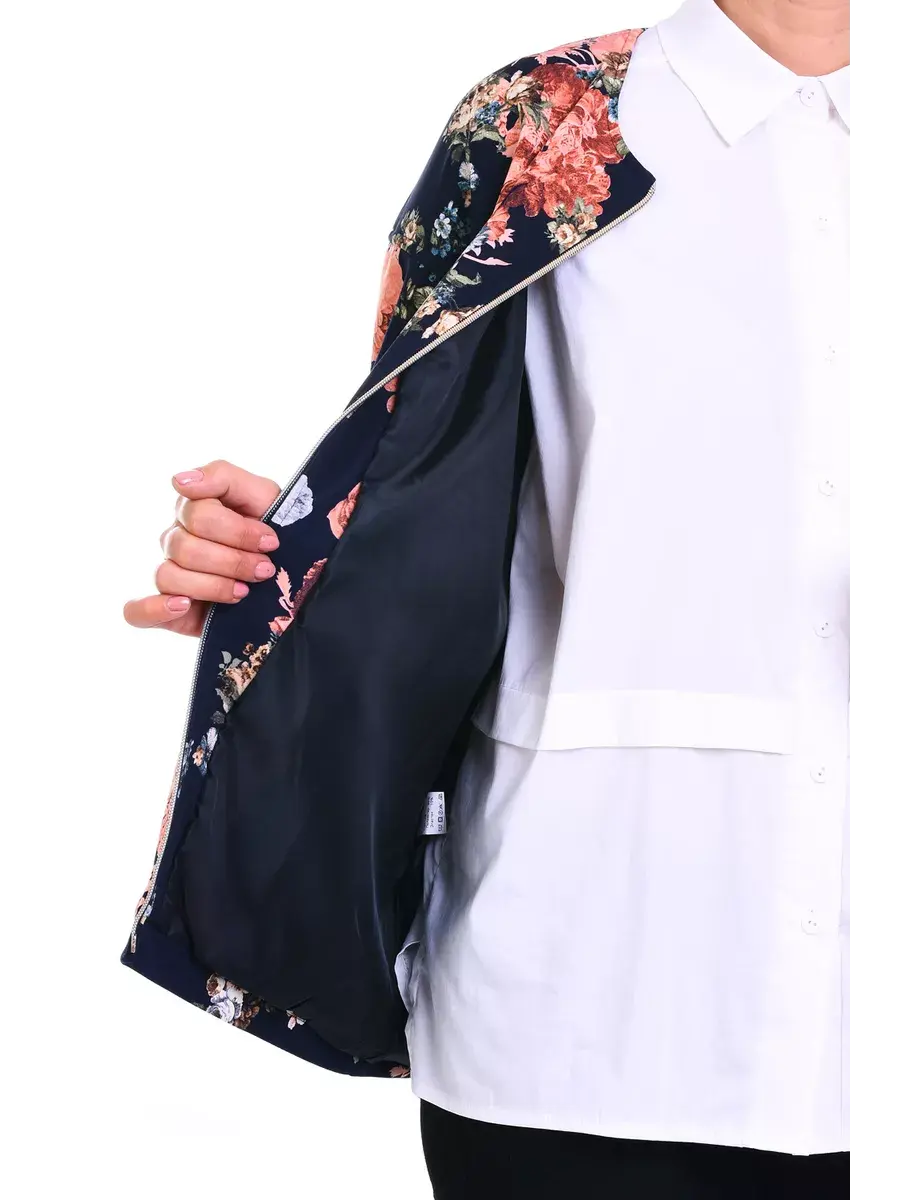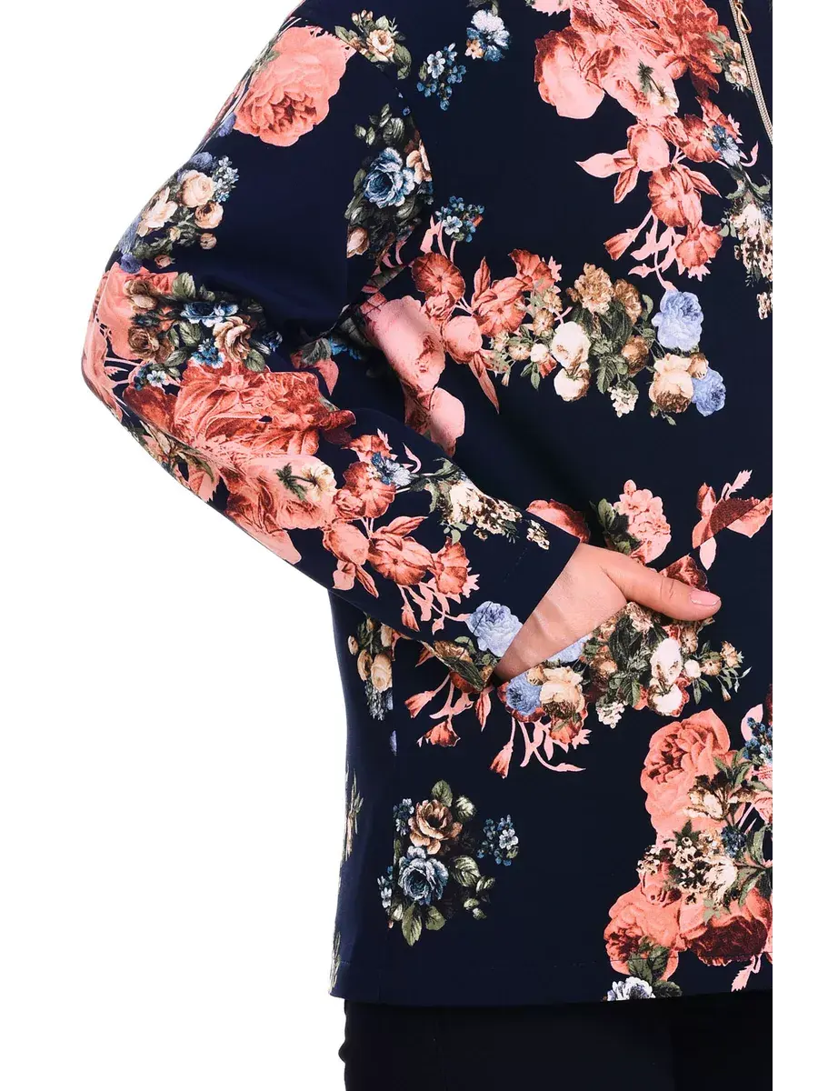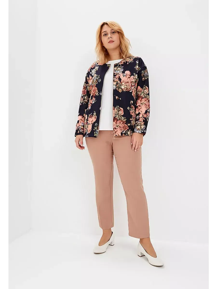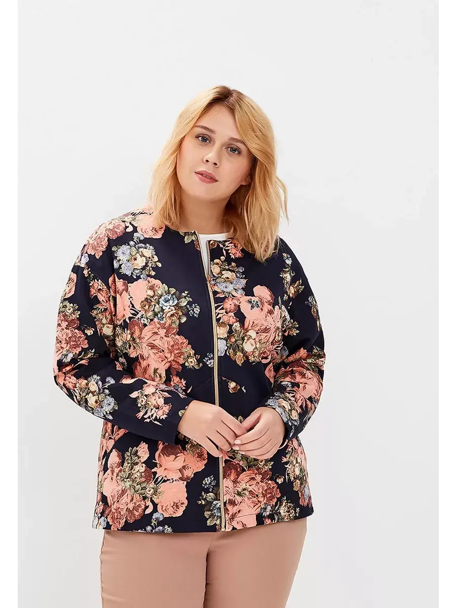 Эффектная стильная куртка от бренда OLSI из плотной ткани с крупным цветочным принтом. Модель на подкладке; прямого силуэта; с длинными втачными рукавами со спущенной линией плеча; круглым вырезом горловины; застежкой на молнию; удобными карманами в бочках полочек.