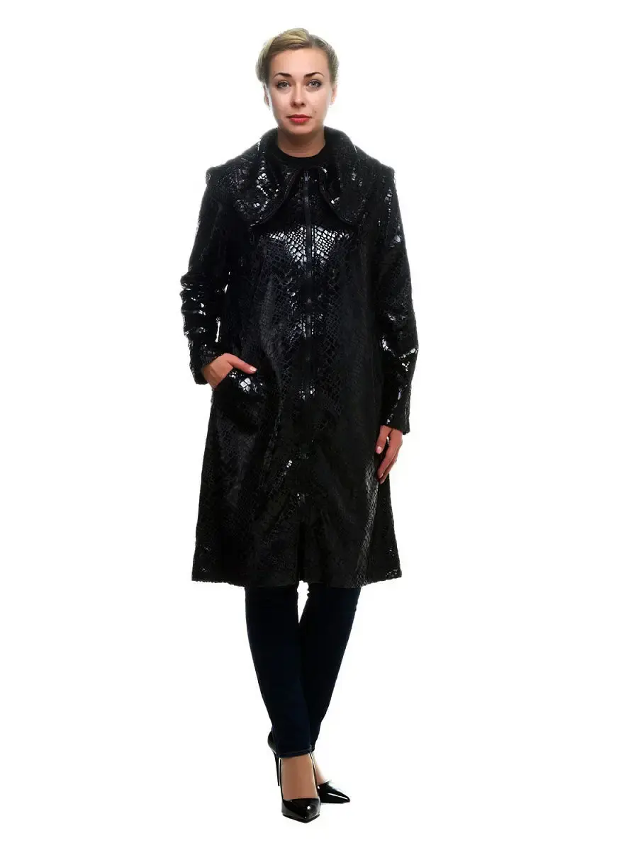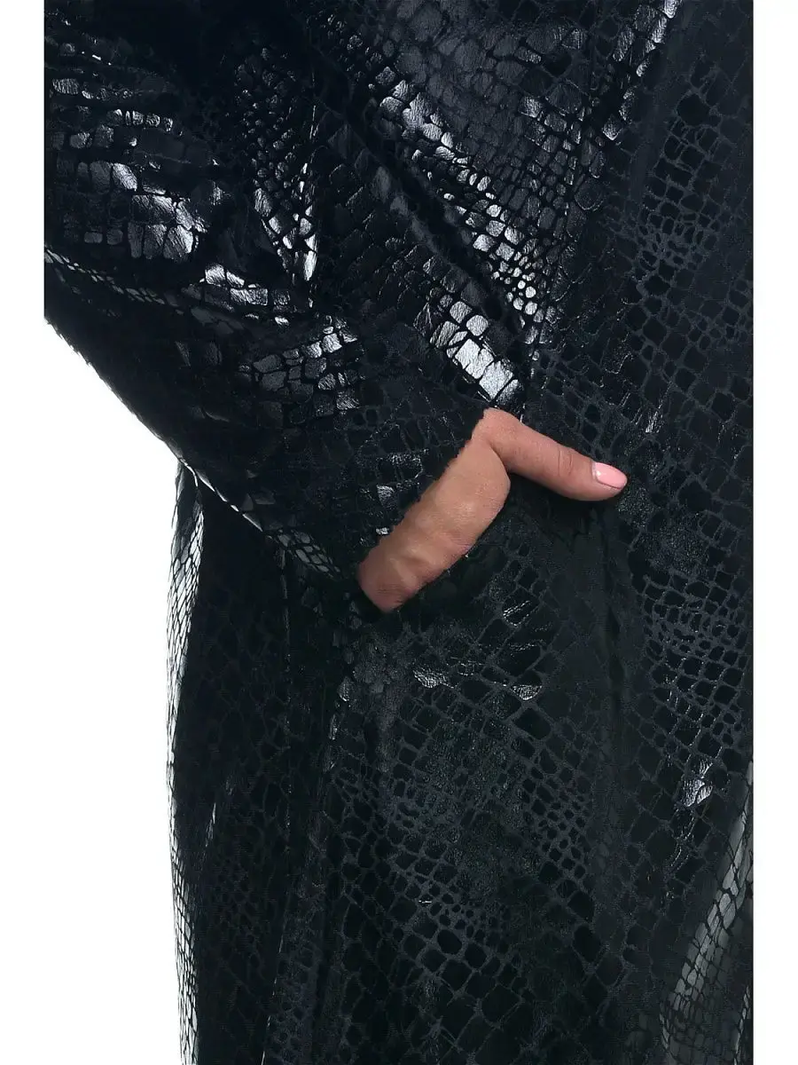 Элегантная куртка-плащ длиной до колен из прочного материала с блестящим принтом фойлом, имитирующим кожу рептилий. Модель A-силуэта; втачными рукавами; удобными карманами в бочках полочек; с застежкой молнией до уголков фантазийного воротника-стойки, который можно распахнуть на манер хулиганского воротника апаш или уложит в хомут в застегнутом виде. Изделие подтягивает силуэт, нивелирует особенности фигуры, позволяет оставаться женственной и элегантной даже в непогоду.