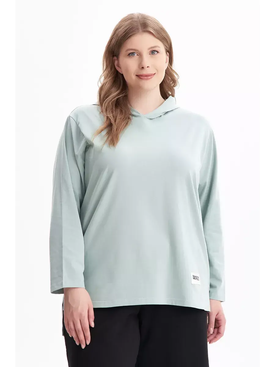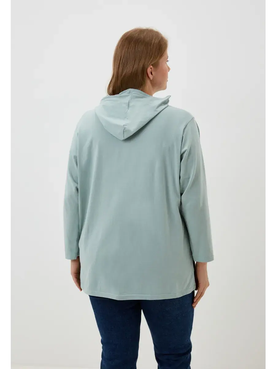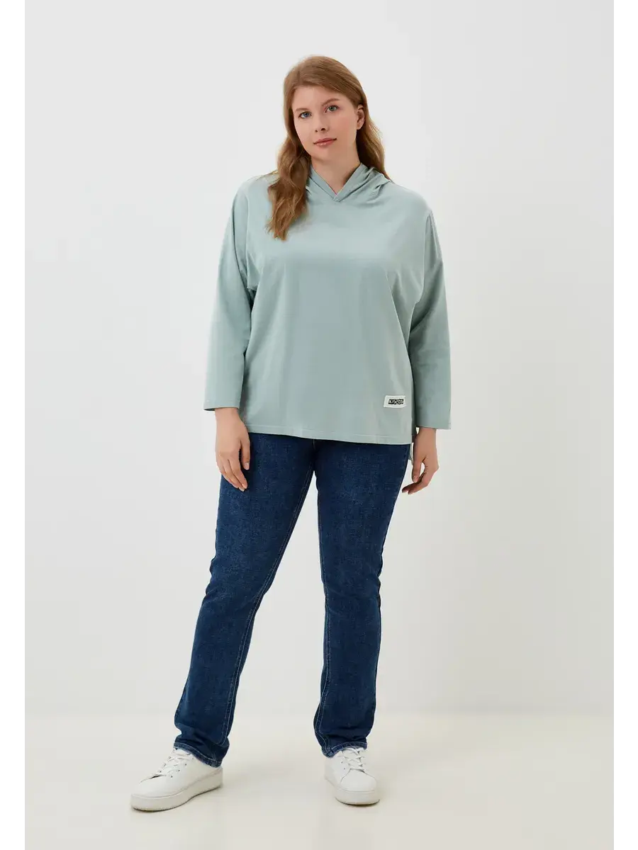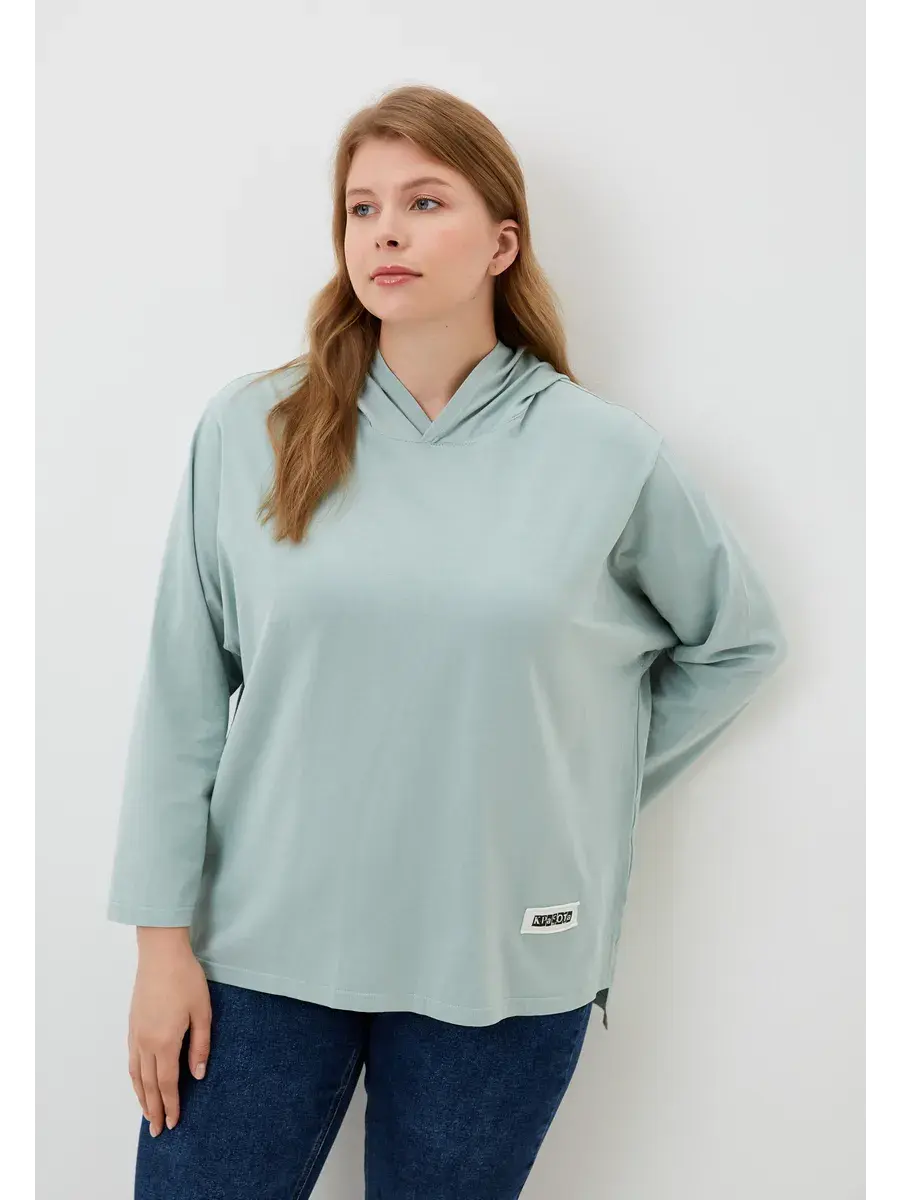 Женская худи больших размеров прямого кроя с капюшоном, выполнена из качественной кулирки с лайкрой.