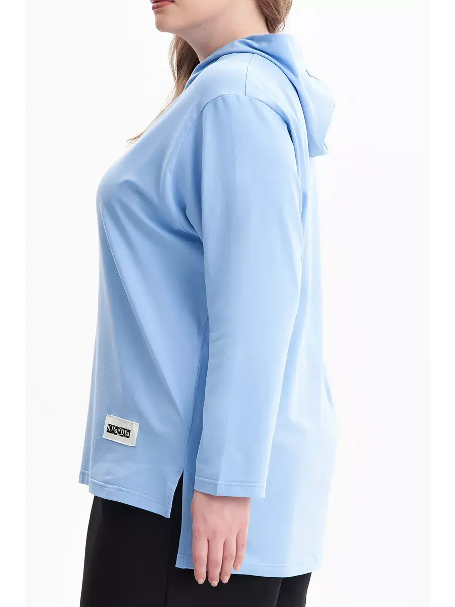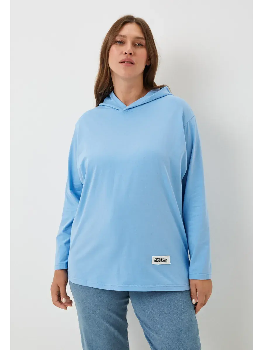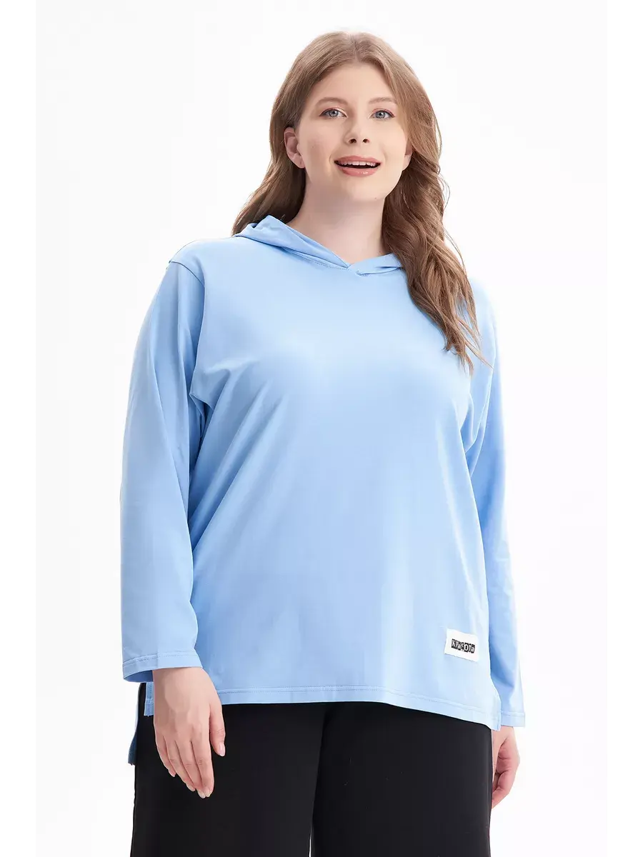 Женская худи больших размеров прямого кроя с капюшоном, выполнена из качественной кулирки с лайкрой.