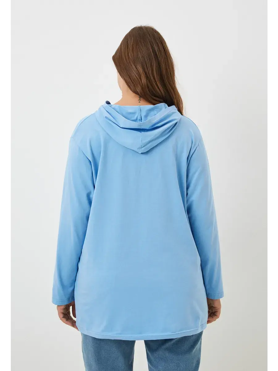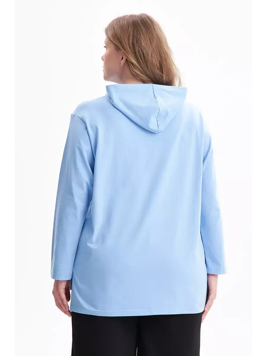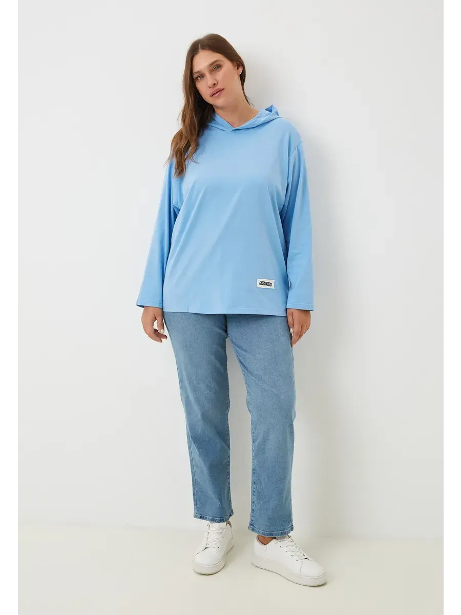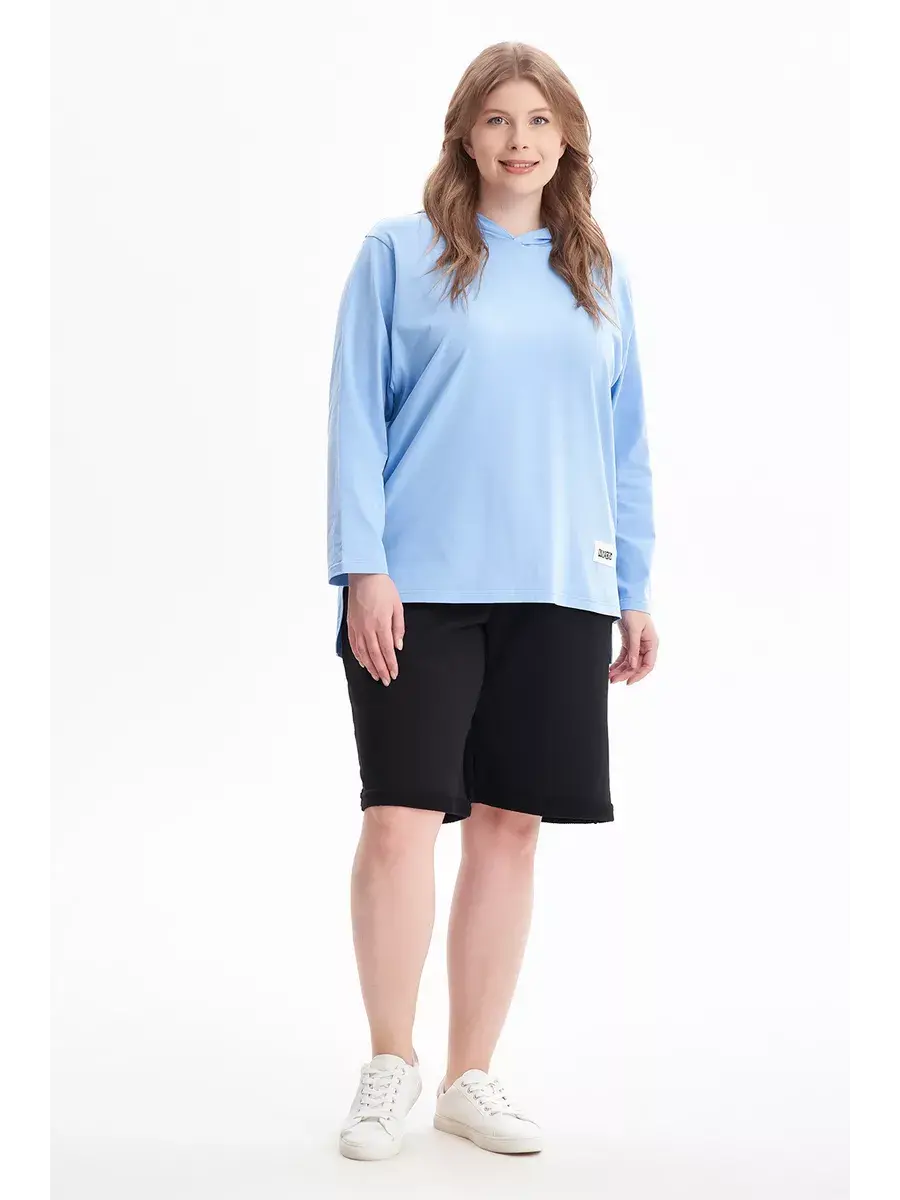 Женская худи больших размеров прямого кроя с капюшоном, выполнена из качественной кулирки с лайкрой.