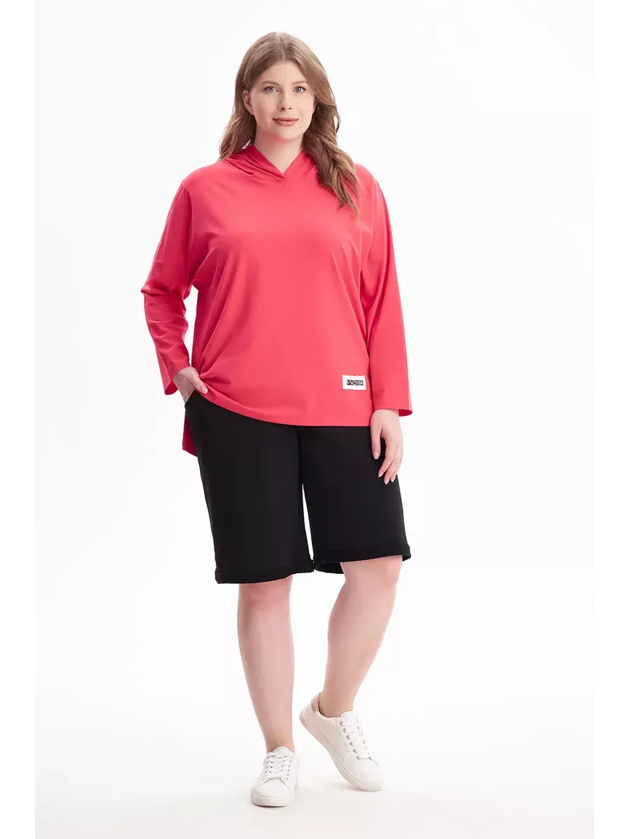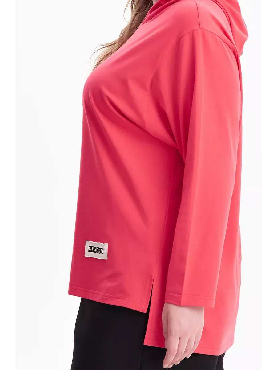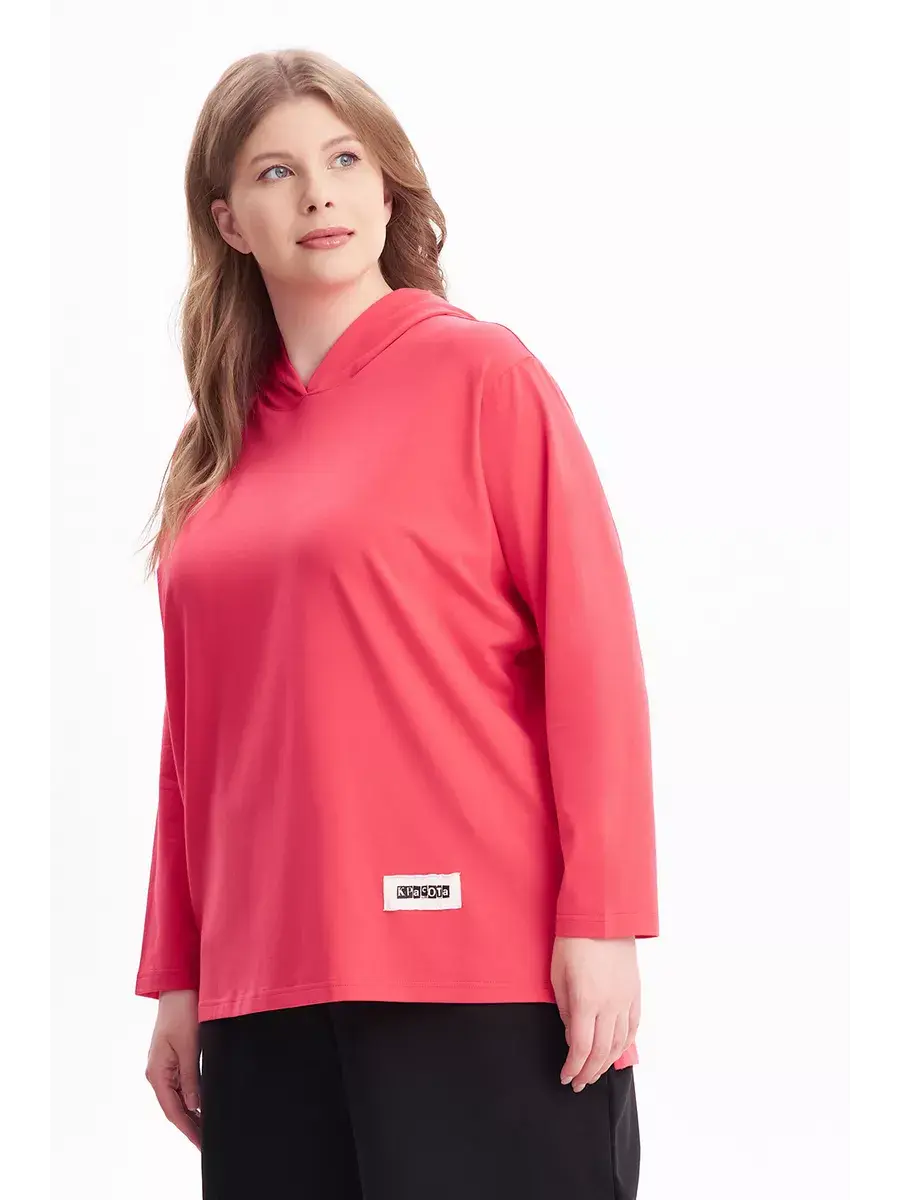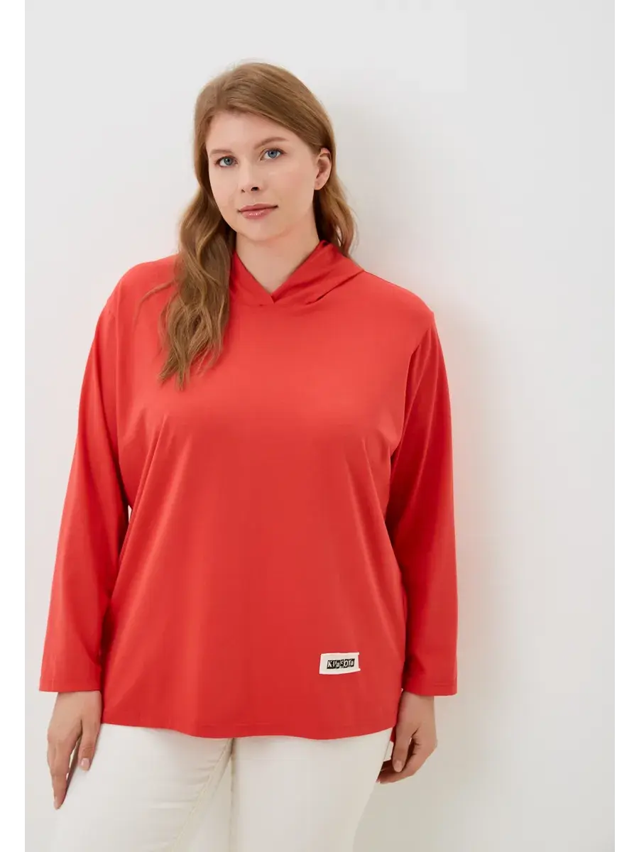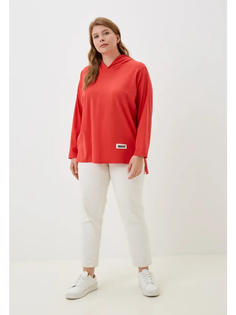 Женская худи больших размеров прямого кроя с капюшоном, выполнена из качественной кулирки с лайкрой.