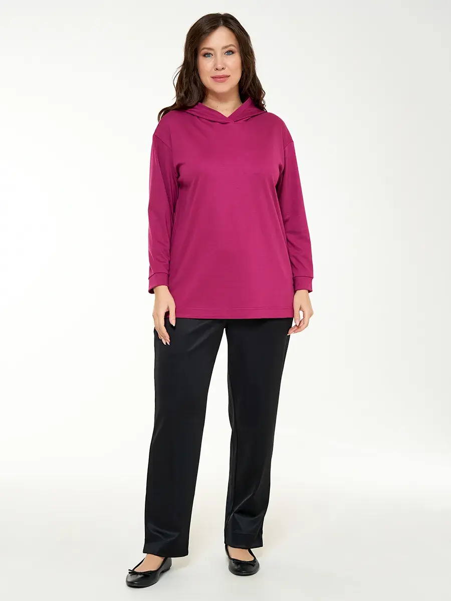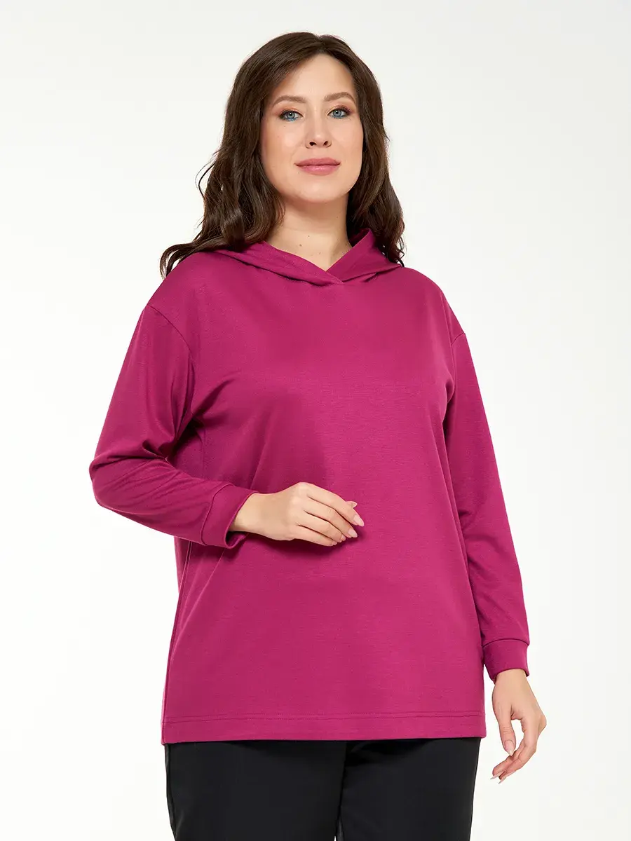 Женская худи больших размеров прямого кроя с капюшоном, выполнена из трикотажного полотна без начёса.