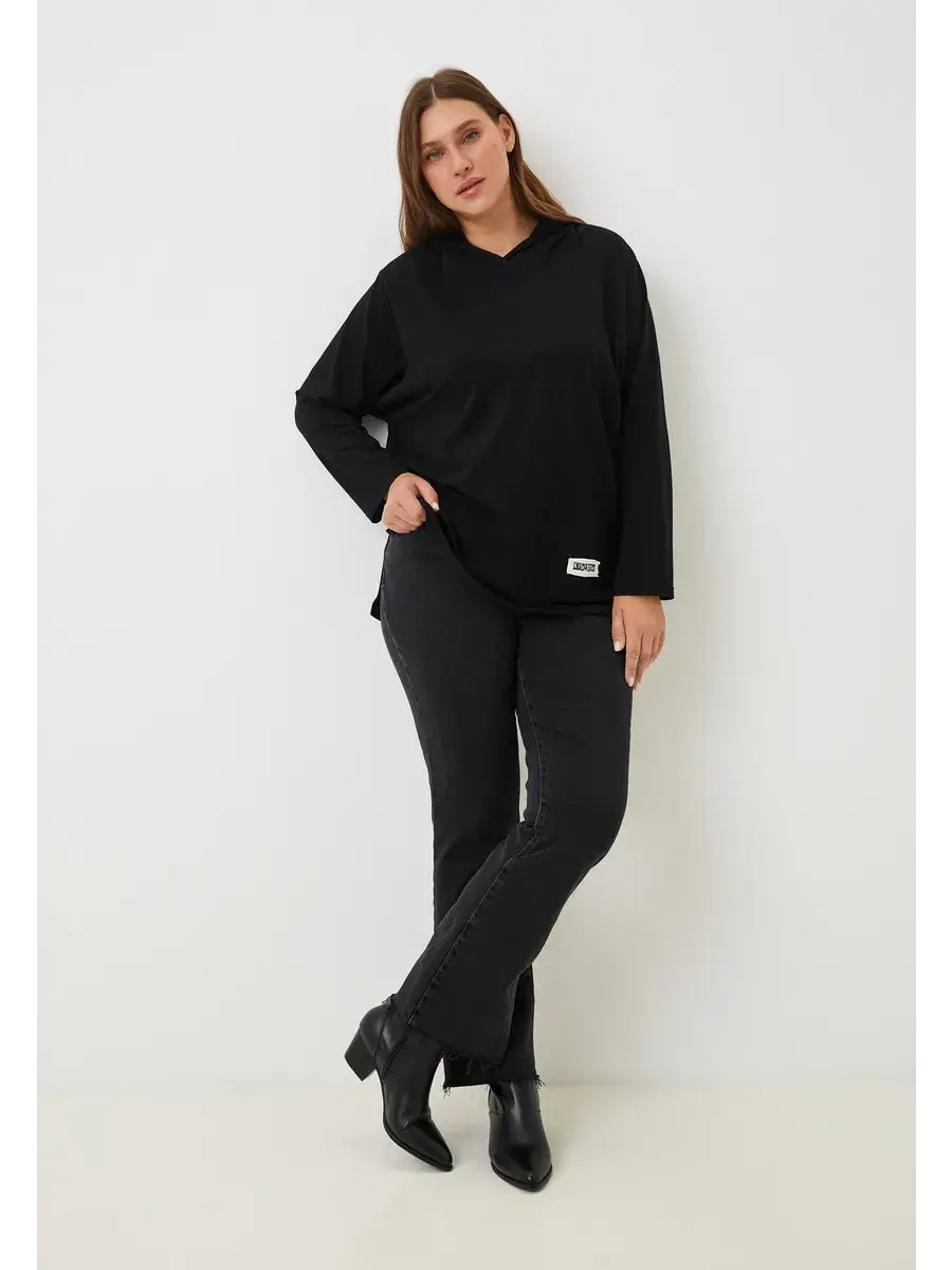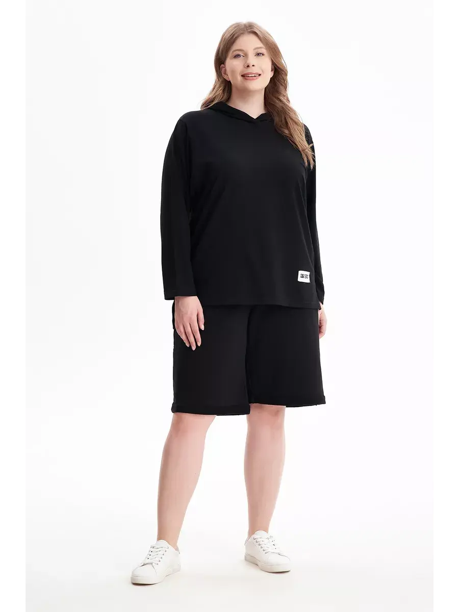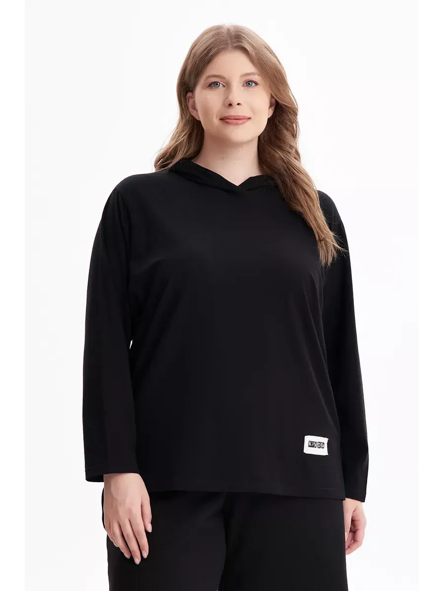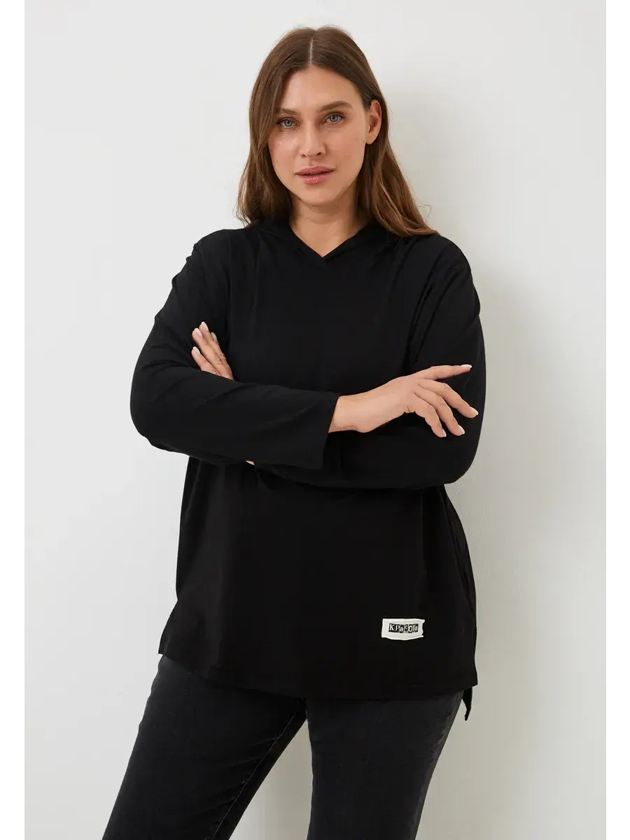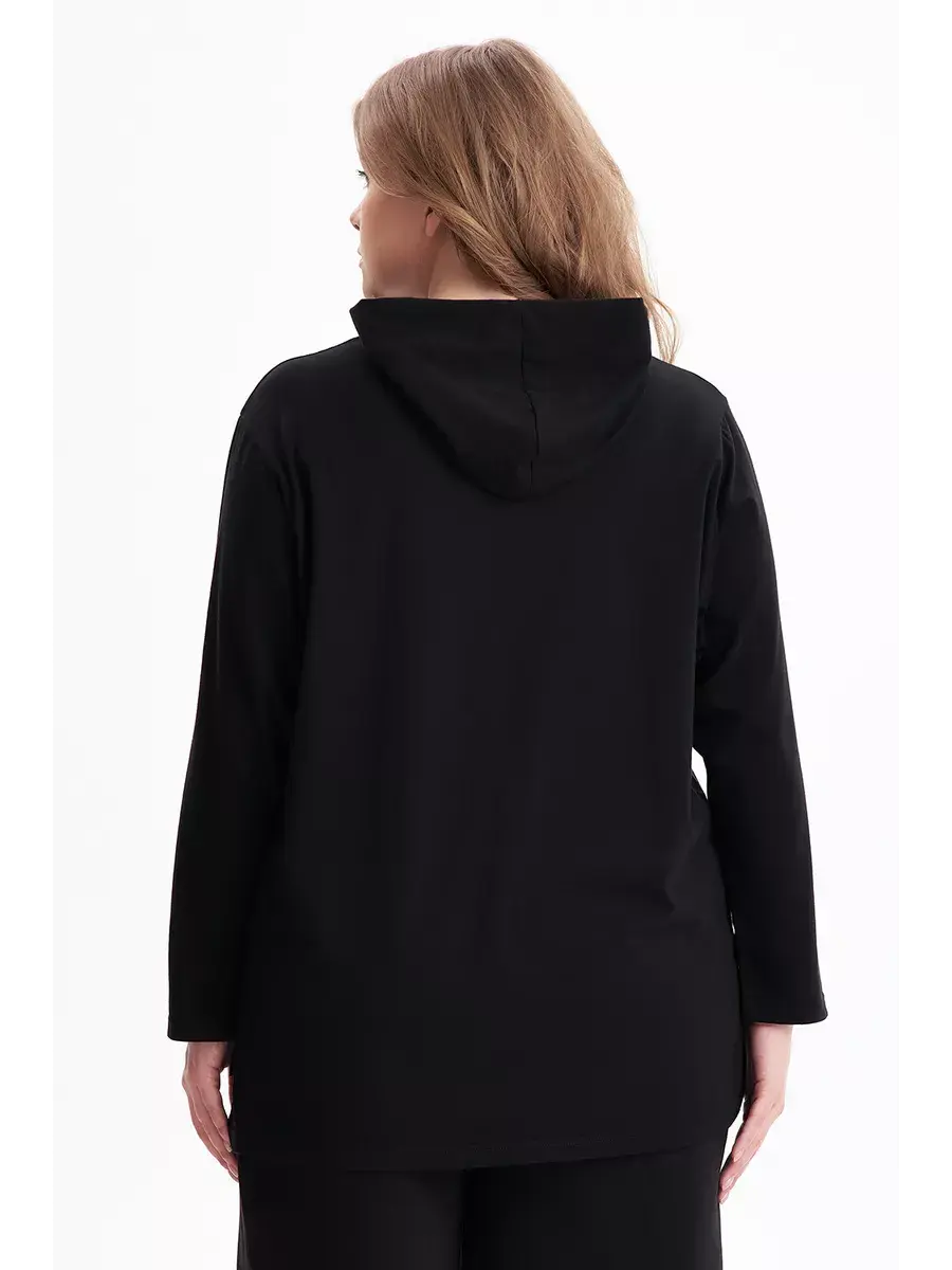 Женская худи больших размеров прямого кроя с капюшоном, выполнена из качественной кулирки с лайкрой.