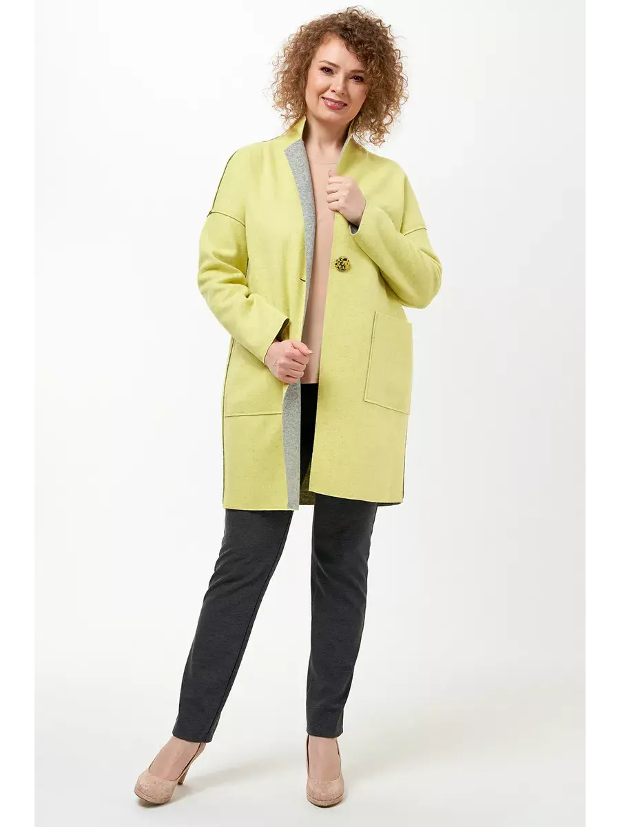 Шикарное демисезонное пальто больших размеров для женщин бренда OLSI. Качественный двусторонний шерстяной материал, и сама модель полупальто выполнена так, что его можно носить как на одну сторону, так и на другую. Весеннее пальто без подкладки длиной миди. Демисезонное однобортное пальто прямого силуэта оценят любители елегантного стиля и современной моды. Спущенная пройма, фигурный стилизованный под английский воротник и минимализм в деталях делают осеннее короткое пальто эффектным, декоративная пуговица добавляет облику шик и завершенность. Длинные рукава можно носить с отворотом или без; прямой крой позволяют носить весеннее удлиненное полупальто в застегнутом или расстегнутом виде, создают комфорт. Изящный жакет для полненьких девушек с ростом 164-174см, для беременных, ценителей оверсайз и обладательниц больших размеров сайз плюс в широком размерном диапазоне от 48 до 70. Укороченное женское кашемировое пальто для ранней осени и поздней весны прекрасно смотрится на невысоких, и среднего роста. Дизайнерское пальто из натурального материала. Универсальное пальто сочетается со многими предметами базового гардероба, а декоративные аксессуары подчеркнут индивидуальность. Трендовое пальто свободного кроя подходит и взрослым женщинам, и девушкам – подросткам, и для будущих мам. Незаменимая вещь женского гардероба в 2024 году!